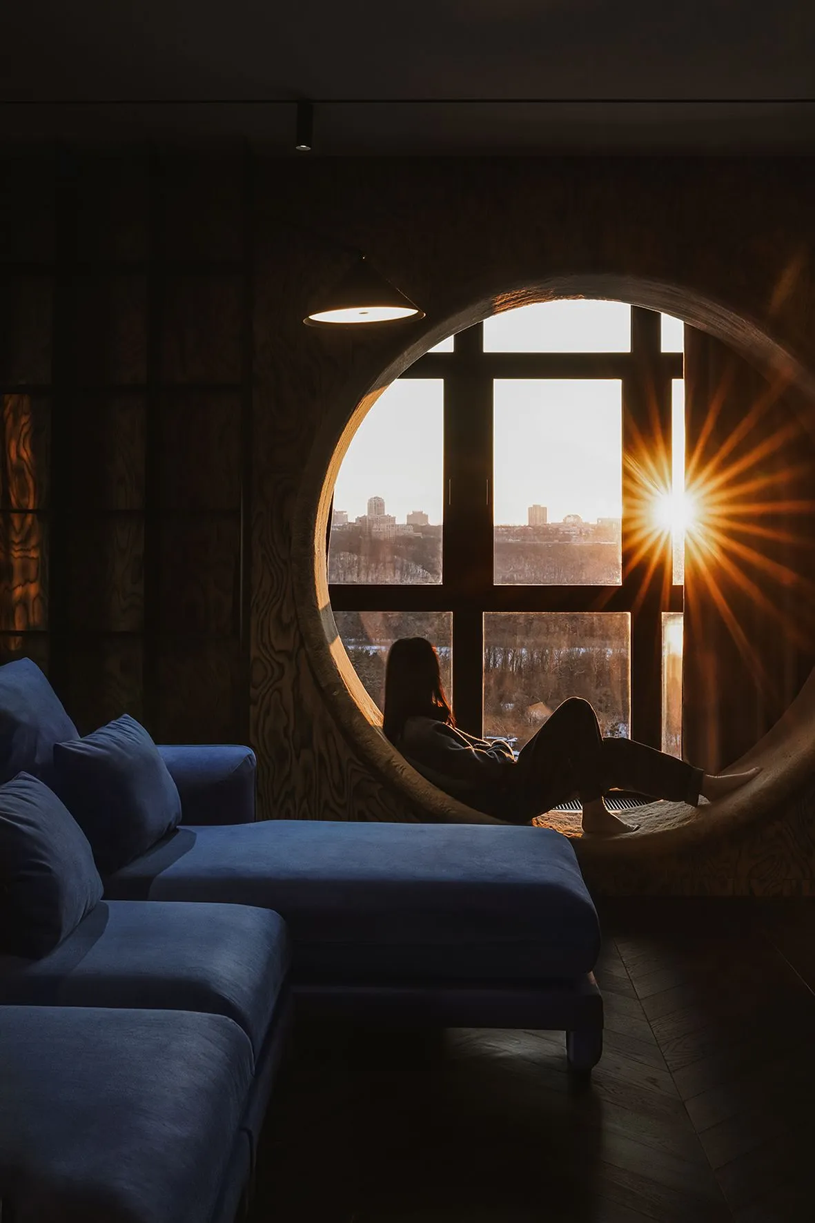 Apartment with Lizard is a special one-room apartment of 104 m² with panoramic windows and a view of the right bank of the Dnieper in Kiev.