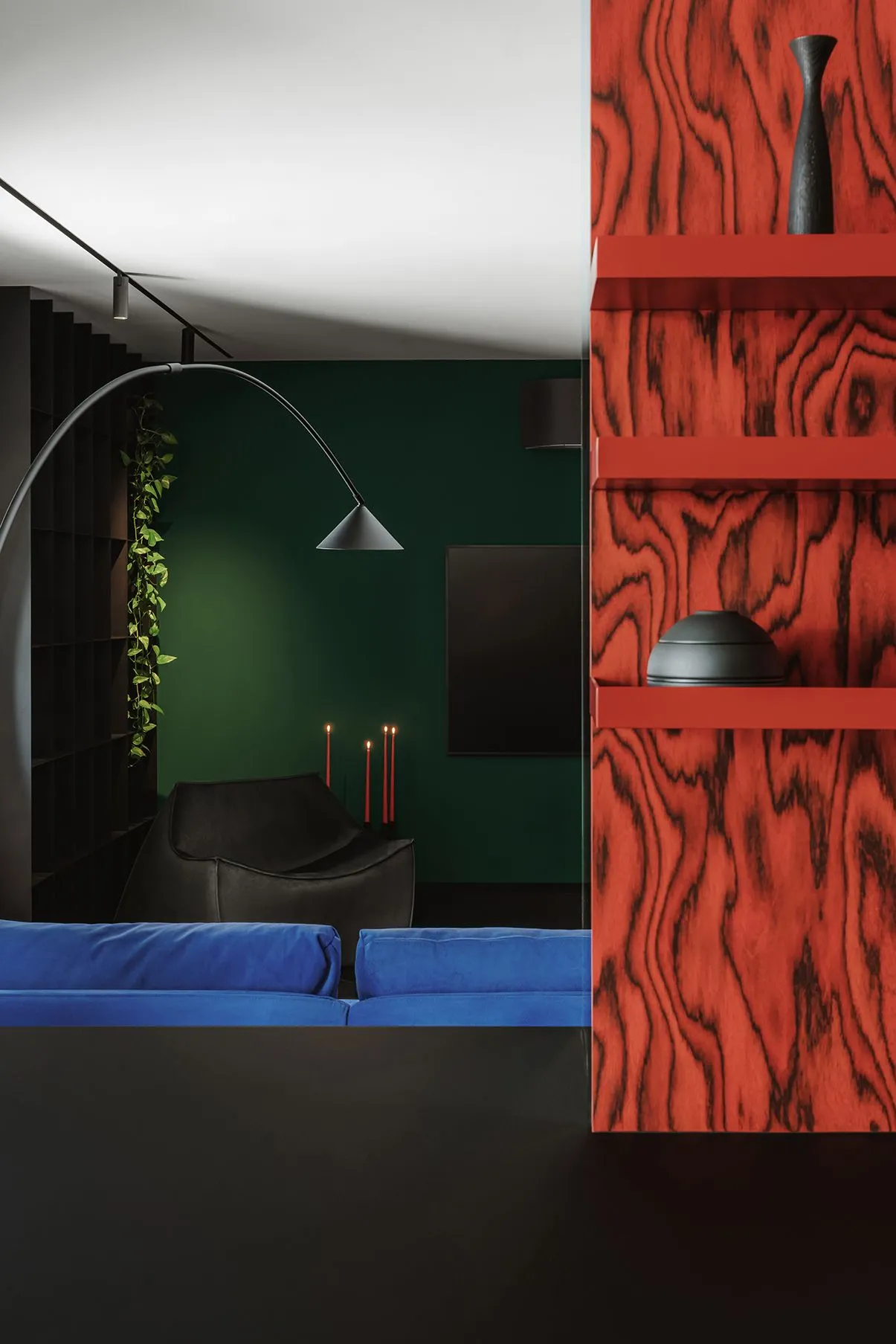 We were faced with the task of creating an emotional, expressive interior for the creative couple and their cat. The result of our collaboration was a truly craft space filled with bold colors, deep meanings and experimental solutions. At the same time, it is not deprived of the necessary functionality. This is the case when artistic decisions are justified not just by meanings, but are intended to serve for a comfortable life.