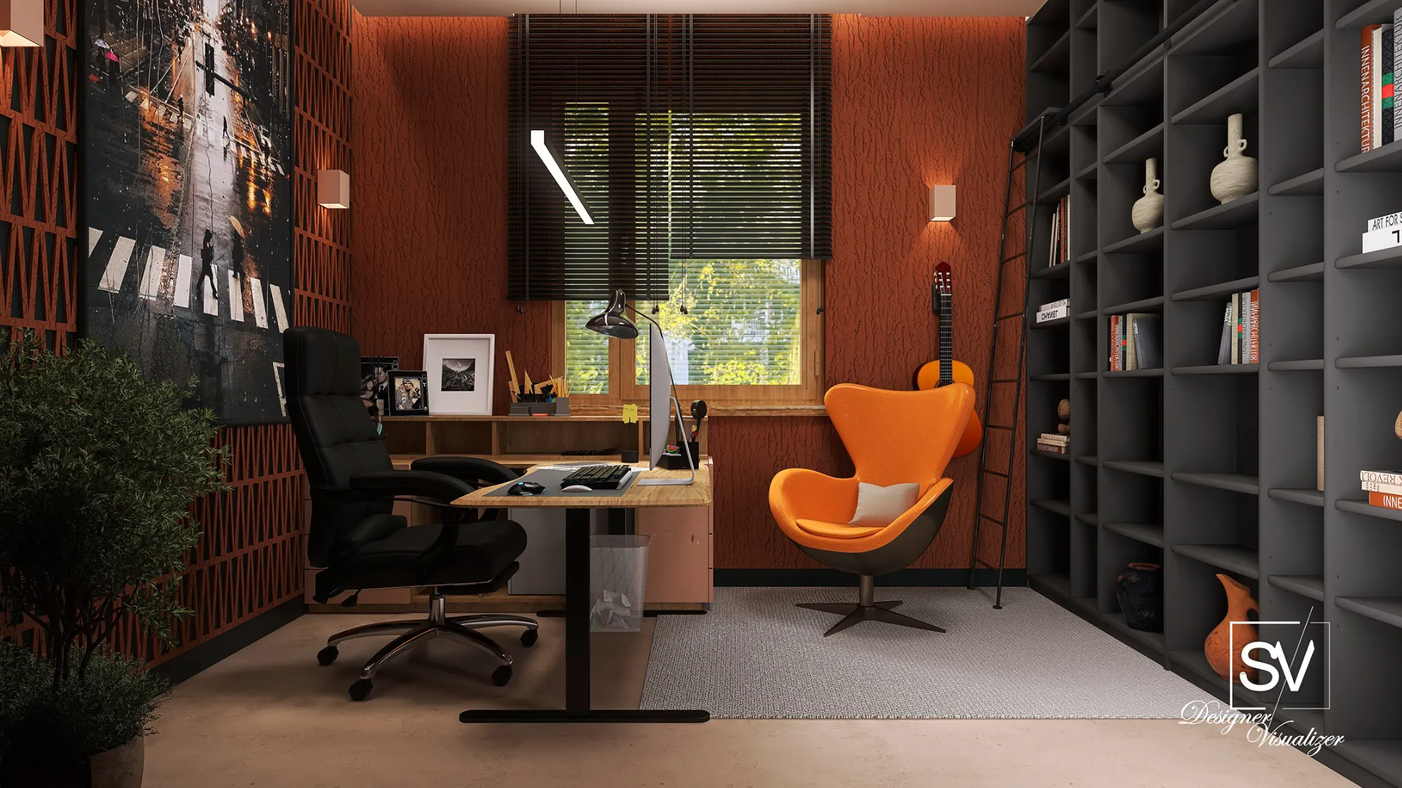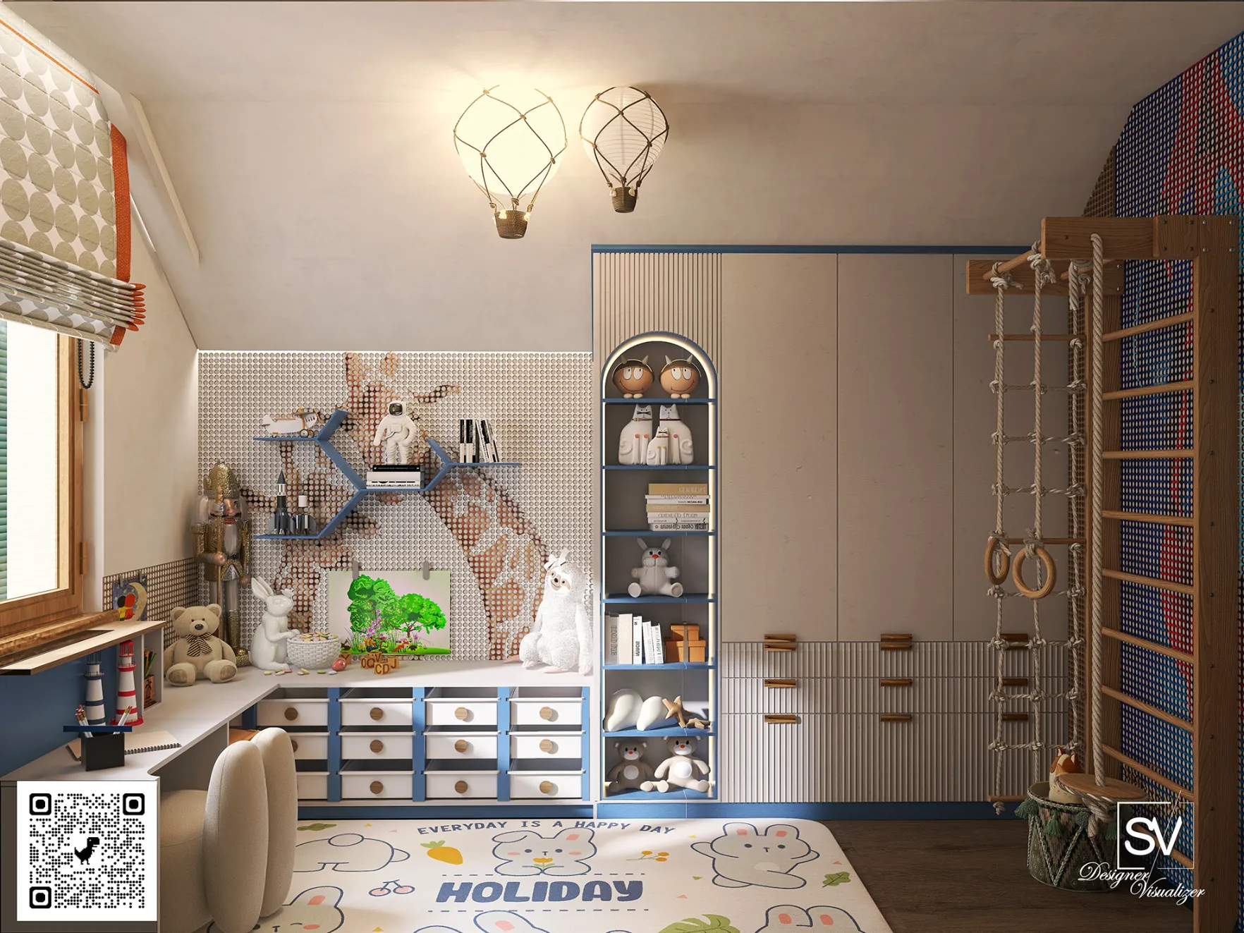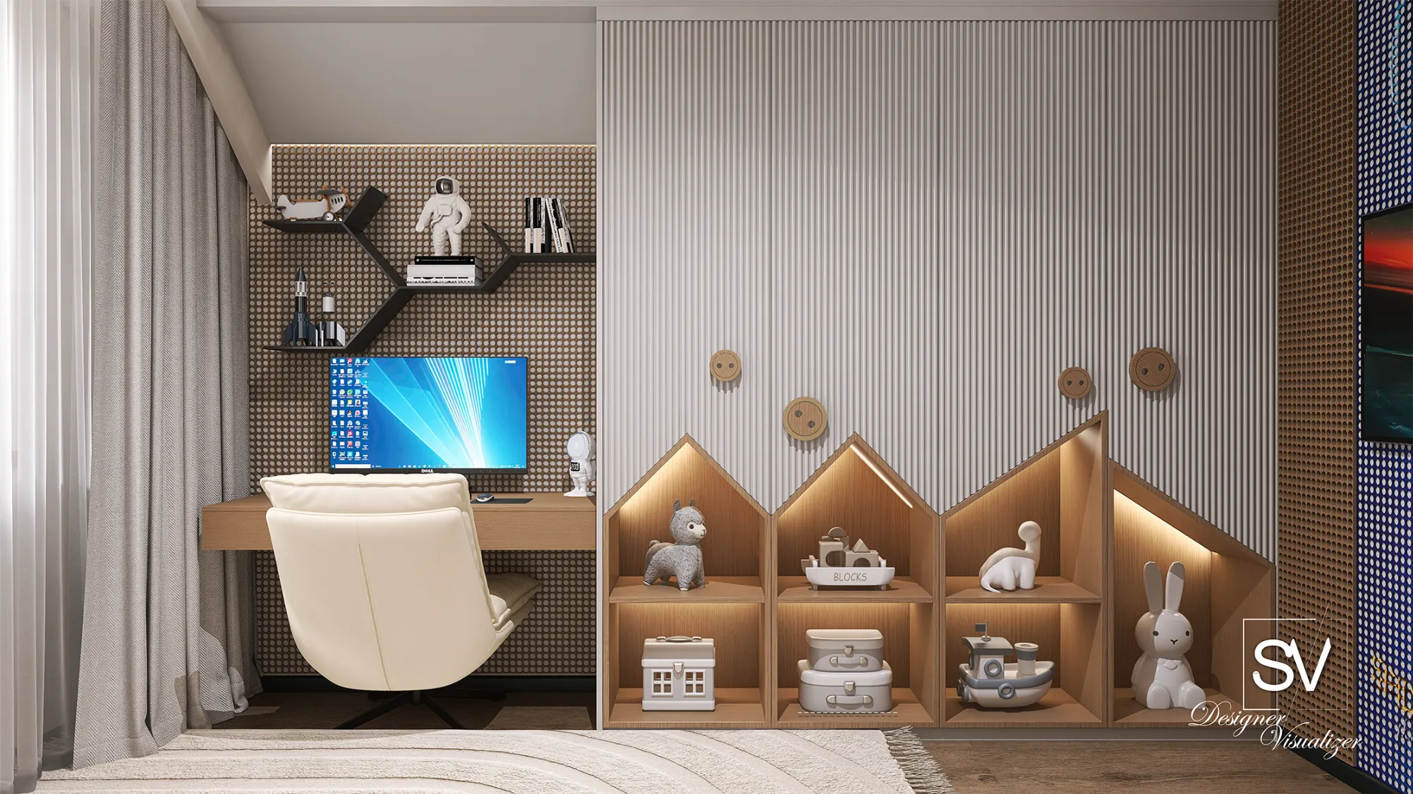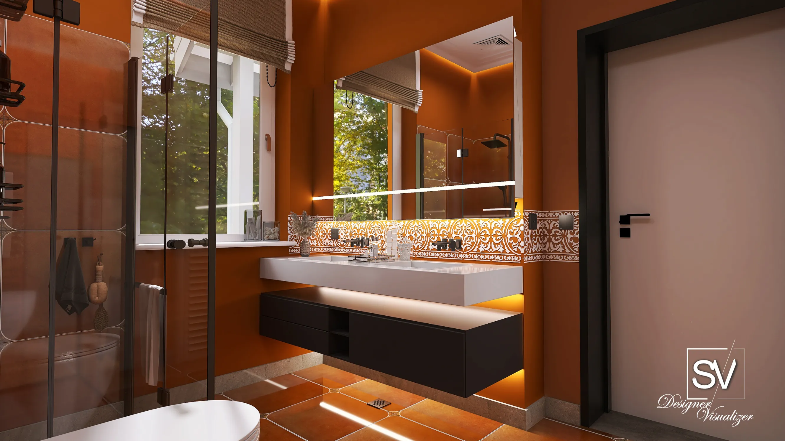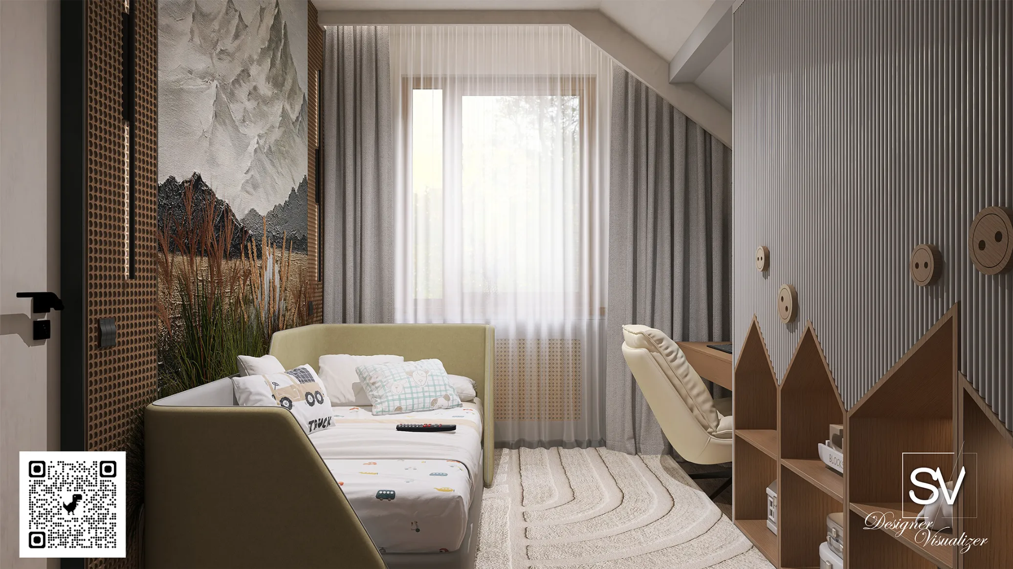 The interior design gives the impression of comfort and warmth, harmoniously combining modern aesthetics with expressive ethnic motifs.