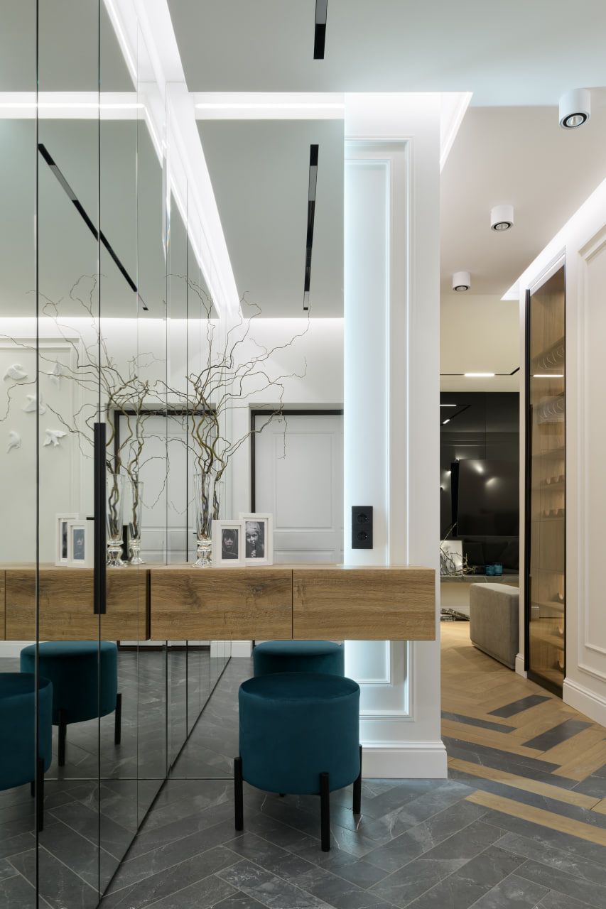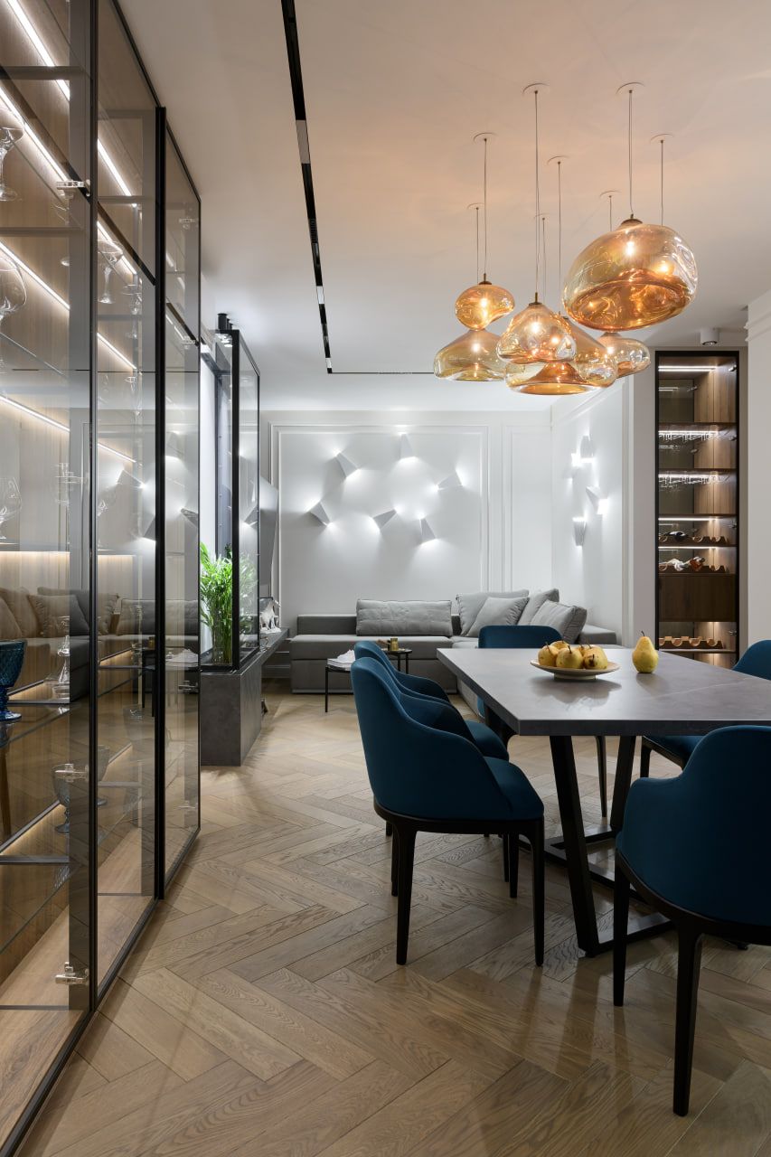 We worked with the layout so that each zone was self-sufficient, but at the same time organically woven into the overall composition. Light transparent partitions, thoughtful light, the rhythm of natural materials and modern accents allowed to achieve harmony. It combines functionality and a sense of space, restrained classics and bold details.