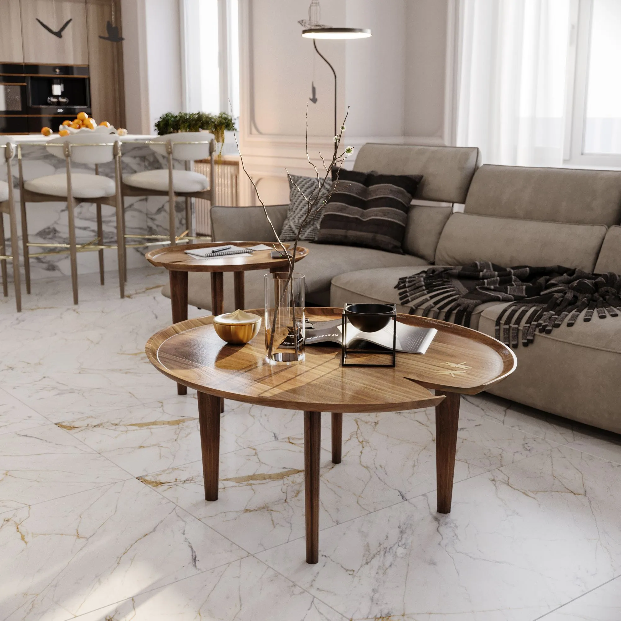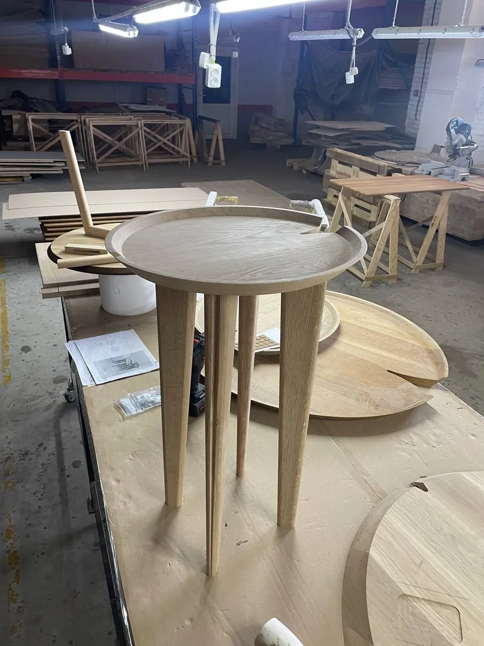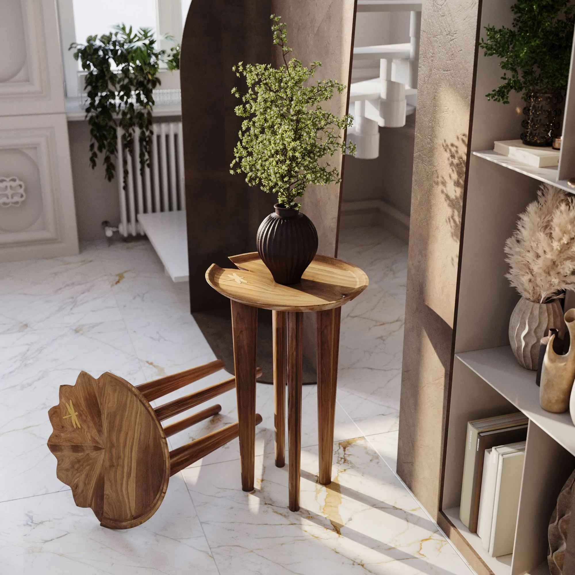Execution: made of solid wood with decoration of the countertop with brass insect Dragonfly. Two forms - flowers and leaves, different sizes of tables, can make up a composition on the same theme, which makes it possible to diversify the set of forms in your interior.