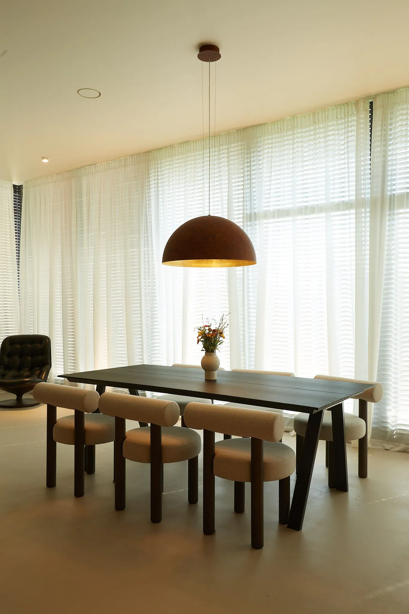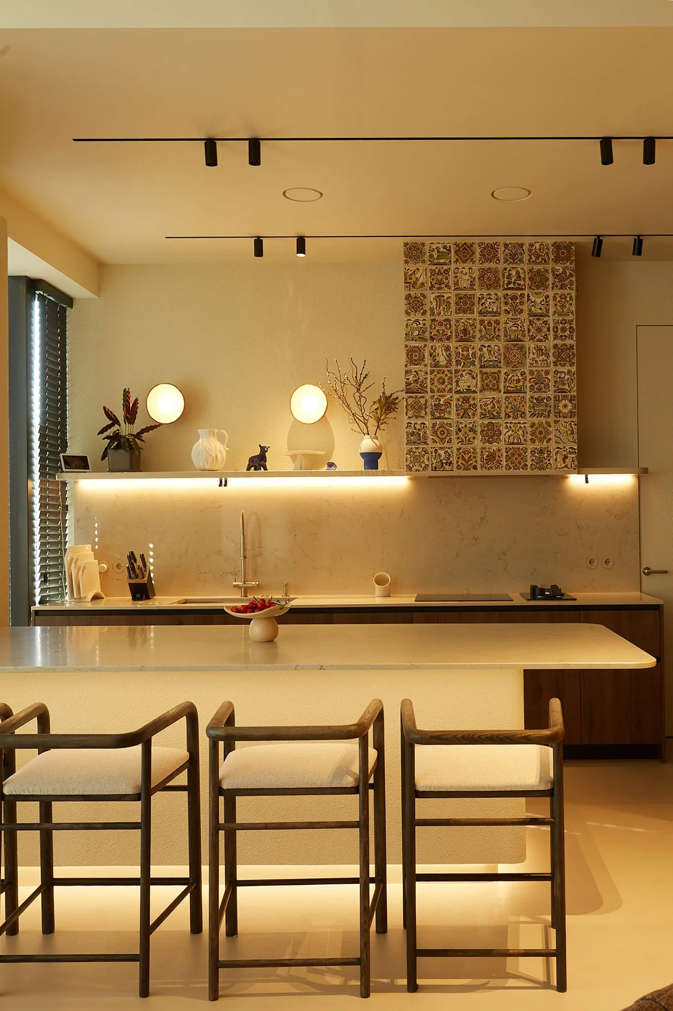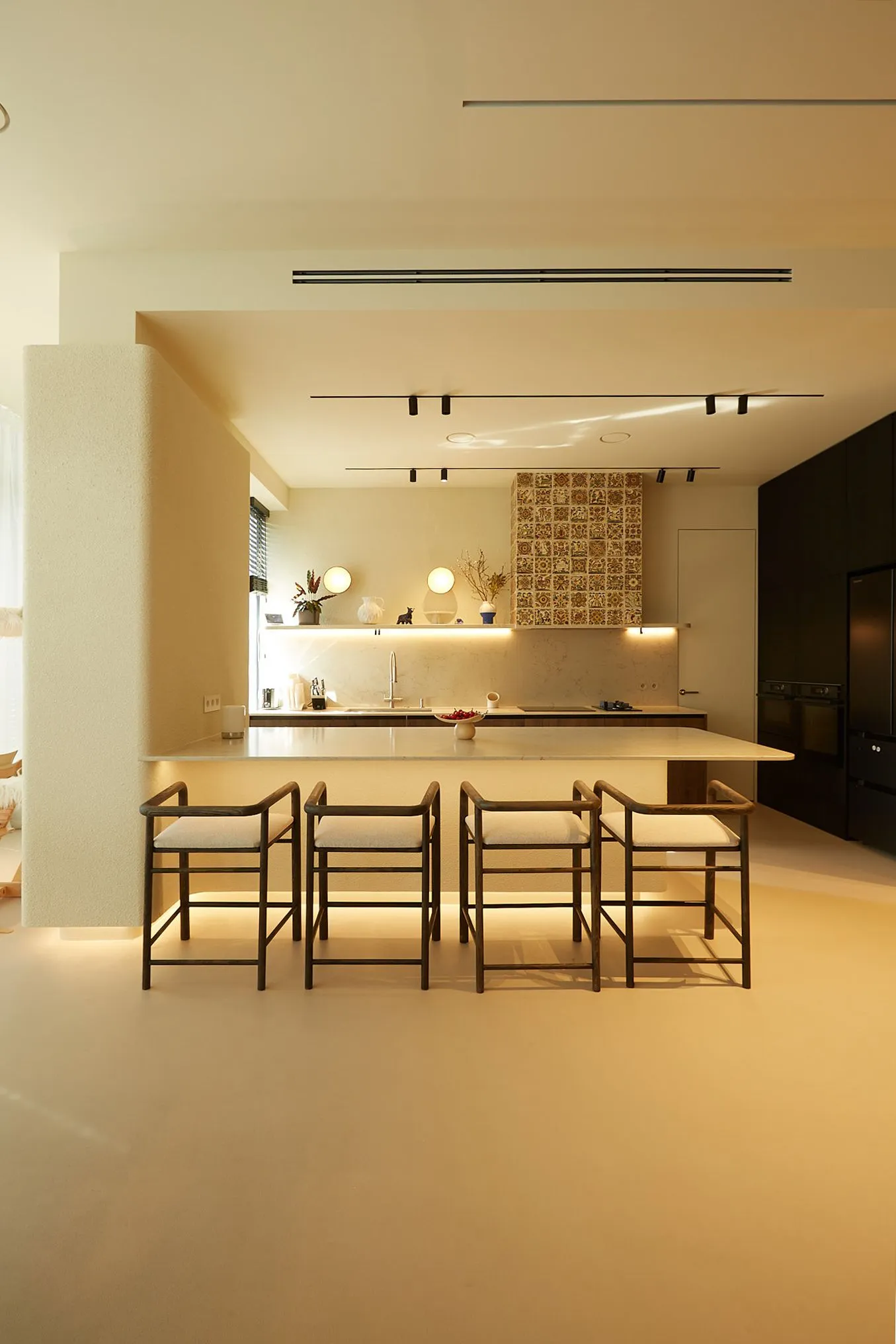 This interior is an attempt to understand Ukrainian identity in a modern context. The project is designed for a young family that appreciates silence, space and things with depth. At the center of the composition is human warmth, materials with character and forms that do not cause noise, but on the contrary - soothe. We consciously moved away from the visual cliché of “ethno-Ukrainian style”, leaving hints through tactile surfaces, handmade carpets, textures, wood and traditional archetypes. The main idea is to weave Ukrainian motifs not visually, but emotionally. This is how the connection between generations arises: through sensations. The space was planned openly, with soft transitions between zones. Minimum number of colors, but every detail is verified. Graphics, embroidery, ornament — everything is embedded in textures, light and rhythms. In the interior there is a sense of respect for the past, but without museality — it is a home that is alive and warm, like a fire in a furnace.