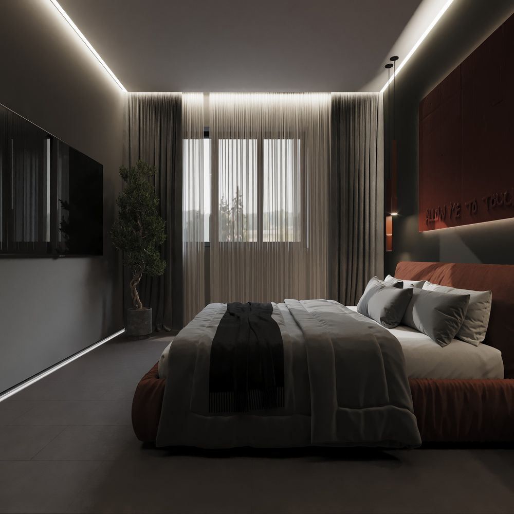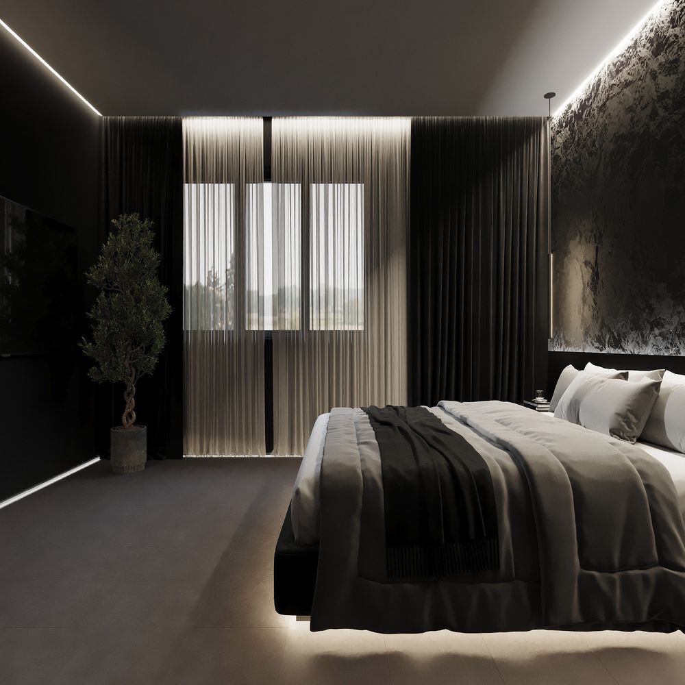 This project is a bold example of modern minimalism, where the main tool for creating an atmosphere was the play of light and shadows. The interior combines restrained architecture, deep hues and accent lighting, which allows the space to change mood depending on the time of day and the scenario of life of the inhabitants.