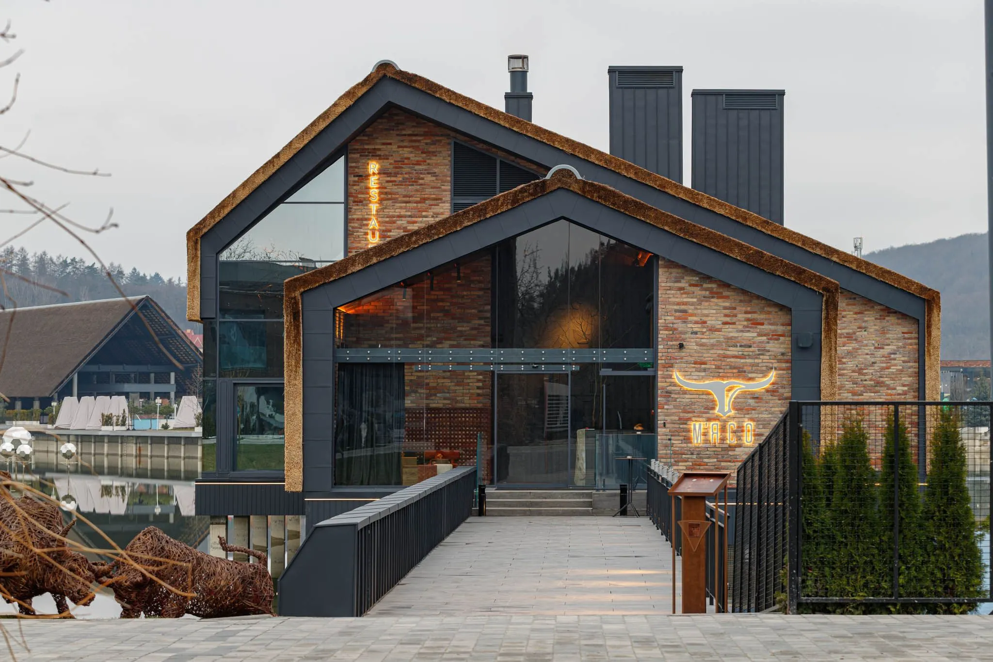 In the middle of the water, in the heart of Emily Resort, stands the restaurant “MIASO” — a conceptual space that combines power, aesthetics and harmony with nature. It is a place for those who appreciate not only gastronomy, but also the atmosphere that is formed thanks to a unique architectural solution, light and materials.