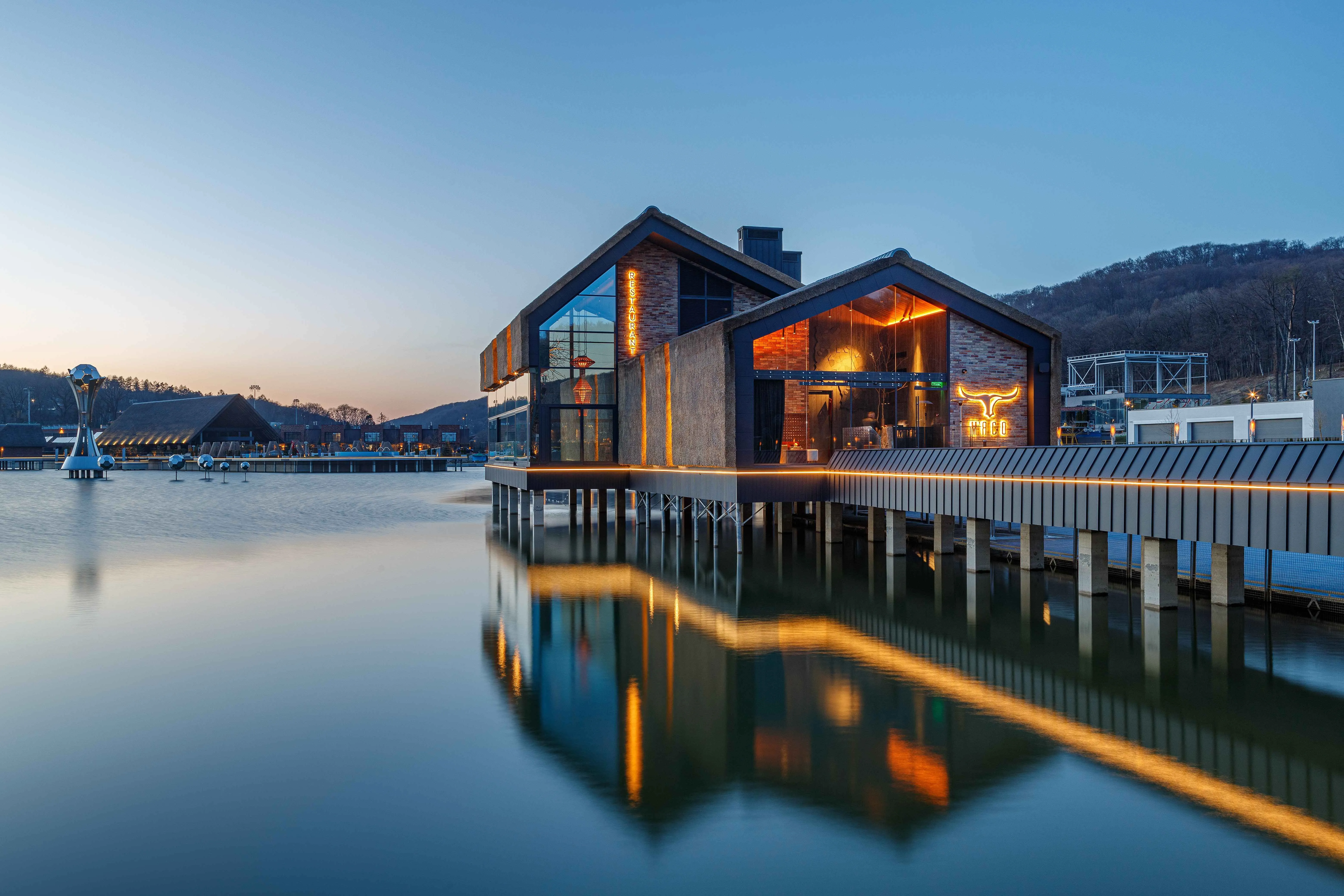 Particular attention is paid to lighting and details. During the day, natural light penetrates through the large panoramic windows, creating a sense of unity with the surrounding landscape. And in the evening, the space changes: the lights of torches along the pier fill the air with warmth and mystery, forming an atmosphere that you will not find anywhere else.