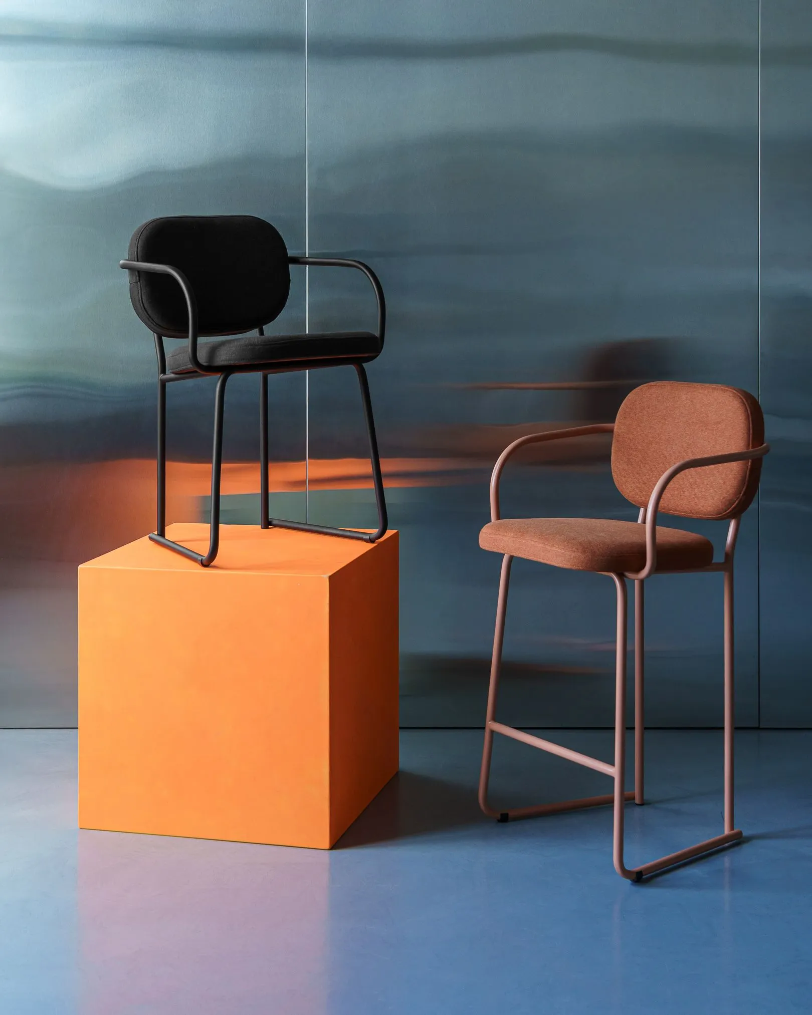 Designed specifically for 4corners, the Sled series of chairs is all about fashion and style in furniture design. It is the challenge of the present through design, it is a change in the vector and the perception of things that are familiar to us. Elegant lines made of curved metal create an unusual and uncompromising shape that immediately makes a mention of itself. The bright colors and variety of materials allow the collection to be used in a variety of spaces, both residential and commercial. Armrests provide special comfort to the chairs, which create a unique pattern of the object.
