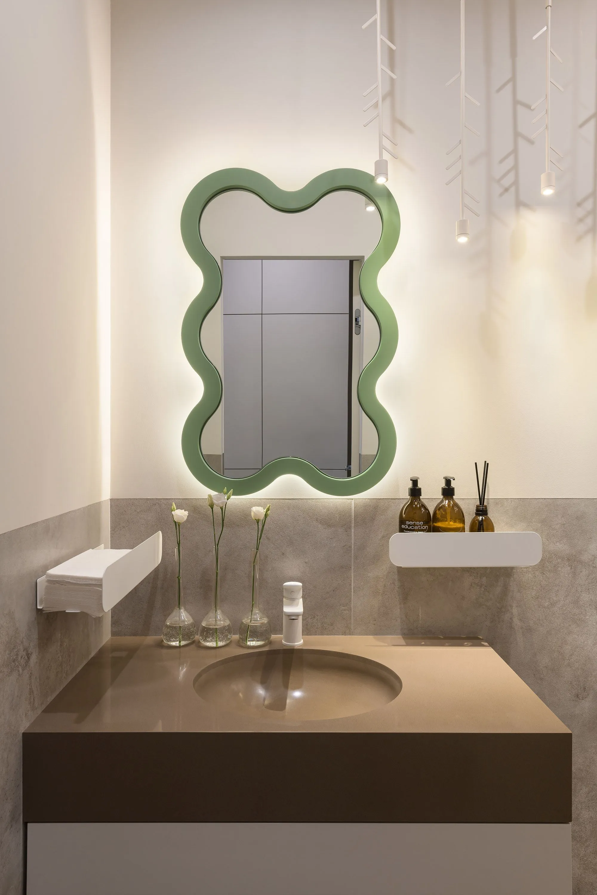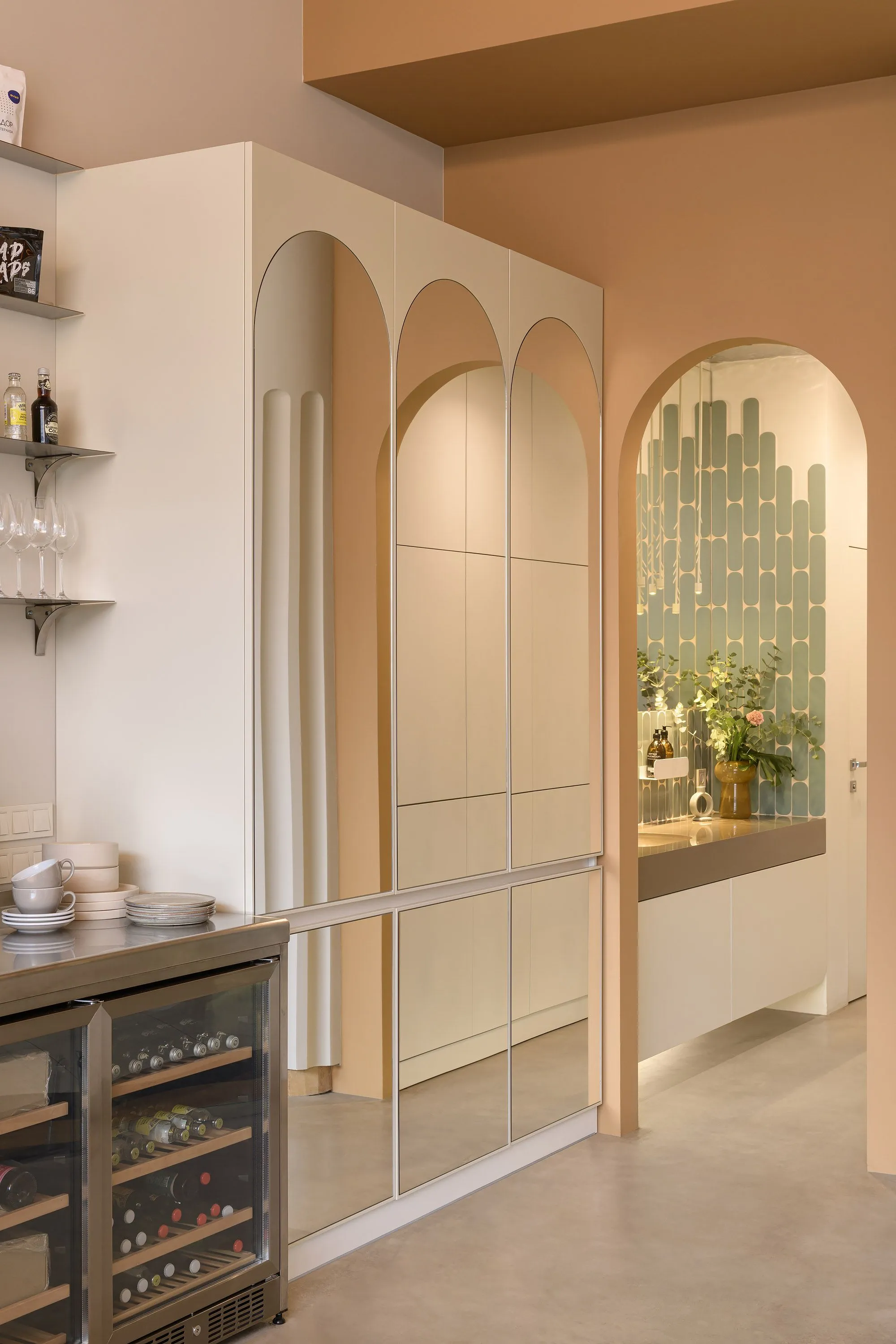 The main criteria in the technical design plan was to withstand all the necessarynorms — ventilation, insolation, high strength of coatings and environmental friendliness of materials.Therefore, such types of finishing as microcement, bulk floor, decorative plaster, tiles and mirrors were chosen. The main emphasis was on usingitems of Ukrainian and Scandinavian design, such as: LITVINENKO DESIGNSTUDIO, Diza, Babich studio, IKEA, Oitoproducts, FurFur, Kononenko ID. All these elements were suitable for budget and style, thanks to which we were able to be free of finishing materials and engineering.