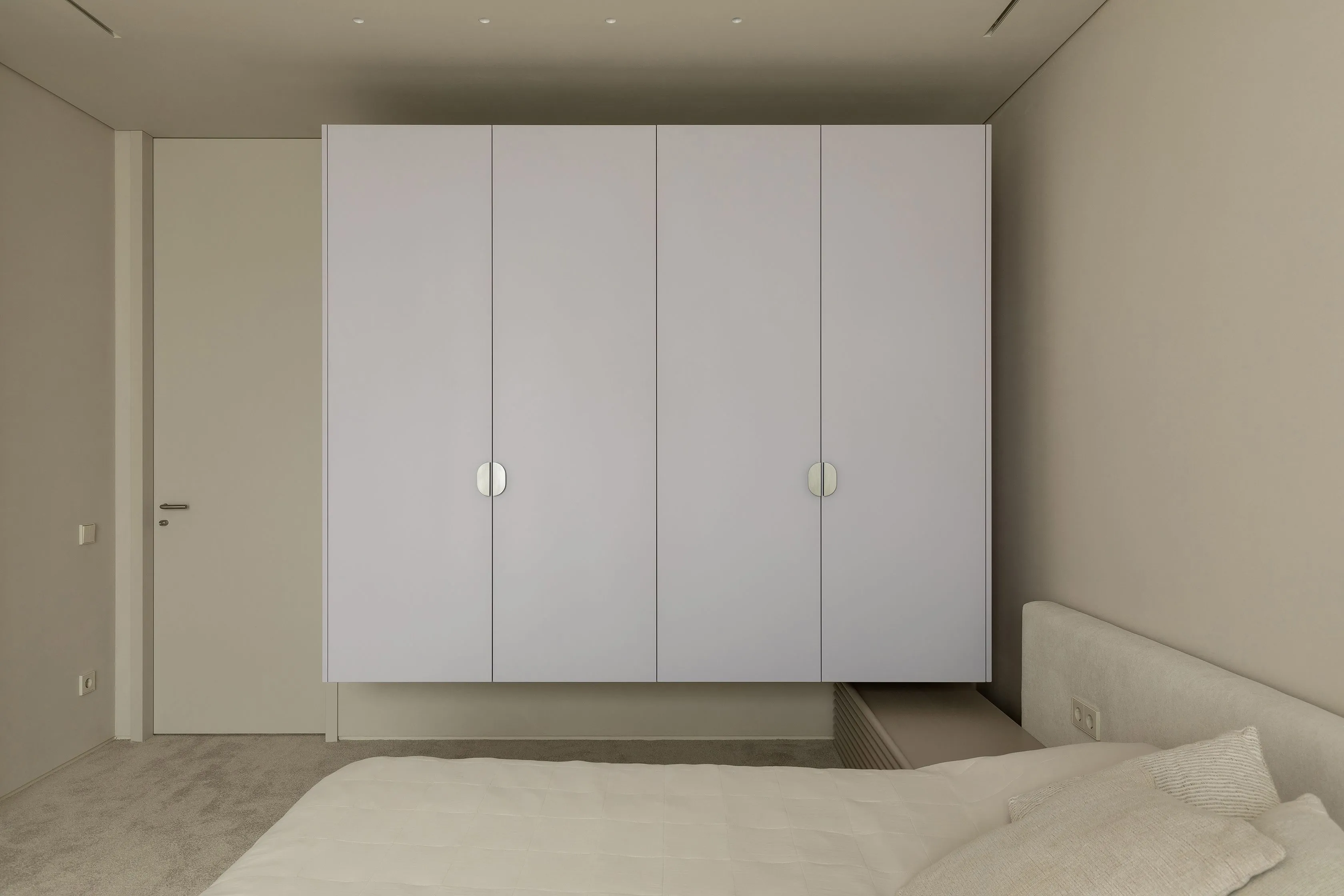 На другому поверсі реалізовано оптимізоване планування, яке дозволило розмістити дві дитячі кімнати, дитячий санвузол, а також майстер-спальню з індивідуальним гардеробом і ванною. Щоб знайти місце для додаткової дитячої кімнати, було переглянуто геометрію коридору та перебудовано сходи — рішення, яке дозволило вивільнити площу без шкоди для логіки переміщень.