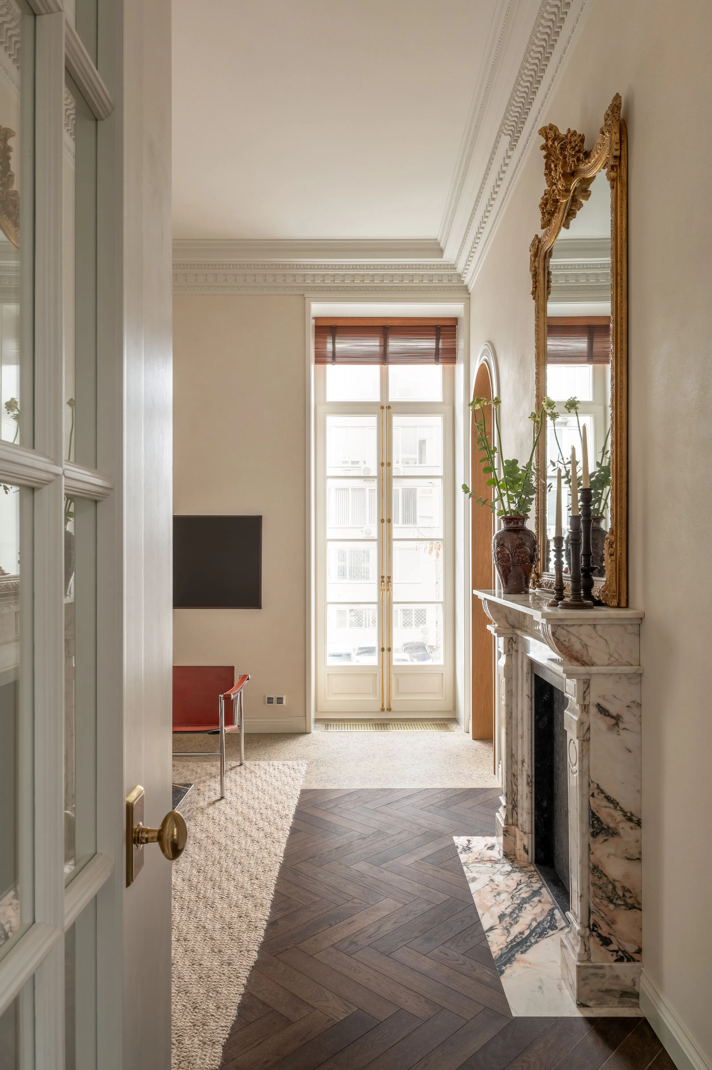 Вже на етапу демонтажу ми зрозуміли що доведеться робити реконструкцію перекриття, яке було дерев'яне та плито-бетонне, а всі вікна та отвори в стінах додатково стягувати металевим каркасом. Обмірковуючи майбутній дизайн з замовником, ми вирішили взяти елементи класичного стилю, що у контексті апартаментів розкрило їх потенціал, а головним акцентом зробити предметний дизайн 30-их - 70-их рр., котрий розповідає свою історію на фоні класичних порталів, каміну та гіпсового декору.