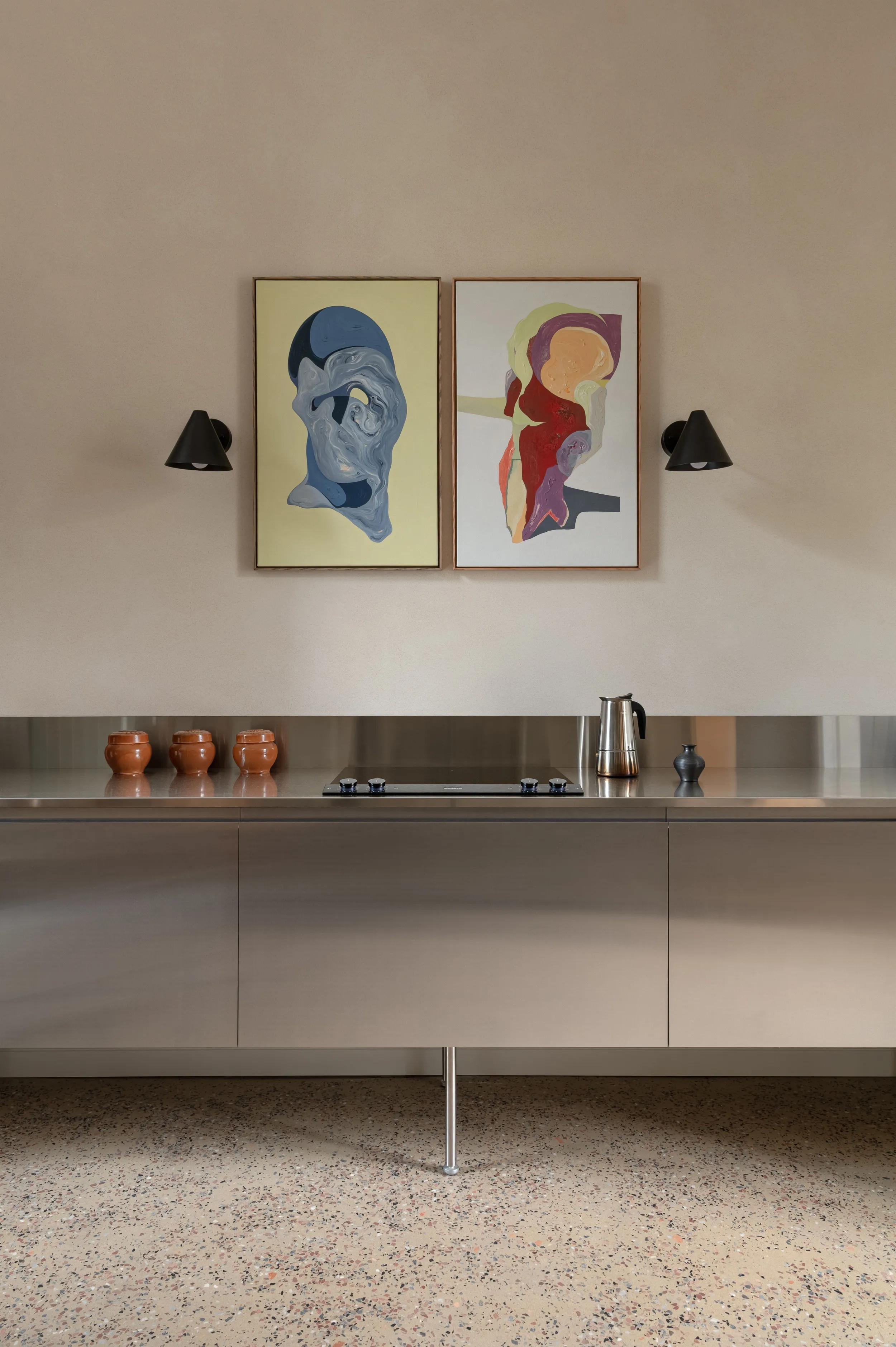Дизайн апартаментів тісно пов'язаний з мистецтвом у його різних проявах - таких як предметний дизайн та сучасне українське мистецтво. Скультура - Дмитро Грек, діптіх на кухні - Ростислав Завгородній, живопис - Крістіна Отчіч-Черняк. Все це допомогло створити живий інтер’єр, де ми помріяли на тему mid century у його Київській інтерпритації.
