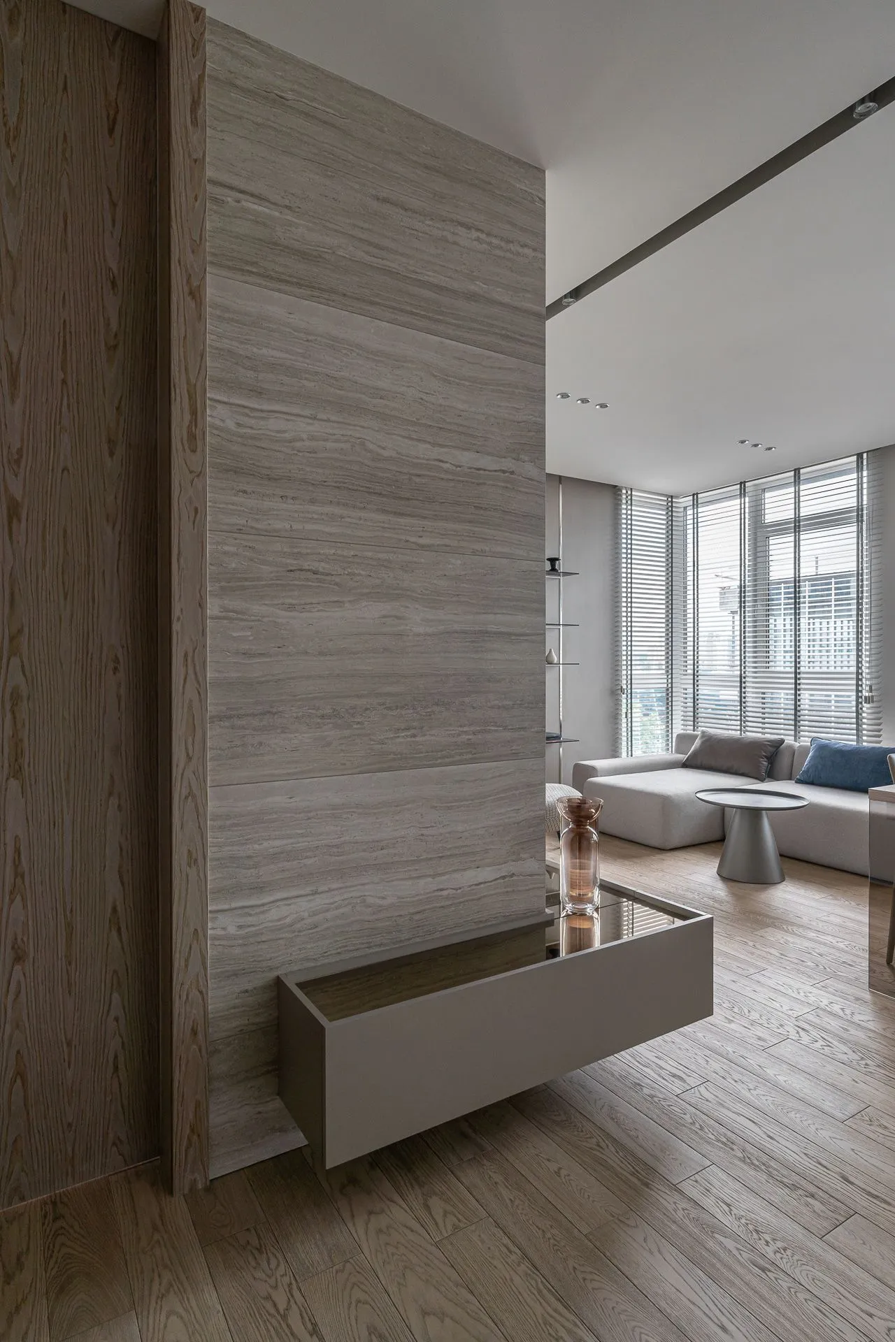 Cashmere Grey — це сучасний інтер’єр, побудований на поєднанні мінімалістичних форм та природної тактильності матеріалів. Основна концепція — створити простір, де стримана палітра та чітка геометрія працюють разом із текстурами дерева, каменю та скла, формуючи атмосферу тиші й балансу.