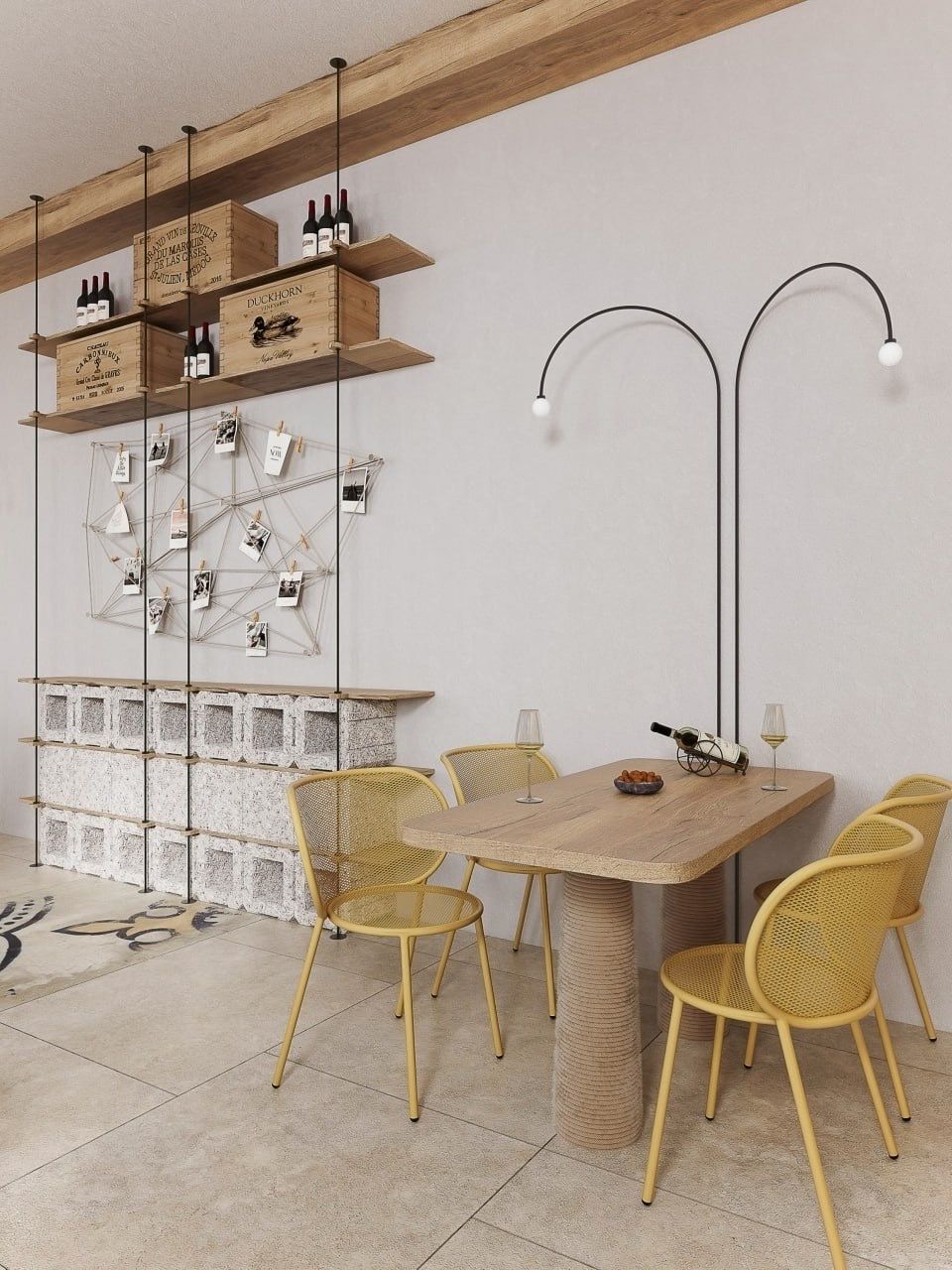 Загалом – дизайн зали це інтер’єра подорож, повне відображення природної палітри с акцентами та елементами лофту. Рай для поціновувачів вина.