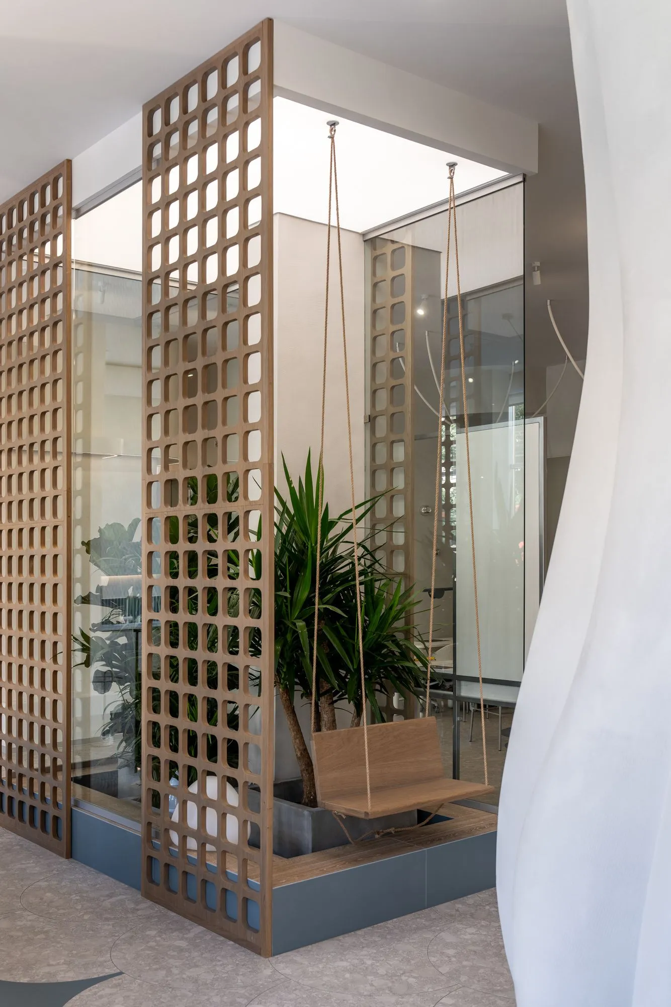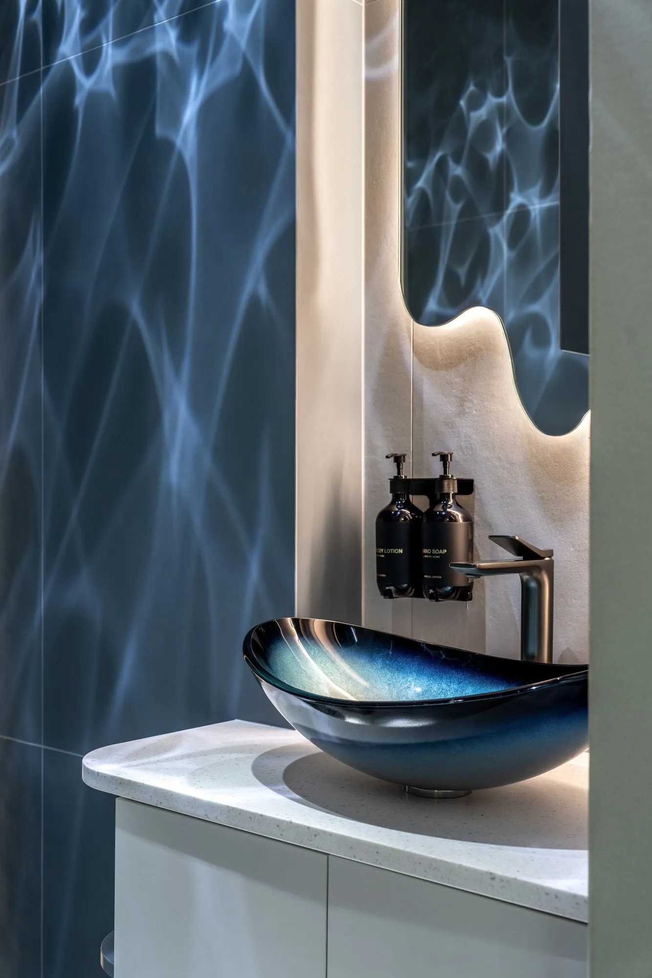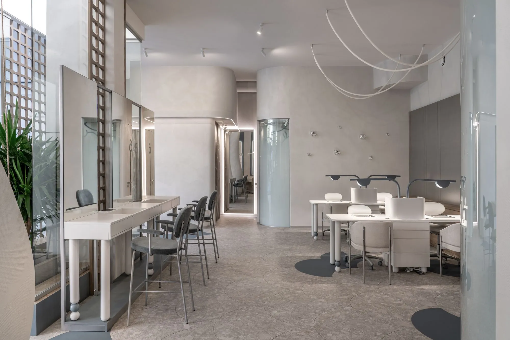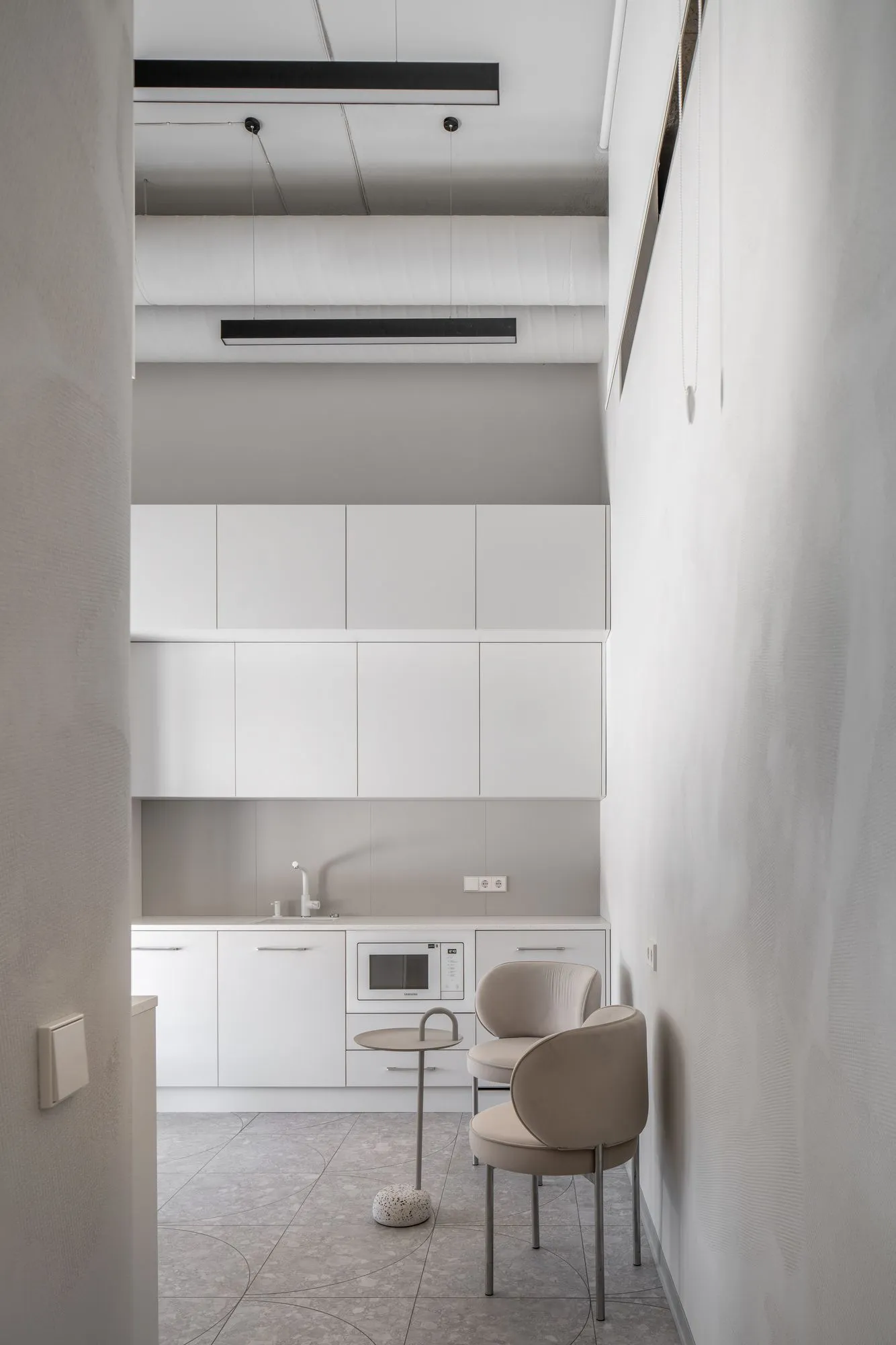 Дизайн центру краси та здоров'я DIEVA був для нашої команди дуже надихаючим проектом. За основну ідею ми обрали тему води , як символ очищення і оновлення і розвинули її в інтер'єрі з сенсами . Багато елементів ведуть візуально, але ненав'язливо погляд споживача викликаючи асоціації з морем , відпусткою і легкістю відпочинку, починаючи з підлогового покриття і стін, як схожі одночасно на морський пісок з віддтиском рибацької сітки і морські плавні скелі виточені морем. Металеві панелі, які відбивають світло імітуючи хвилі, шторка в дитячу взагалі окремий арт об'єкт і нагадує малюнок, який створюють хвилі на березі морського узбережжя. На стінах декори ручної роботи, які нагадують морські квіти, або дзеркала плавних форм.Синій колір зонально підсилює атмосферу і тематику. Також вправна гра світла , яке десь створює відчуття відкритого неба, яке ніби проривається в простір і засвічує оазис, який відразу за рецепцією зустрічає гостей. В зоні санвузла світло більш вечірне , і оповите малюнком світлових віблисків хвиль. Форма рецепції ігрива але і функціональна , оскільки в простору два входи ,і вона ніби зустрічає відвідувачів з обох. Форма рецепції також символізує форму корабля, який проходить морем а хвилі і сонячні зайчики відбиваються на його палубі і створюють малюнки.