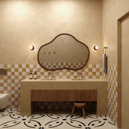 Увесь проєкт об'єднує оригінальна ідея шахової форми, що ненав'язливо проявляється у кожній кімнаті через різноманітні інтерпретації — від картини з акцентною рамкою з геометричної плитки до унікального стільця від українського митця Антона Саєнка, створеного в колаборації з Between the Walls. Увага до деталей помітна від дзеркальних фасадів прихожої до драматичного гостьового санвузла в глибокому червоному відтінку з поєднанням мікроцементу та фактурних шпалер.