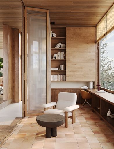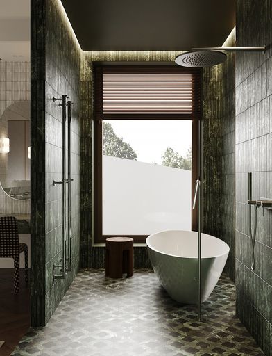 Проєкт базується на використанні природних матеріалів та глибоких тактільних текстур. Глибокий колірний код будується на діалозі між природними відтінками теракоти, зеленого, глибокого бежу та акцентного чорного. Завдяки чистоті форм та використанню автентичних матеріалів інтер'єр не підвладний швидкоплинним трендам, а натомість розкриває глибину концептуального дизайну — простір, де естетика співіснує з комфортом.