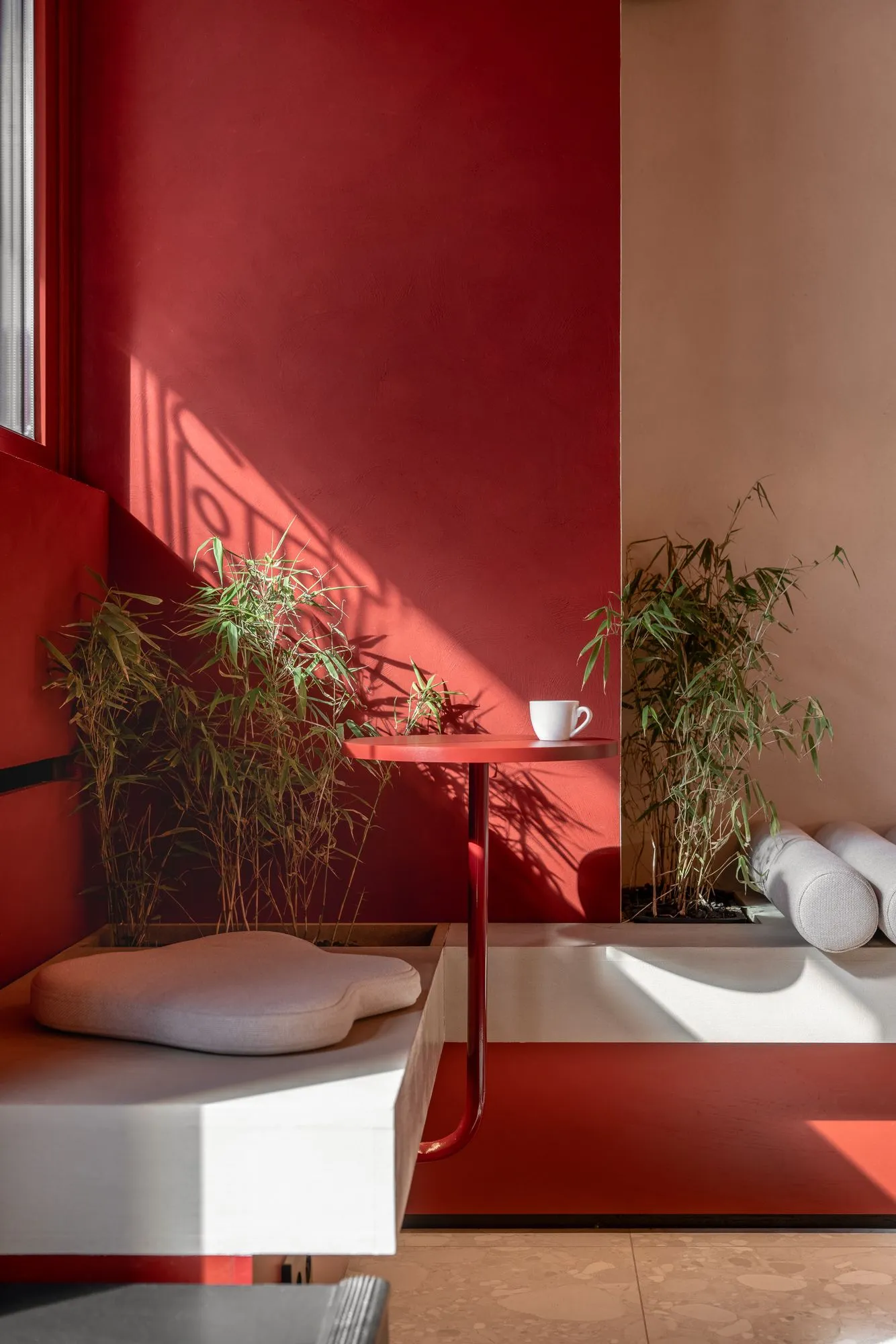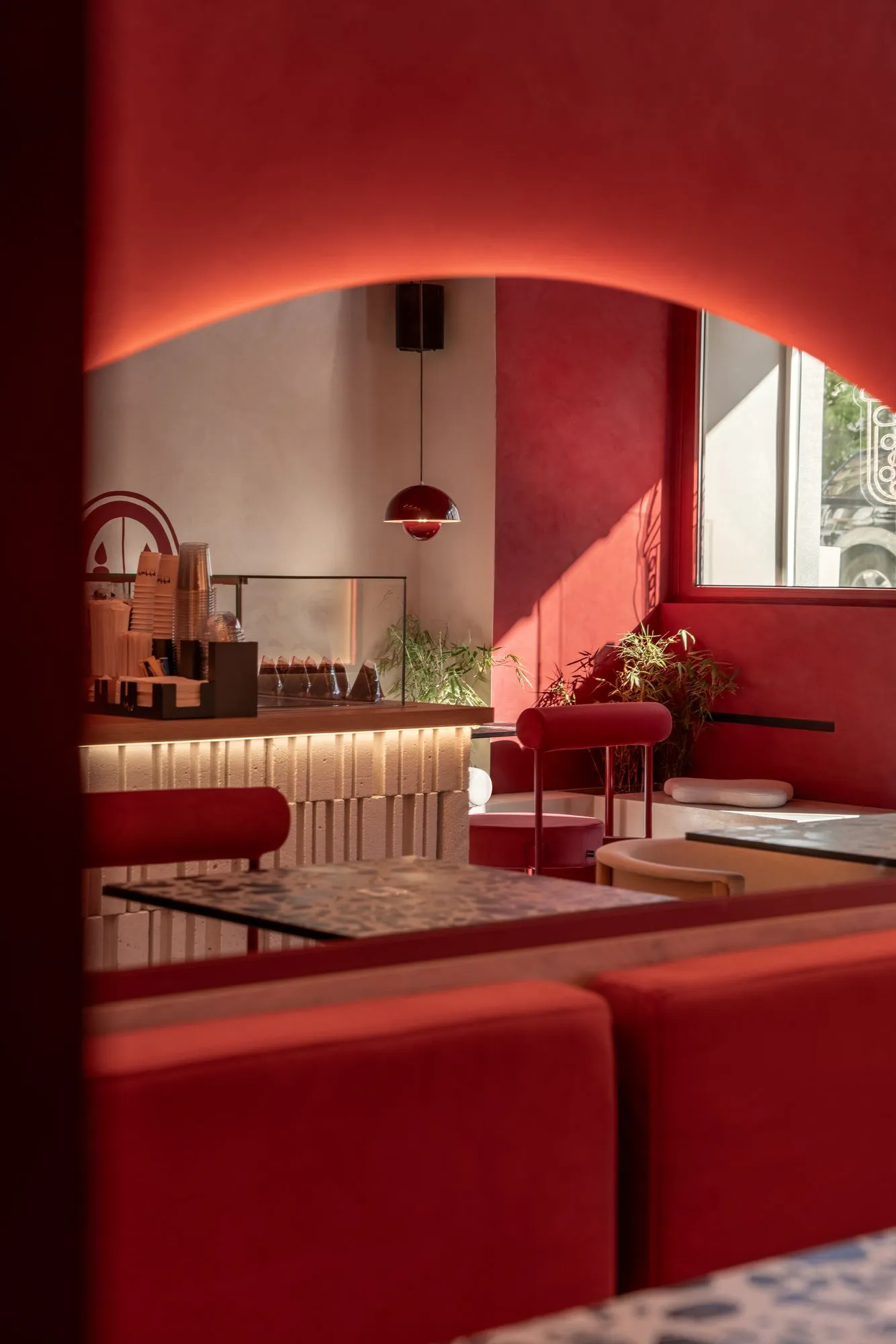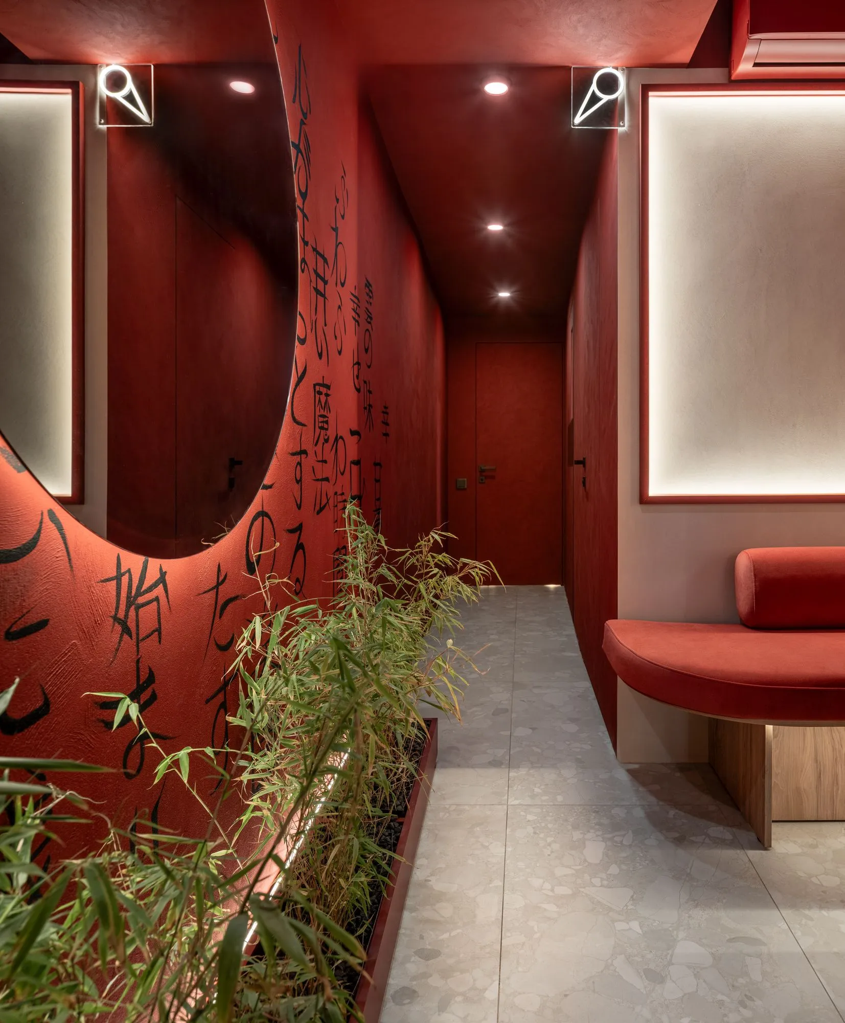Молодіжний стильний заклад , японські пенкейки "Fluffy". Заклад сміливий по кольоровому рішенню, натхненний мультфільмами аніме та японською культурою. При вході використані японські ліхтарики що символізують єдність світів , а саме українського світу. Ієрогліфи виконують тут не тільки декоративну а і змістовну функцію, оскільки основана фраза перекладається як "життя яскраве як японський пенкейк". В просторі ми розвинули тему соня, в першому залі в нас сонце сходить а в другому воно вже ніби вийшло. Також бар оформлений в стилі street food з неоновими підсвітками, просте оформлення блоку , яке теж личить культурі стрітфуду, і тканини які додають шарму і легкості на яких плавно розсіююється світло . В другому залі є родзинкою є велика люстра - відносить нас ідейно до мистецтва "куміхімо" - мистецтво плетіння шнурів що є великою частиною японської культурної традиції, а символізують єднання і гармонію. Улюбленою стравою відвідувачів є саме японські пенкейки , тому подушки на сидіннях виготовлені у формі вилитого тіста.