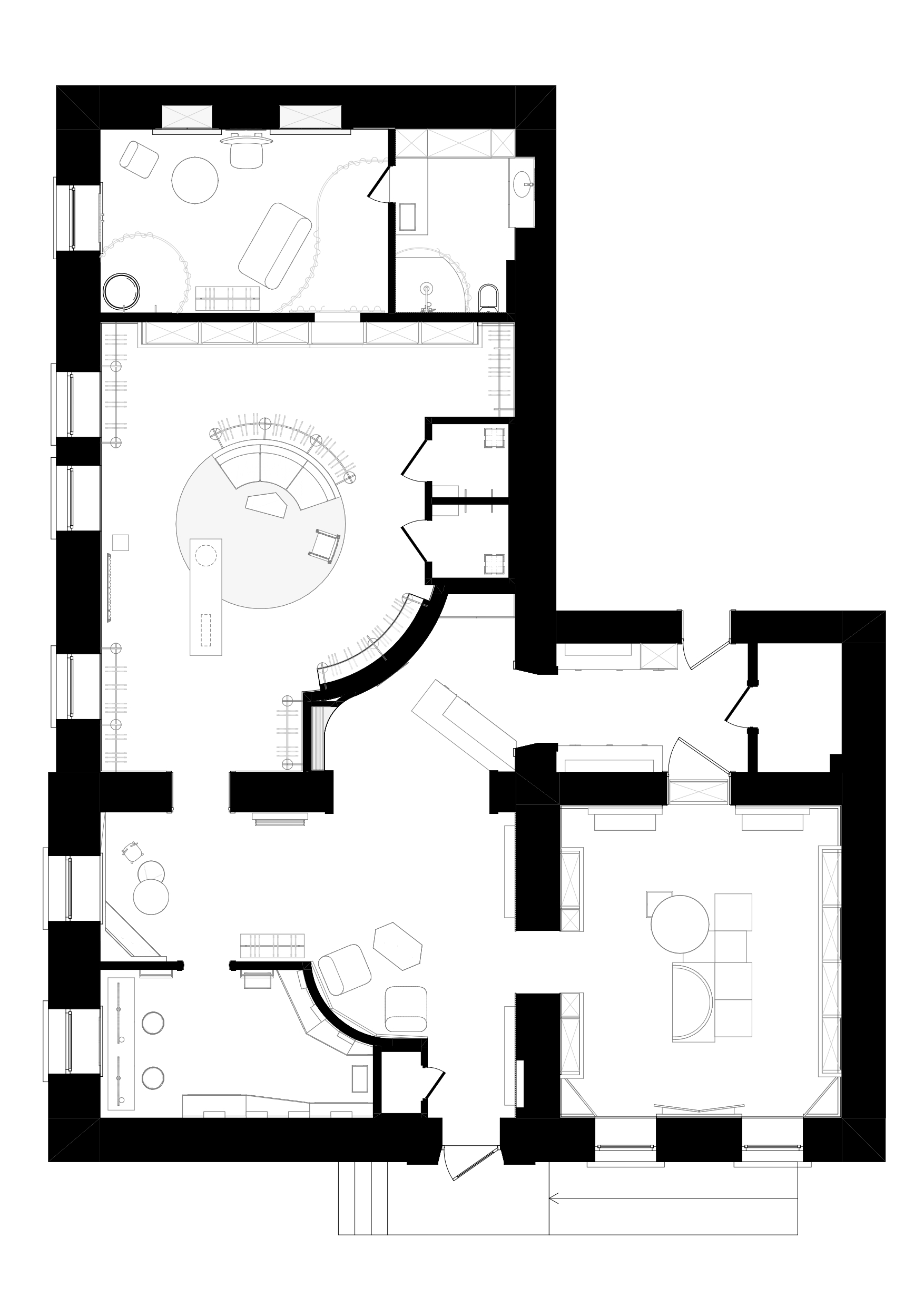 Одним з головних завдань дизайну стало збереження історичних деталей – деревини, меблів та ліпнини, які передавали пам’ять про кілька поколінь. За словами команди, приміщення довго залишалось порожнім через складний та помпезний інтер’єр, втім саме ці елементи мали особливу цінність для власників будівлі. В результаті дизайн поєднав спадщину та сучасне бачення Gunia Project: простір став світлим, функціональним і водночас наповненим історією.Натхненням для дизайну меблів стали традиції українського різьбярства та архіви стародавніх предметів, які досліджує Анна Марія Кучеренко (Archive of Forms).