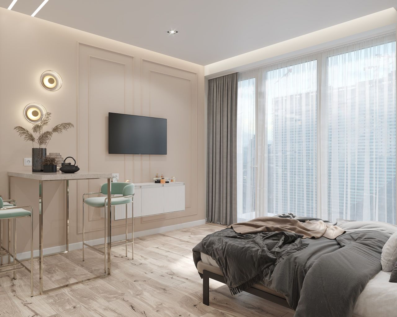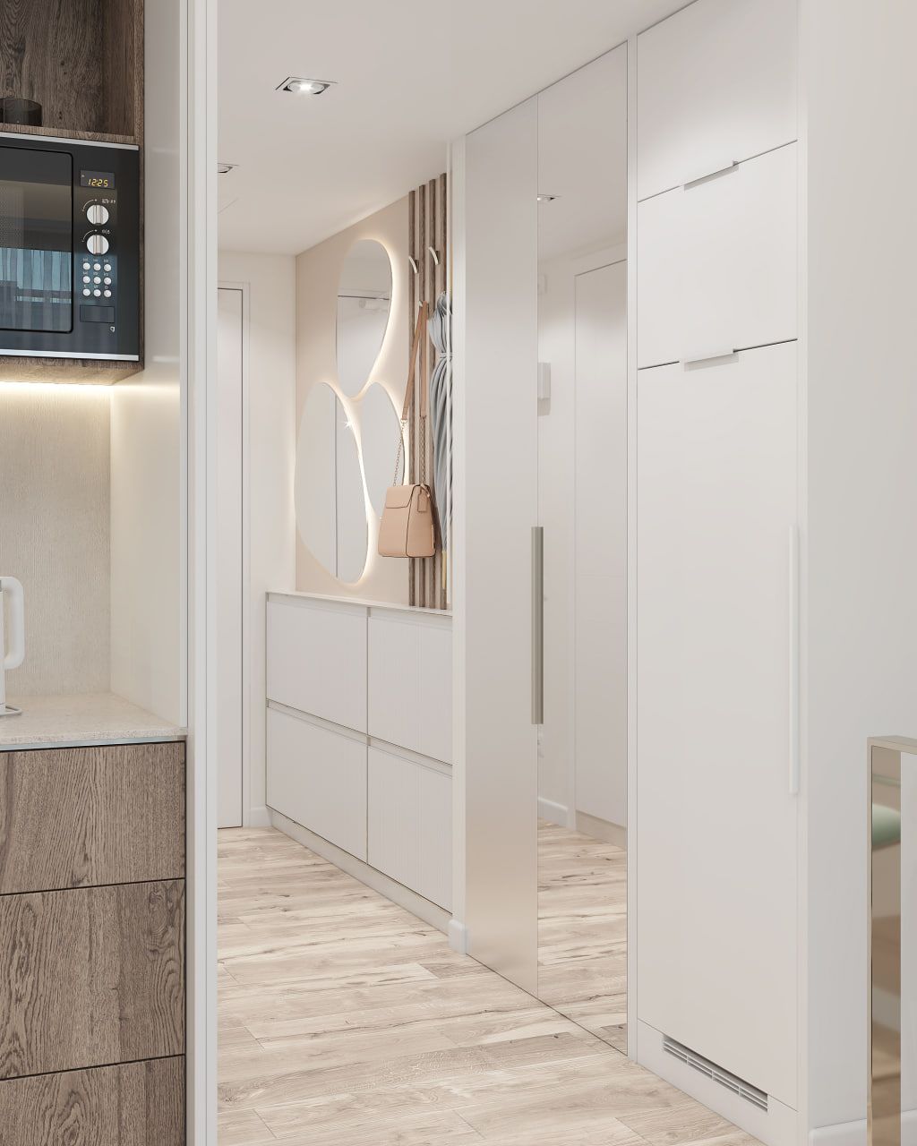 Квартира площею 27,17 м² стала експериментом з ергономікою та стилем, де кожен сантиметр працює на комфорт мешканців. Натхненням став образ сучасної яхти: мінімалізм, чіткі лінії, тактильні матеріали та відчуття простору попри обмежену квадратуру.Основна ідея — створити житло, у якому маленький метраж не сковує, а дарує легкість та свободу. Тому в інтер’єрі: — приховані системи зберігання, інтегровані у стіни, які зливаються з архітектурою; — трансформаційні рішення для кухні та зони сну, що дозволяють максимально раціонально використовувати простір; — тепла нейтральна палітра з акцентами на дереві та текстурних матеріалах, яка створює відчуття камерності; — світло та дзеркальні поверхні, що візуально збільшують простір та підкреслюють його архітектурну пластику.У результаті ми отримали компактну «каюту майбутнього» — місце, де гармонійно поєднуються функціональність, естетика та відчуття спокою.