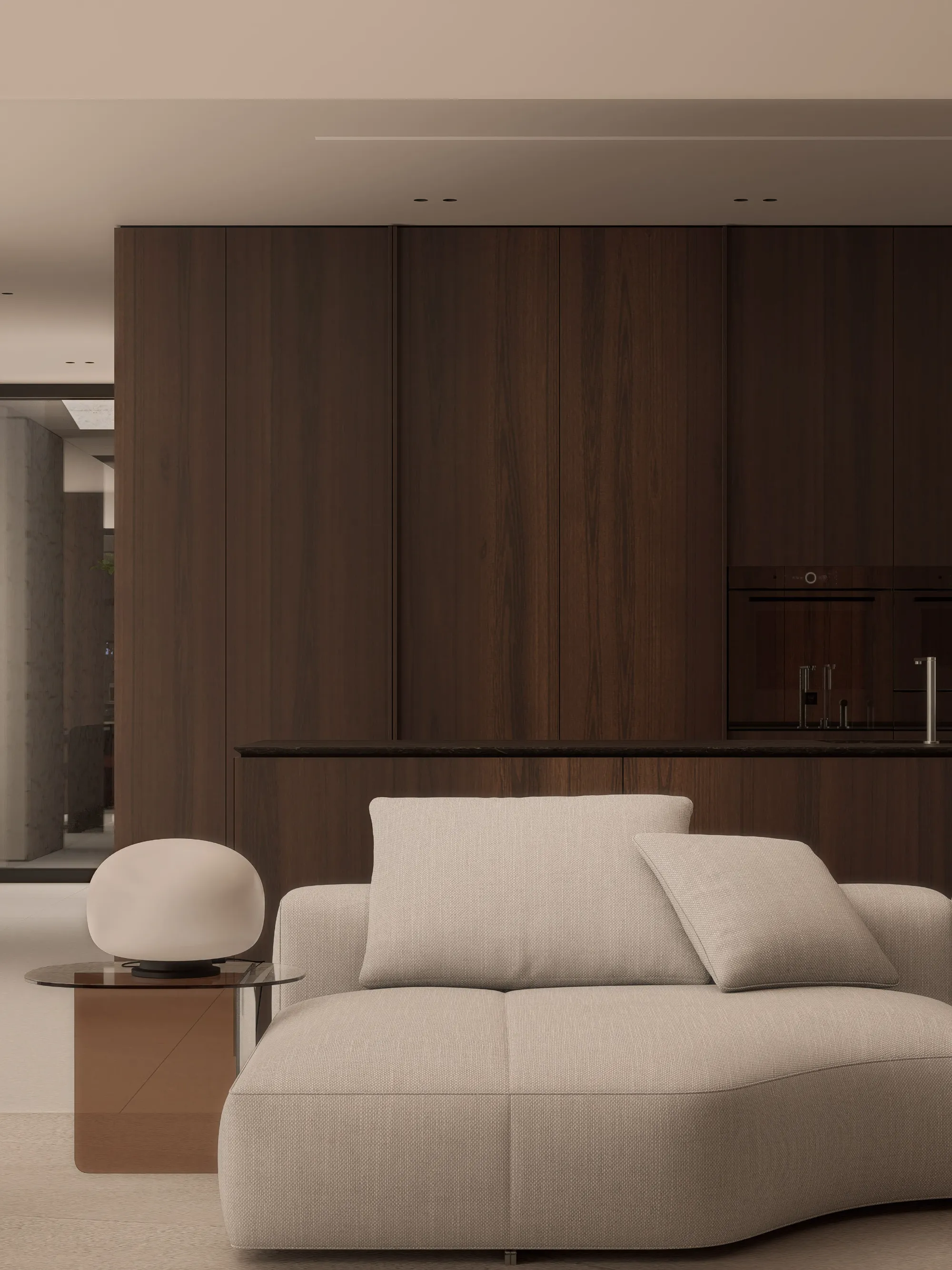 Inside — це дім, який не демонструє зайвого чужим очам. Стриманий і мінімалістичний, з чіткими лініями та монолітною геометрією. Водночас відкритий і затишний завдяки теплим відтінкам та природним фактурам. Назва будинку втілює його філософію: справжня краса та гармонія розкривається всередині, у кожній деталі, кожному елементі інтер’єру.