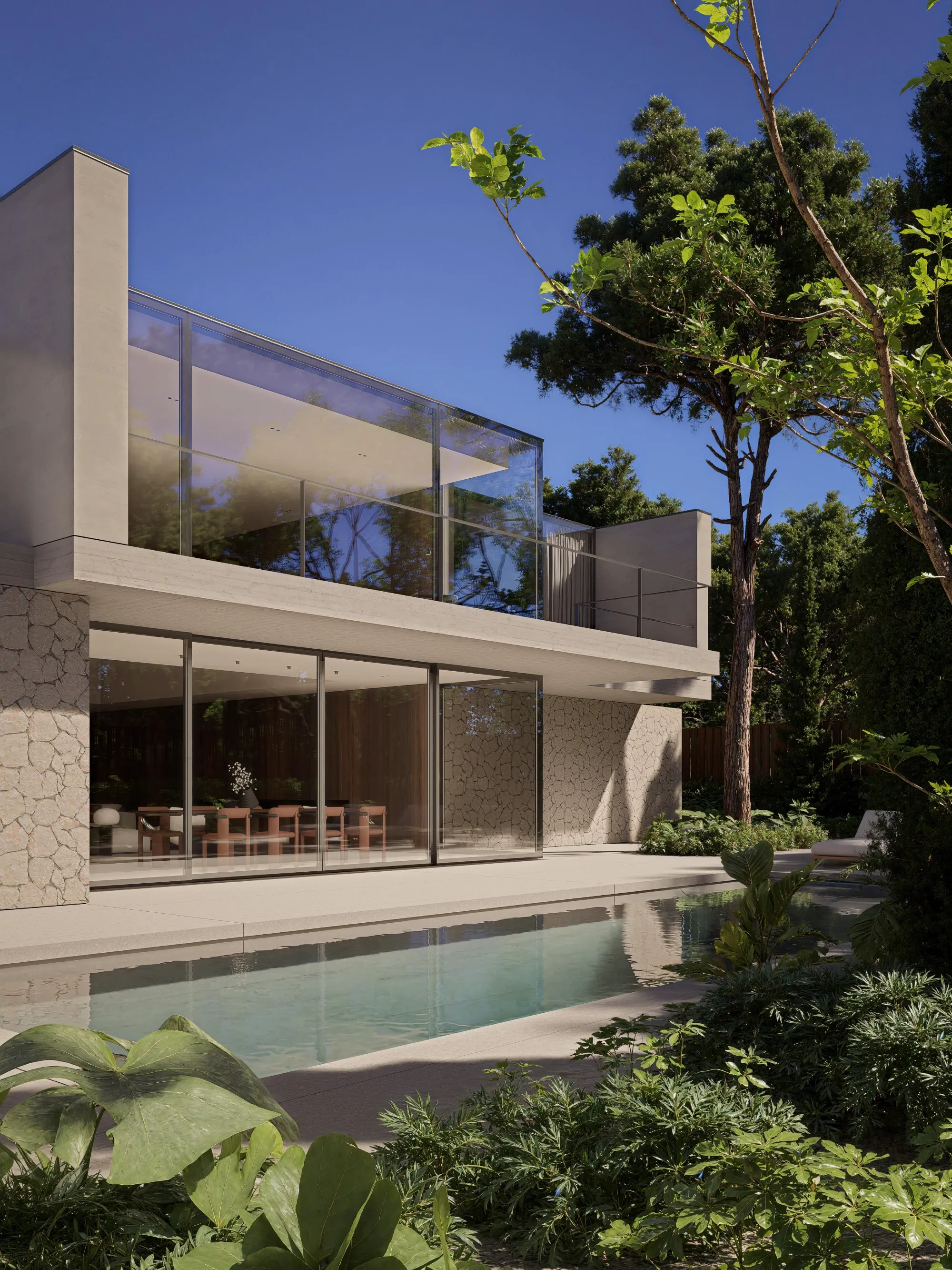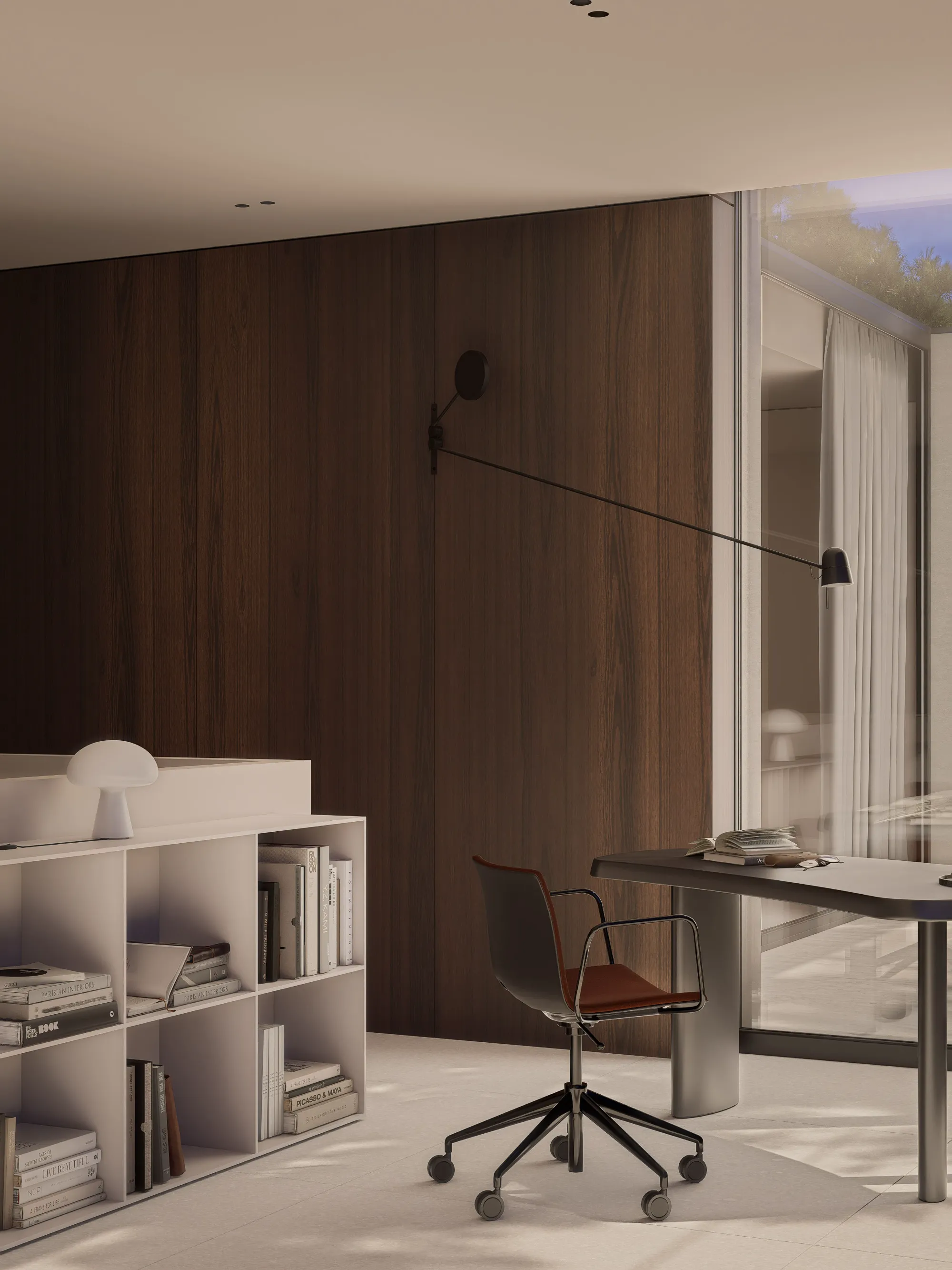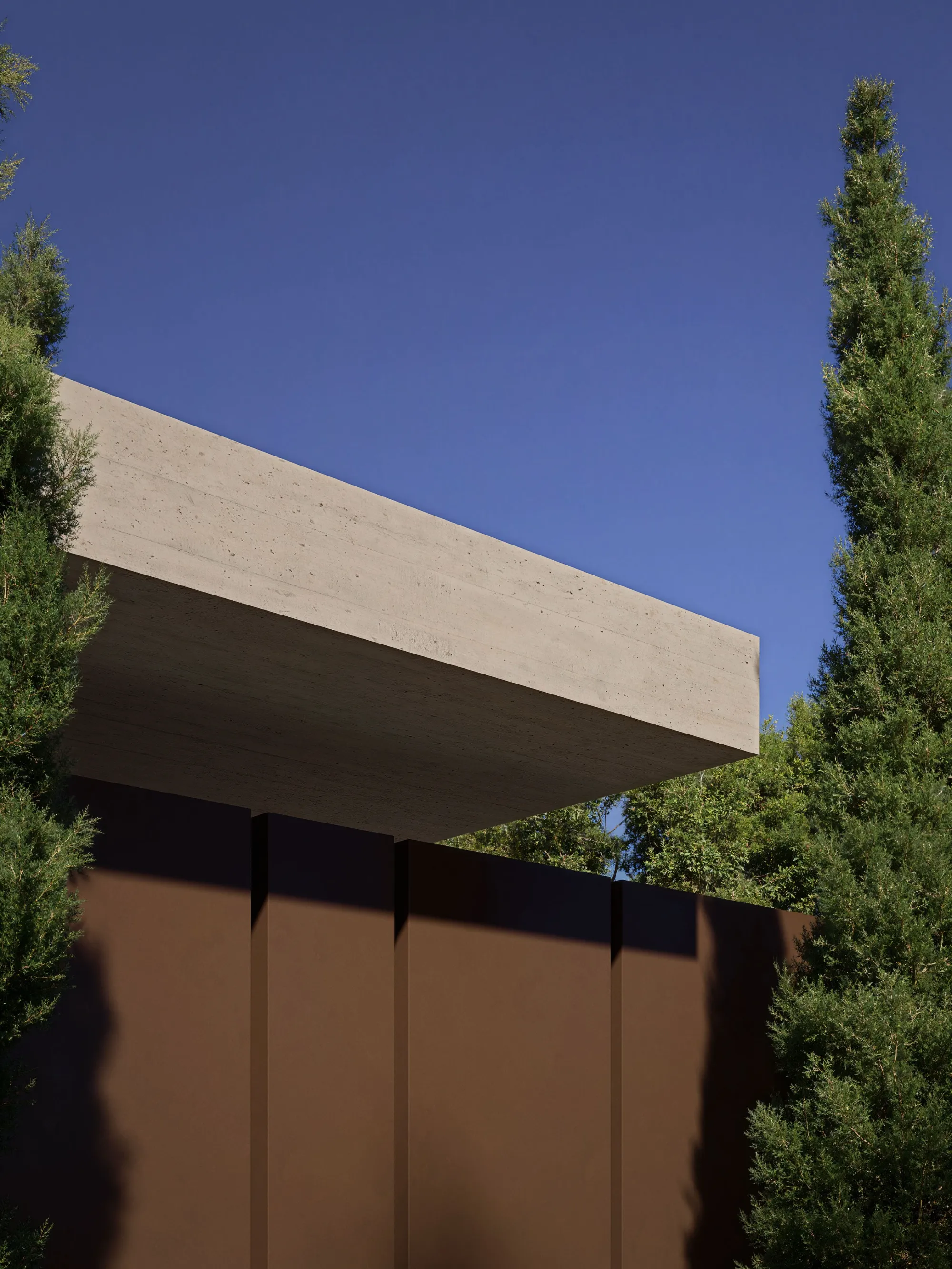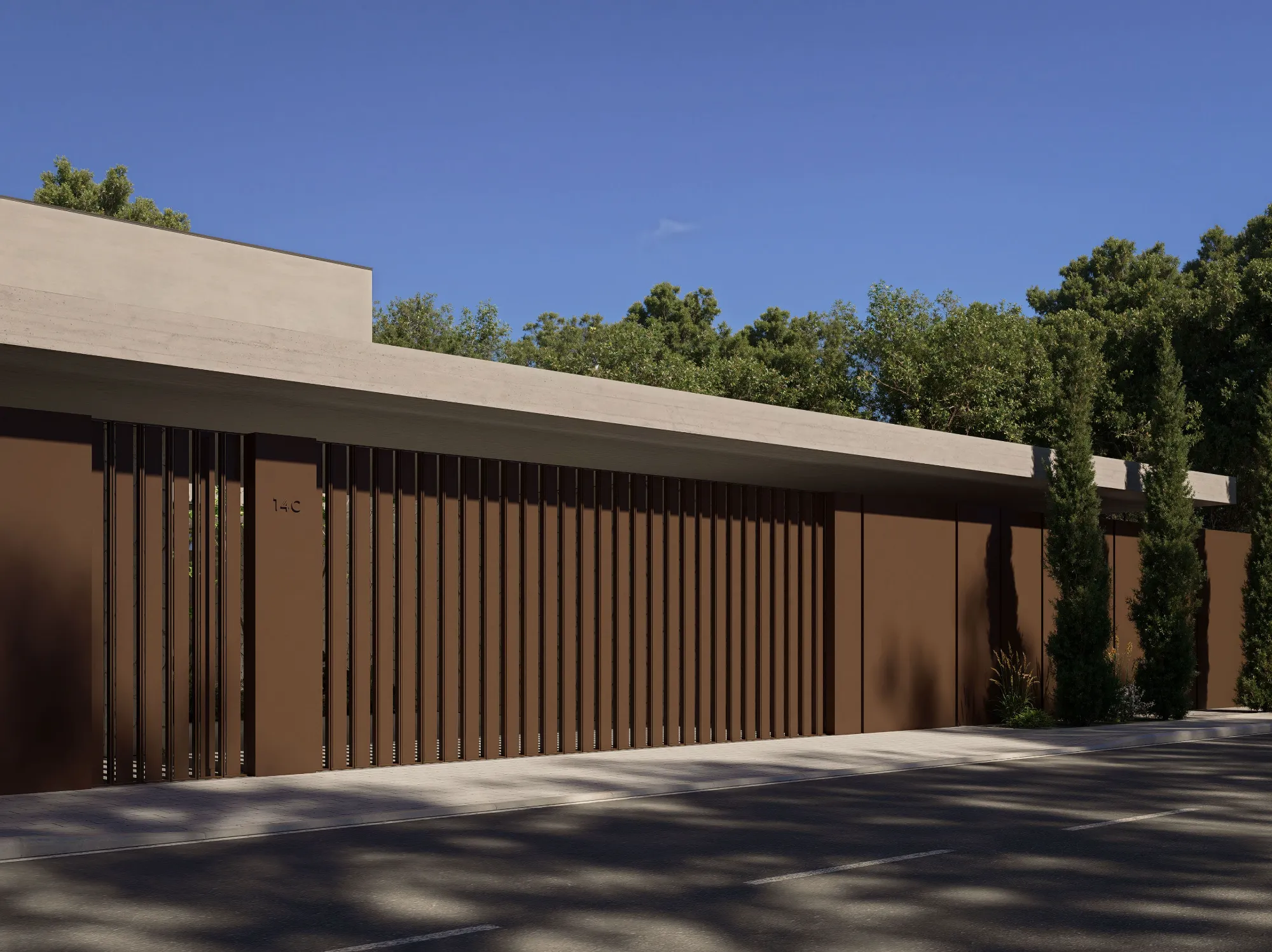 Ідея проєкту будинку Inside, створеного архітектурною майстернею BEZMIRNO, полягала у плануванні простору, де на відносно компактній площі ділянки нам вдалося розмістити всі функціональні зони та будівлю, які необхідні для життя великої родини. Лаконічний фасад із парканом з кортену, поєднання натурального каменю з теплим деревом та великі панорамні вікна формують сучасну архітектуру, яка водночас проста і виразна, без зайвої демонстративності. Завдяки цьому двоповерховий будинок залишається не лише функціональним, а й гармонійно інтегрованим у навколишнє середовище сонячної Іспанії.
