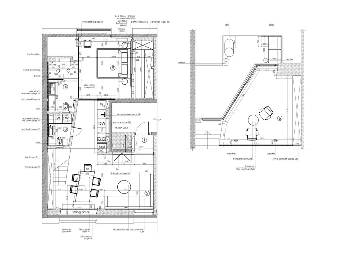 Квартира має два рівні та чітке зонування, яке відділяє приватну частину від громадської. На першому поверсі розташовані простора кухня-вітальня, санвузол та спальня з прихованою системою зберігання. Незвичним рішенням стала скляна стіна між спальнею та душем, яка створює додатковий акцент та підкреслює індивідуальність простору.