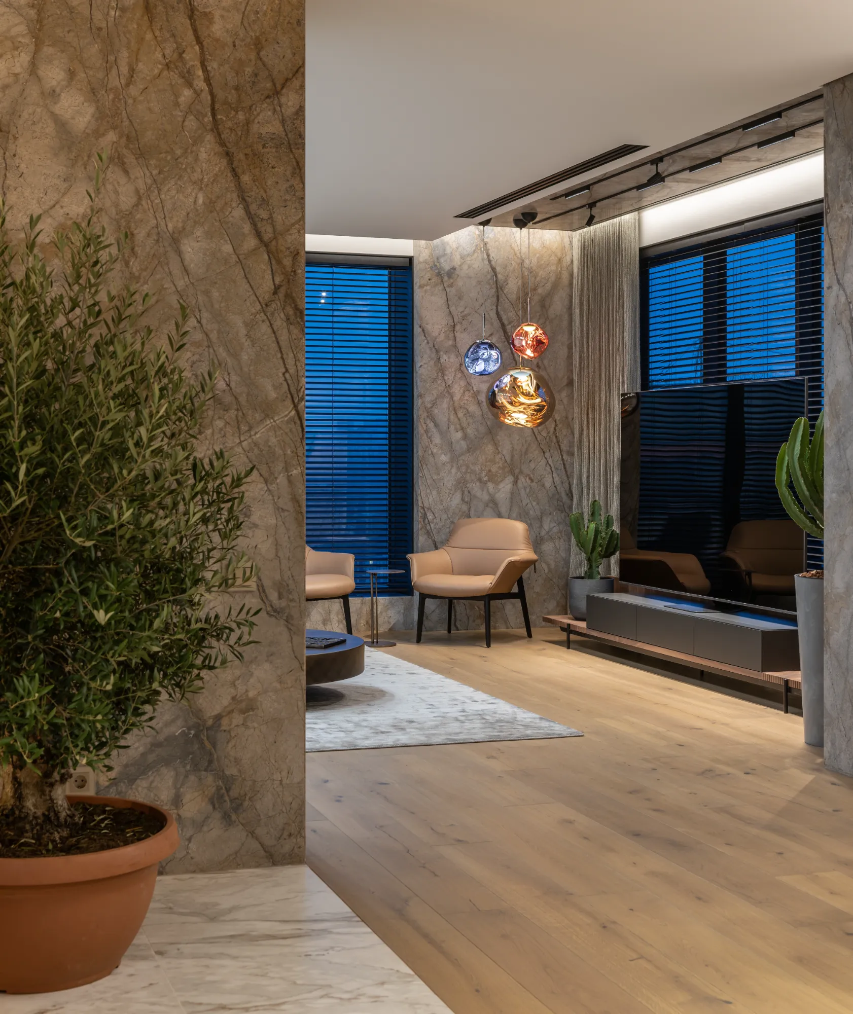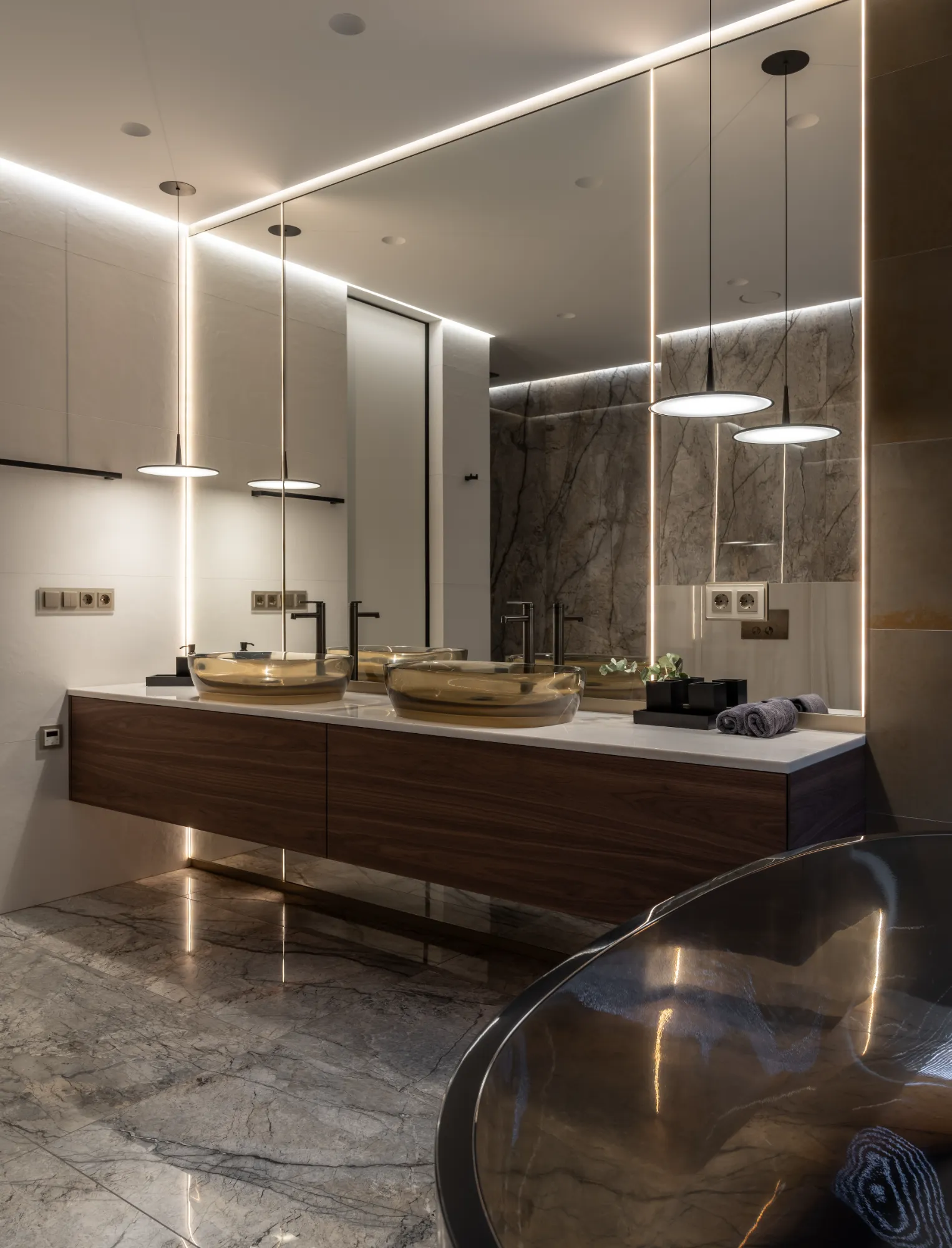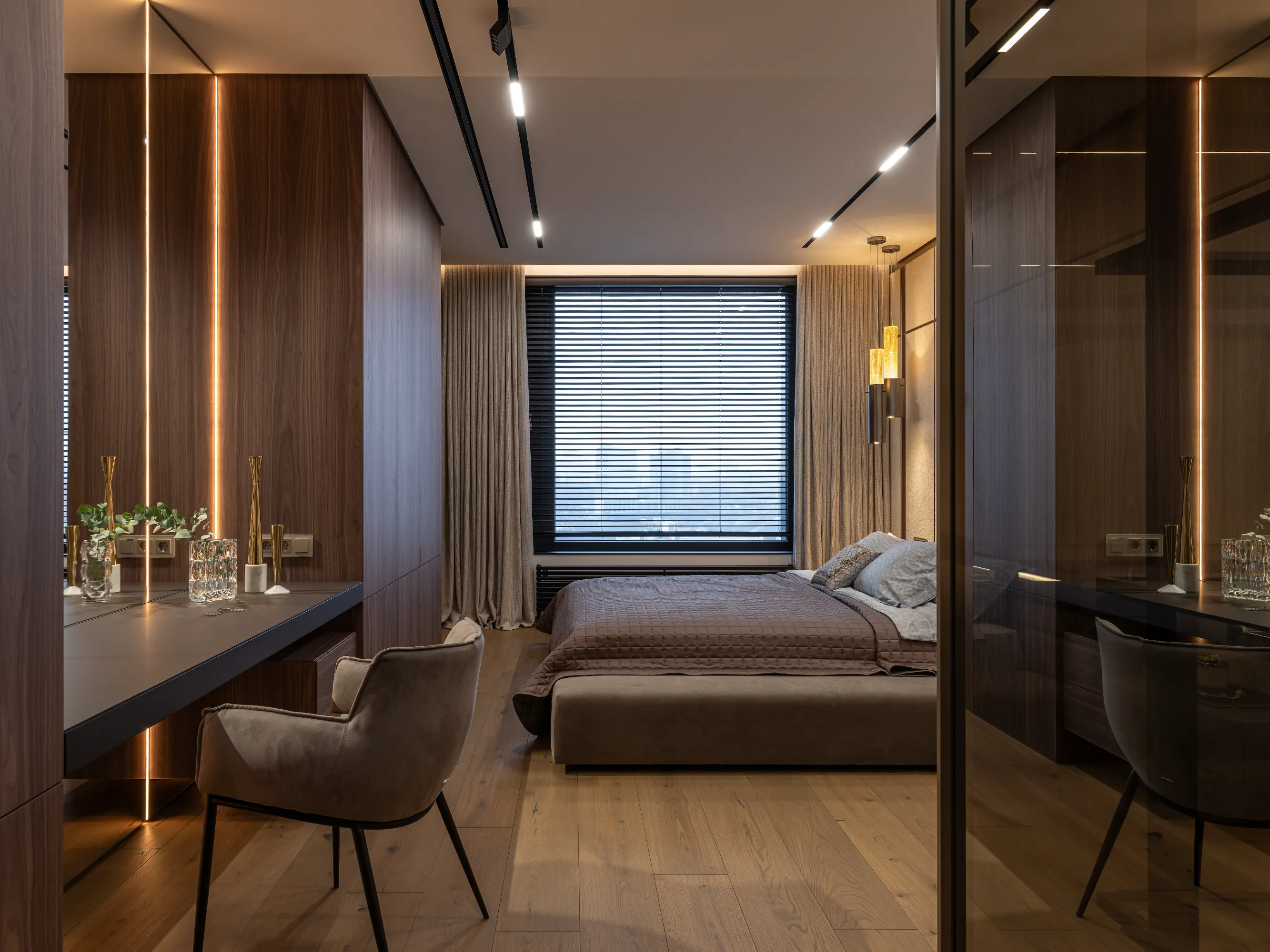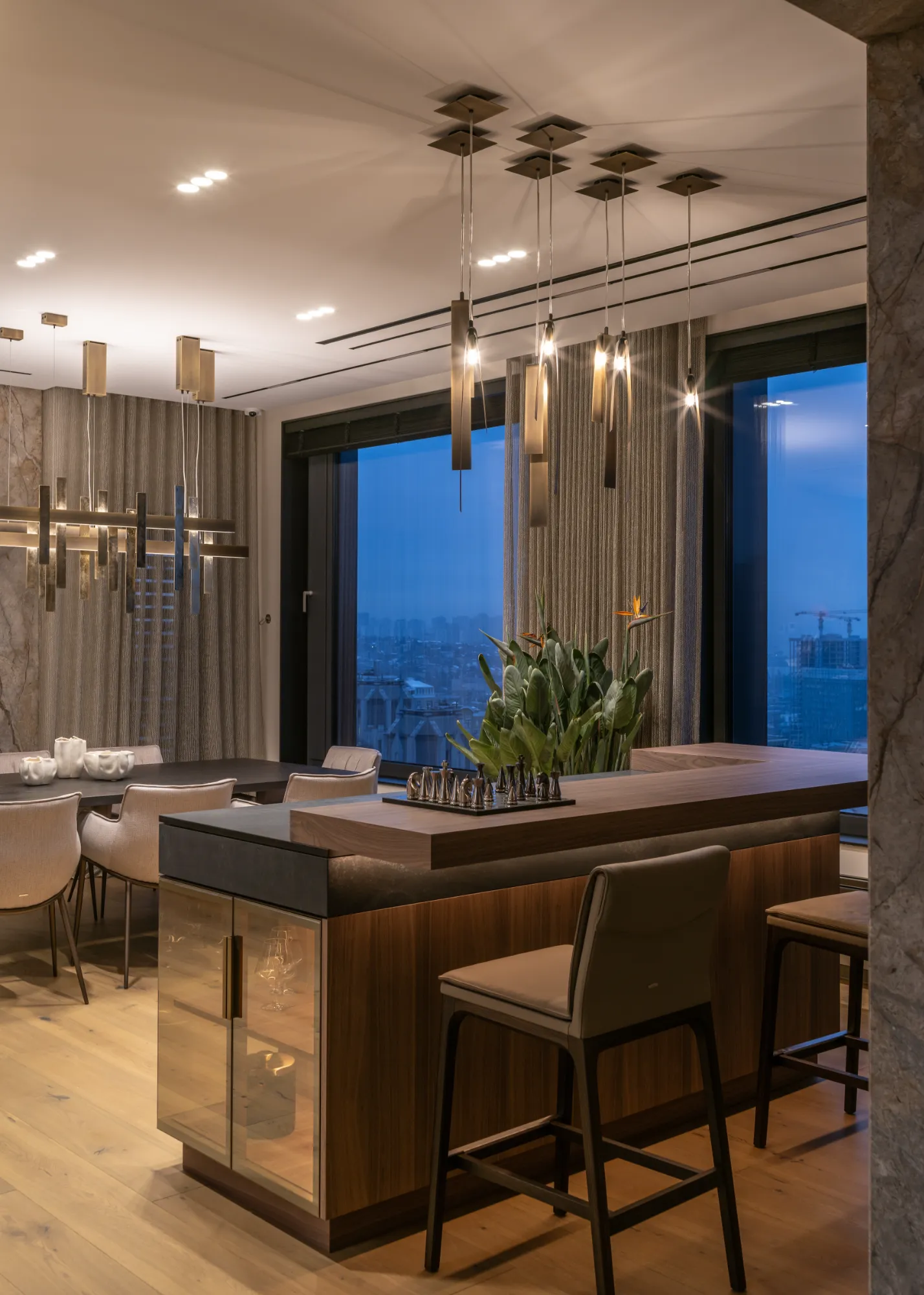 Окремої уваги заслуговують світлові сценарії. Продумане освітлення від найкращих дизайнерських брендів забезпечує ідеальний баланс між природним та штучним світлом, підкреслюючи глибину кольорової палітри та фактур матеріалів.