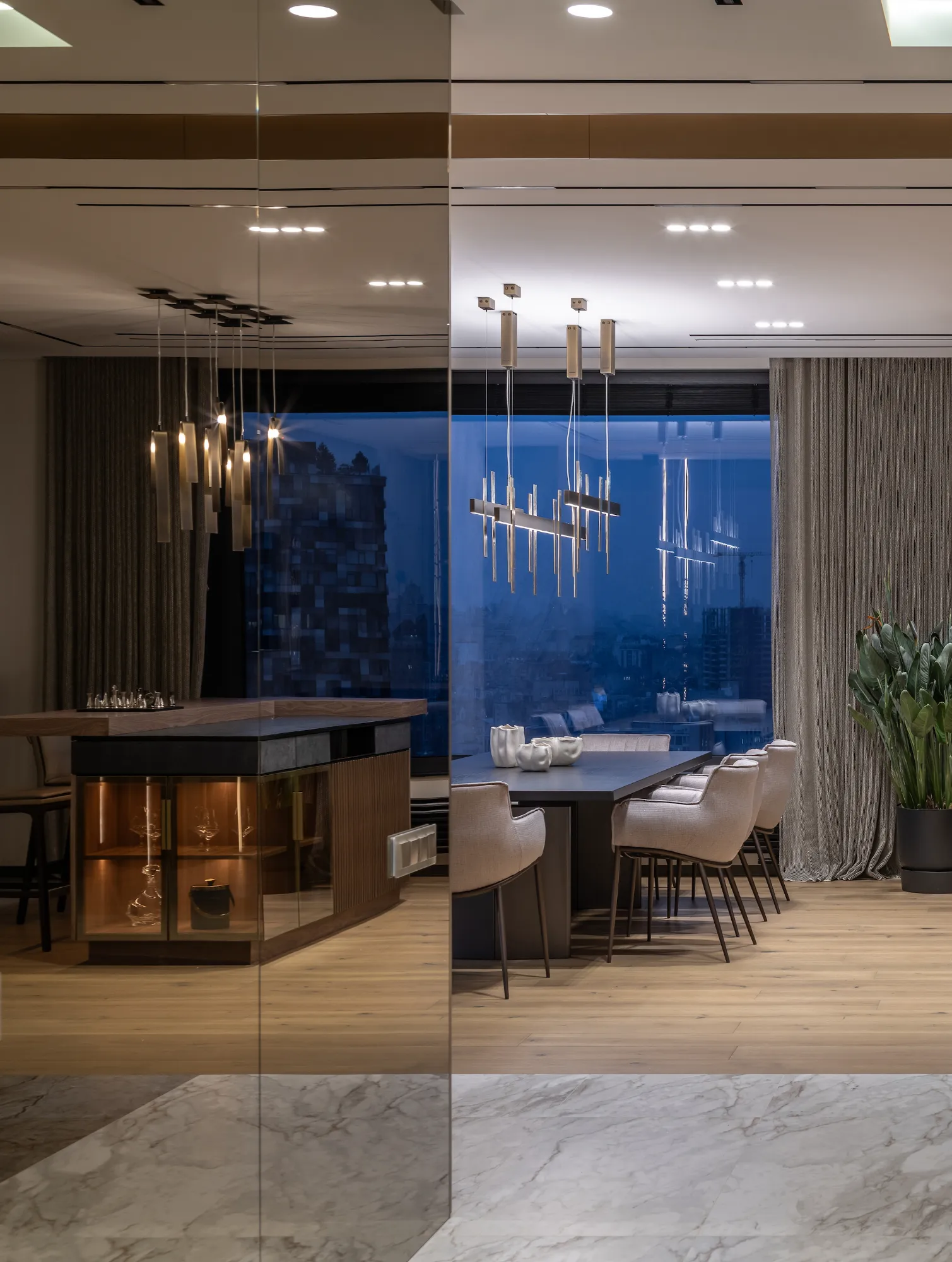 Загальна площа апартаментів – 285 м², і кожен метр наповнений особливим змістом. Унікальна концепція інтер’єру створює гармонійний баланс між сучасним мінімалізмом та ексклюзивною розкішшю. Головна ідея проєкту – індивідуальність у кожній деталі, що відображає смак і стиль власника.