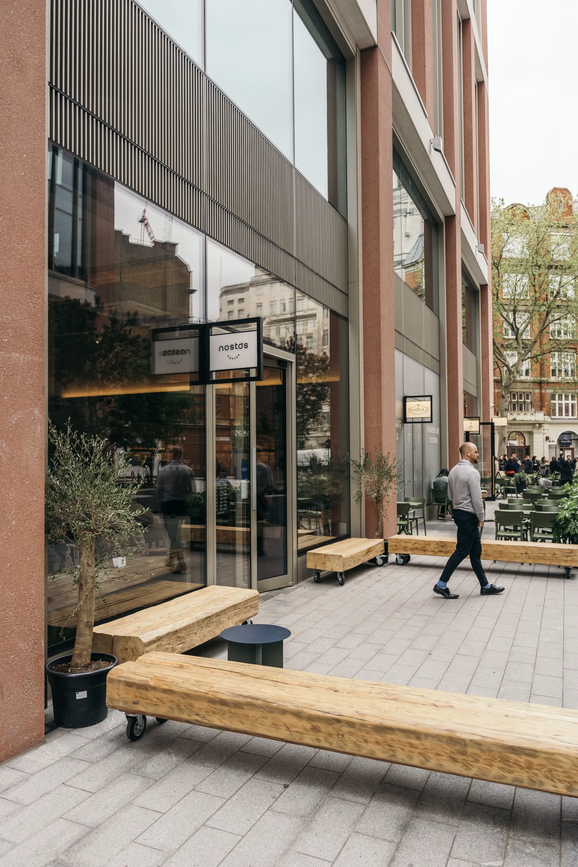 Nostos coffee shop - наш улюблений проєкт у самому серці Лондона, Вестмінстер.Тут усе запроєктовано довкола ідеї безбар’єрного спілкування між гостями та командою професійних барист, у затишному й безпечному просторі, де головним героєм залишається кава.ІДЕЯСвітле дуже високе приміщення витягнутої форми - таким було вихідне завдання. Ексклюзивно нашою ідеєю стало рішення зробити два бари: один — класичний кавовий, другий — для експериментальних методів приготування. Що створило дуже інтуїтивний рух закладом. Бари розташовані паралельно один до одного, залишаючи широкий прохід між собою. У центрі закладу - великий комунальний стіл і зручні місця для сидіння довкола.ДИЗАЙНЯк завжди, для нас надважливо поєднувати архітектуру й інтер’єр. Тобто будь-який дизайн повинен бути доречним у середовищі. Заклад знаходиться на першому поверсі новітнього гігантського офісного центру щойно зданого в експлуатацію. Внутрішні стіни з газоблоку ми вирішили не ховати — навпаки, залишили їх відкритими. Так само й зі стелею - залишилась такою, якою вона була, без жодної юутафорії. На інших стінах використали мозаїчну штукатурку, яка давно вийшла з моди, але тут виглядає дуже сучасно й свіжо.Ще одна особливість інтер’єру — поєднання контрастних фактур. Фактурні брутальні стіни стали фоном для нержавійки чи полірованої латуні, вінтажні стільці поряд із білим «зефірним» столом, хаотична відкрита стеля підкреслює акуратні світильники, а столітні дерев’яні балки (на стільницях столів) мають ніжні металеві ніжки. Бар оздоблений марокканською плиткою природньої форми, а на ньому — класне сучасне кавове обладнання.Все про контраст, комфорт, відкритість спідкування і темп надвеликого міста <3