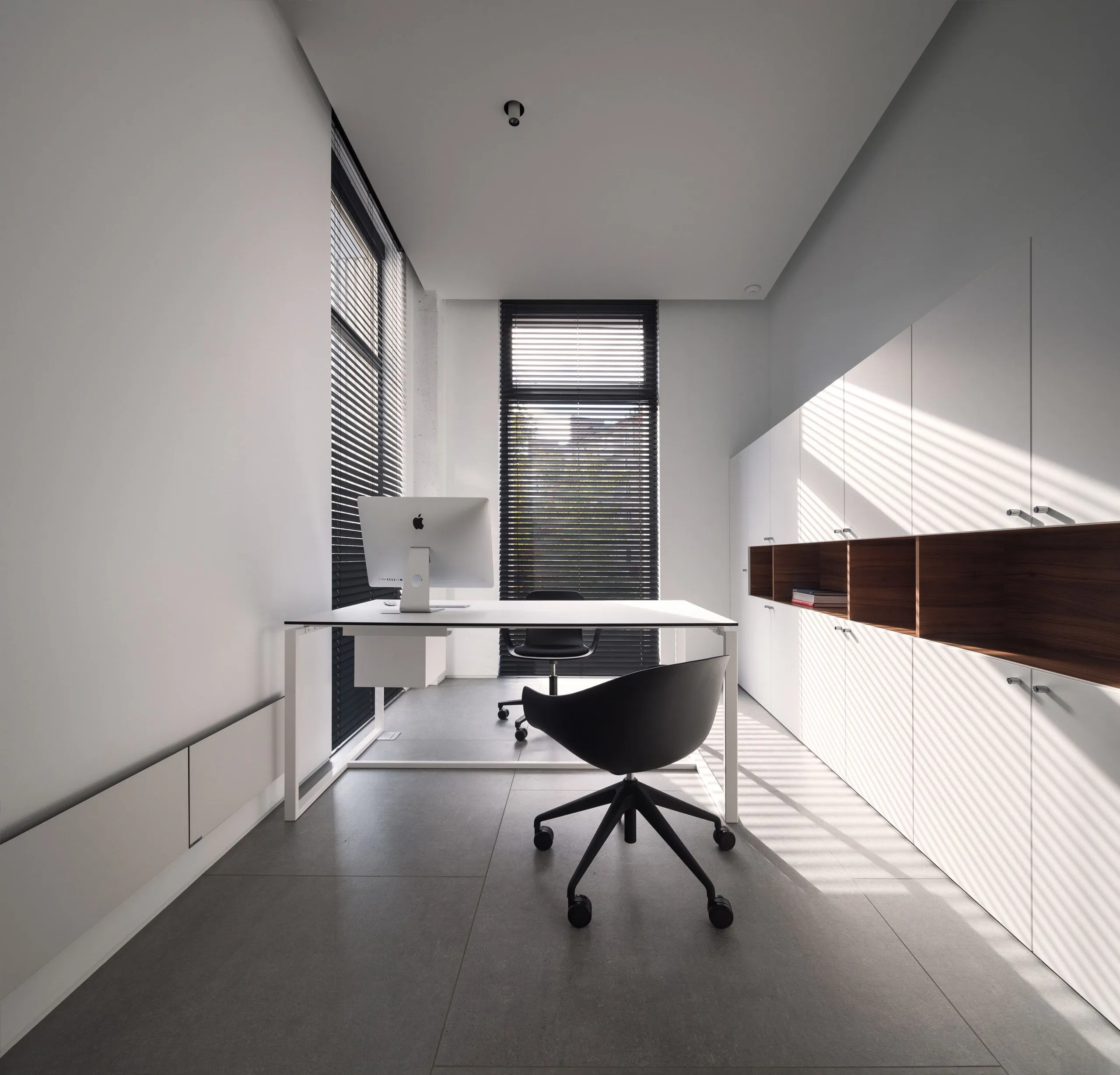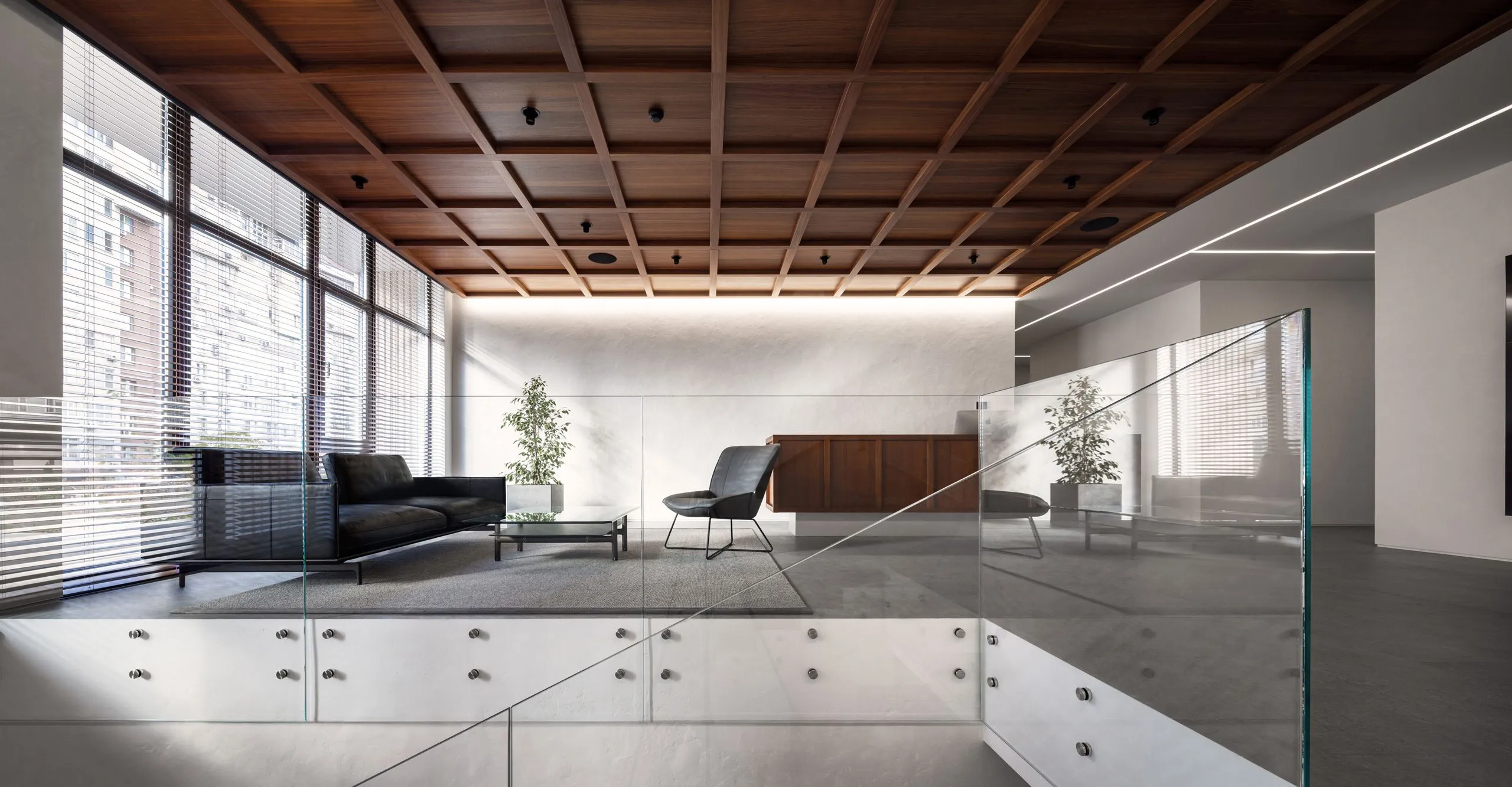 Головним завданням було створення мінімалістичного функціонального простору без зайвих прикрас та деталей. Суворий та підкреслено діловий стиль офісу заявляє про себе з першого погляду на стійку рецепції.