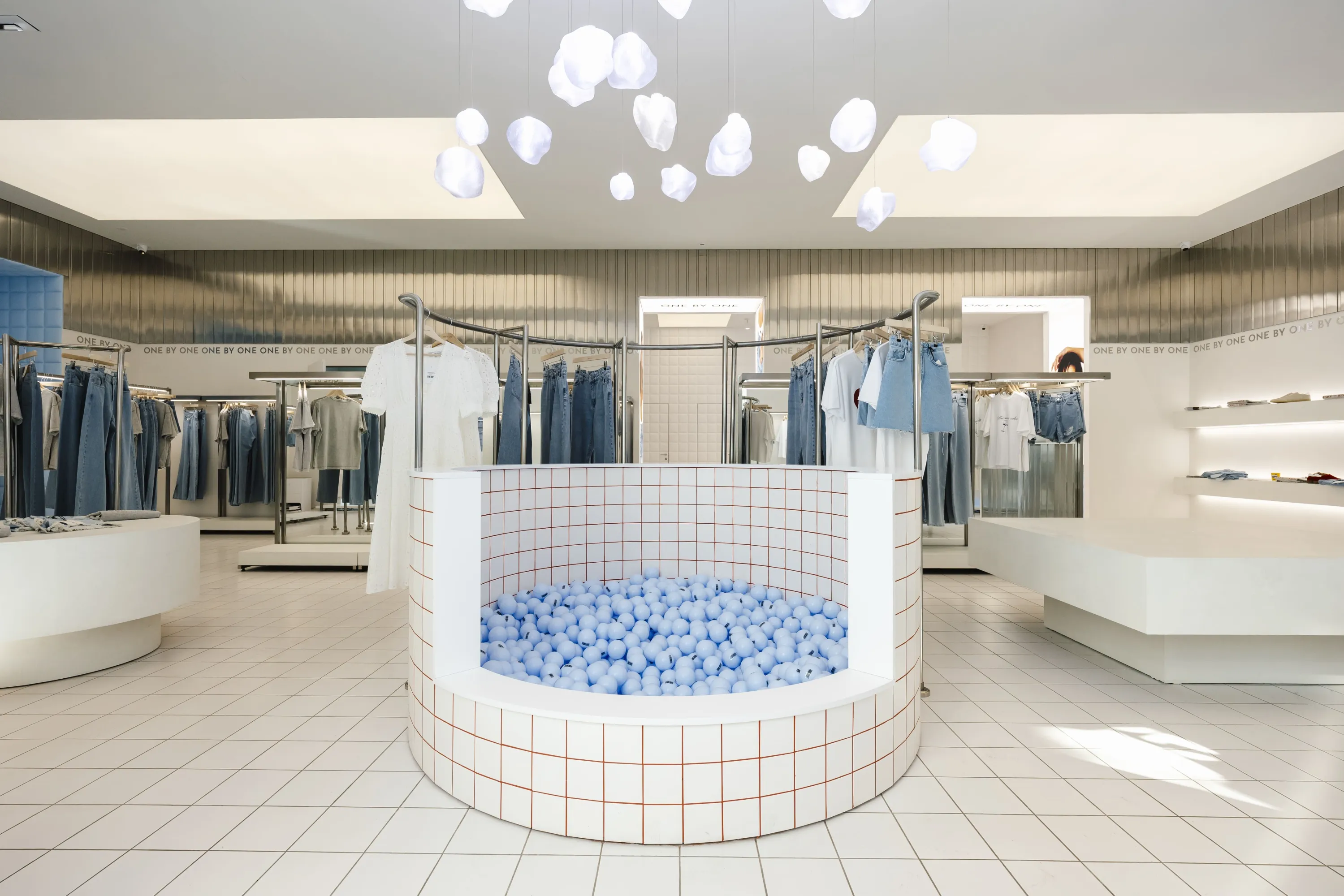 One by One — це провідний масмаркет-бренд модного одягу, який відомий своїми сучасними та доступними дизайнами, що допомагають людям виражати свою індивідуальність. Колекції бренду втілюють впевненість та енергію молодості, і це ж відображається в дизайні нового шоуруму.