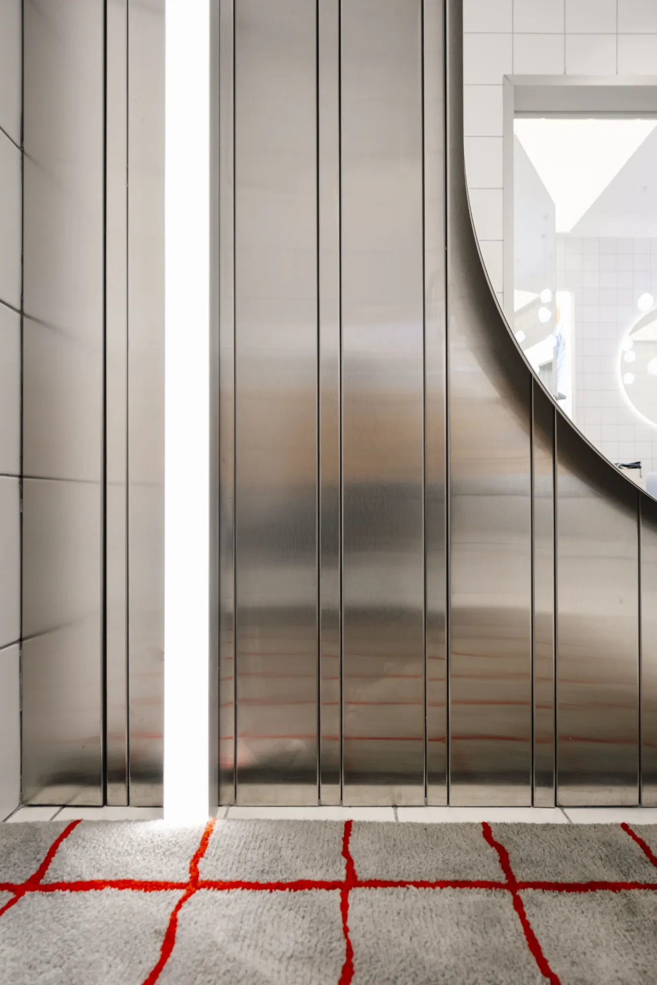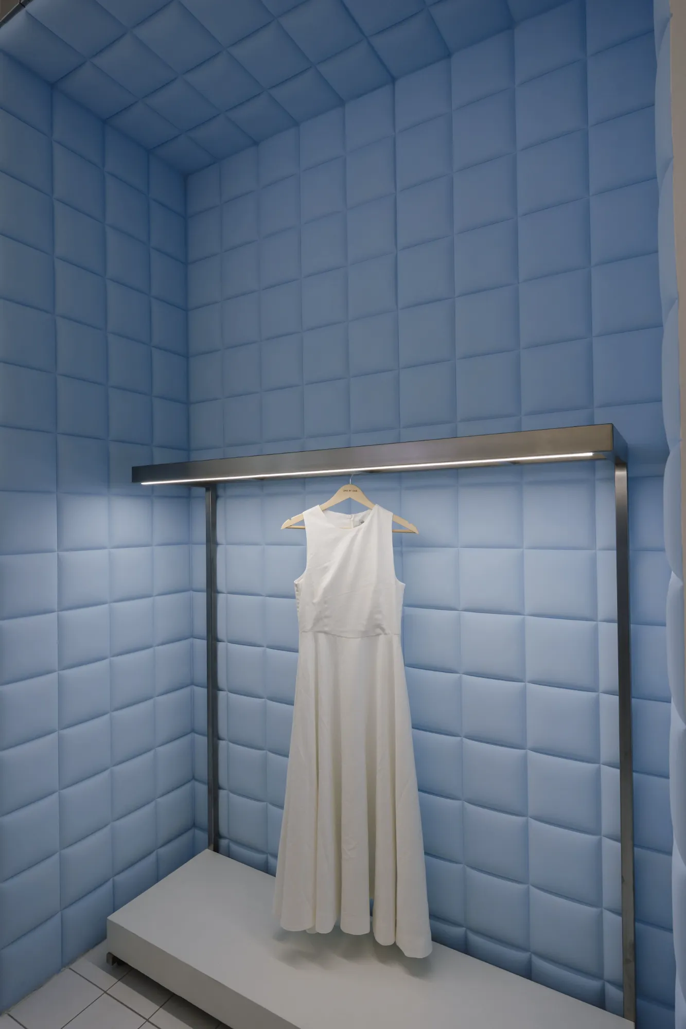 Кожна примірочна була ретельно спроєктована для створення стильного, сучасного вигляду з білими плитками, круглими металевими стільцями та ідеально розташованими дзеркалами. Ці приміщення розроблені для створення «інстаграмних» моментів, що закликає клієнтів ділитися своїми враженнями онлайн і тим самим розширювати аудиторію шоуруму.