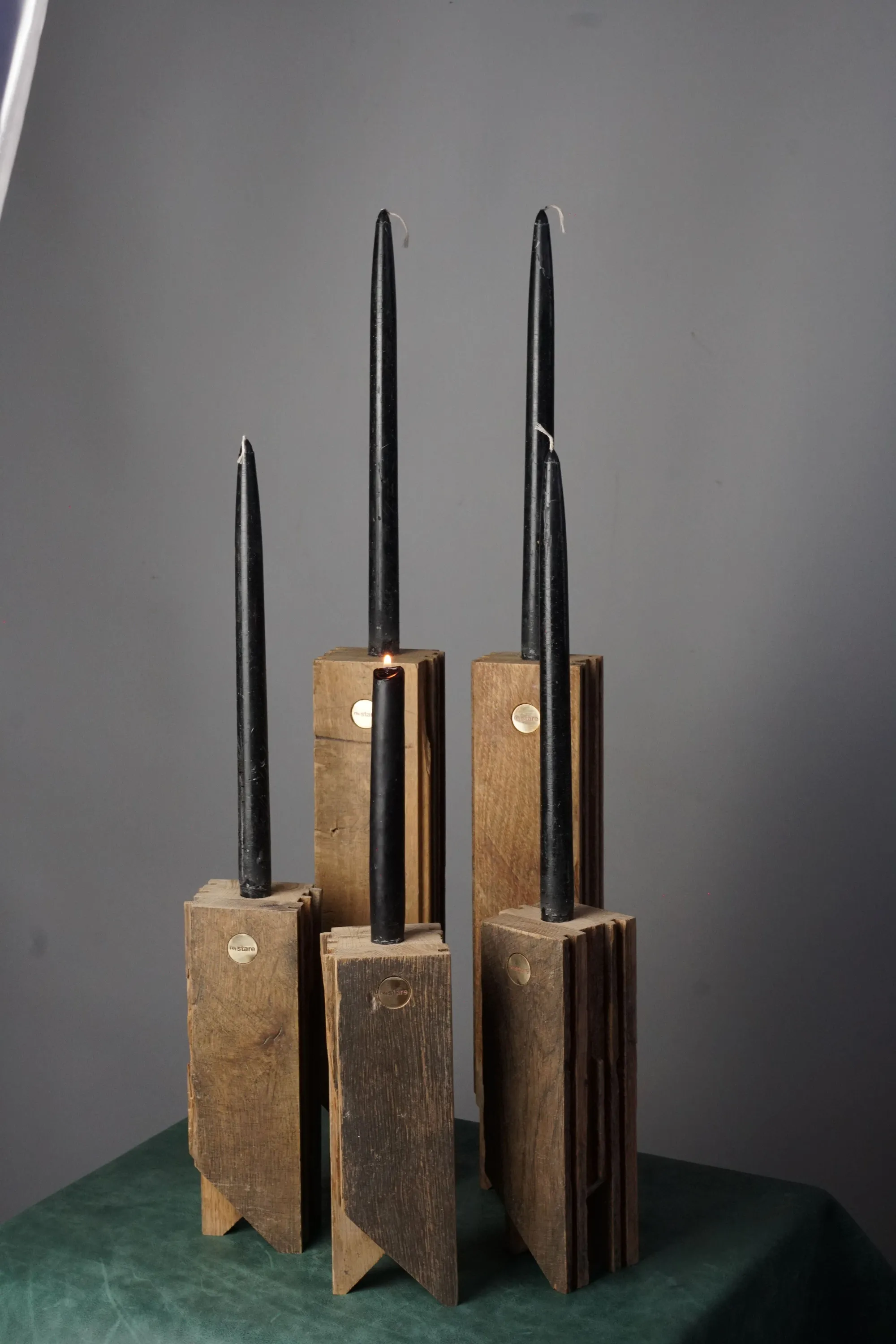 Саме тоді Христина Бадзян, ідейниця бренду, почала крутити паркетину в руках, складати одну до одної - і з цього експерименту народився предмет, у якому незрозуміла сировина перетворюється на маленький шедевр, який може мати кожен - підсвічник. З трьох паркетин. На трьох ніжках. Обпалений, або збережений у своїй автентичній текстурі. Кожен різної форми, розміру й фактури. Кожен - унікальний.