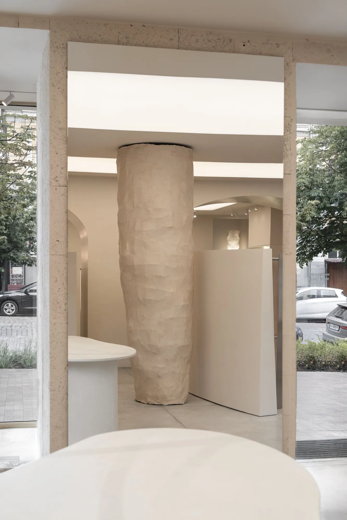 Центральним елементом шоуруму стала скульптура художниці Тамари Турлюн з паперу та металевого дроту, що буквально вросла в простір. У своїй роботі Тамара досліджує концепцію турботи через особисту історію, спостерігаючи за жінками своєї родини, їхньою силою та любов'ю. Робота була створена спеціально для цього простору з урахуванням його кольору, форми, масштабу та сценаріїв руху, змінюючи сприйняття інтер'єру з декоративного на глибоко емоційний.