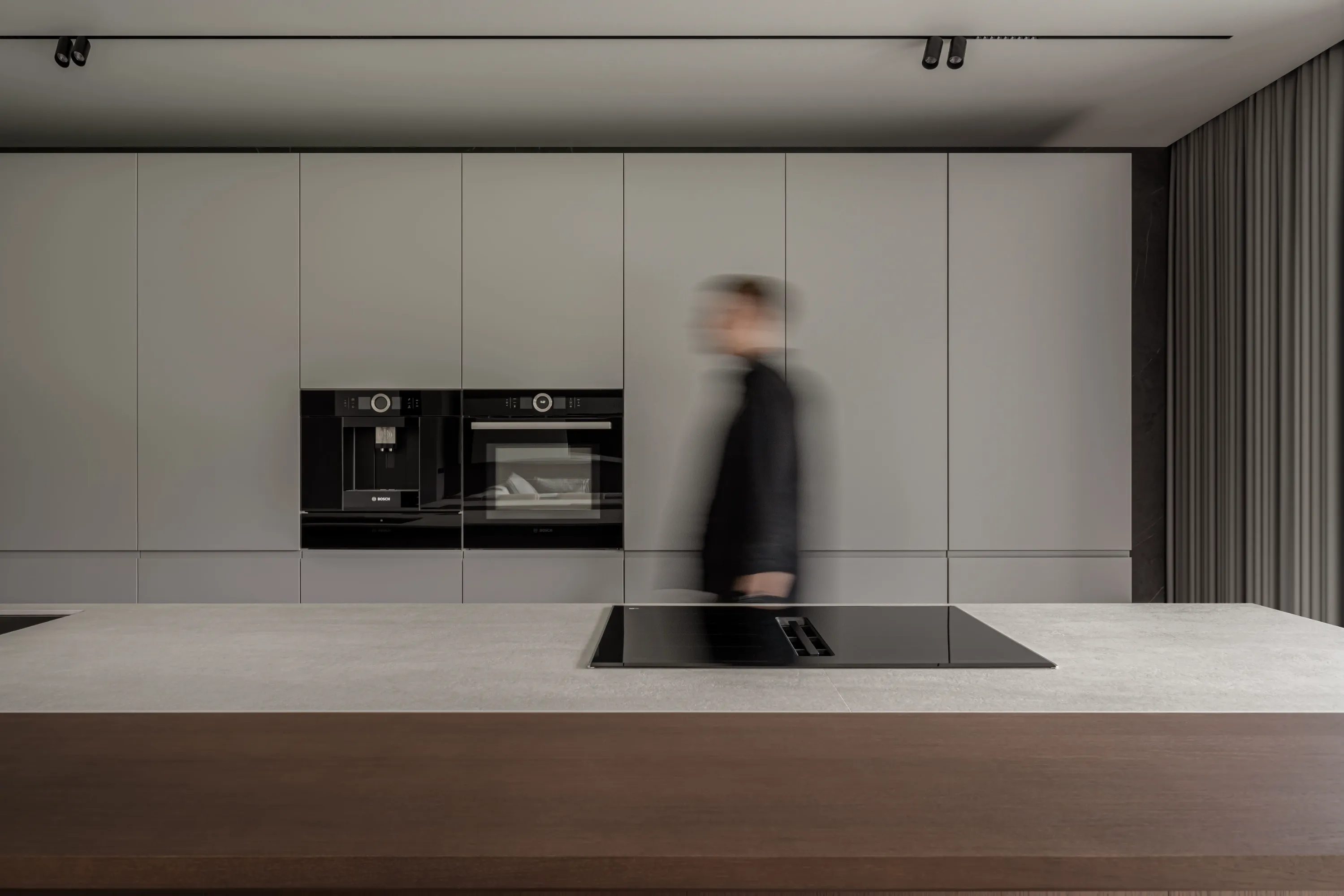 Не дивлячись на загальну стриману стилістику, кожна з кімнат має свій особливий настрій. Основна зона вітальні відкрита та простора, стримана та розвантажена від зайвих елементів. М’які меблі, зручні крісла та стильний камін створюють ідеальне місце для зустрічей з родиною та друзями, а також для відпочинку та розваг.
