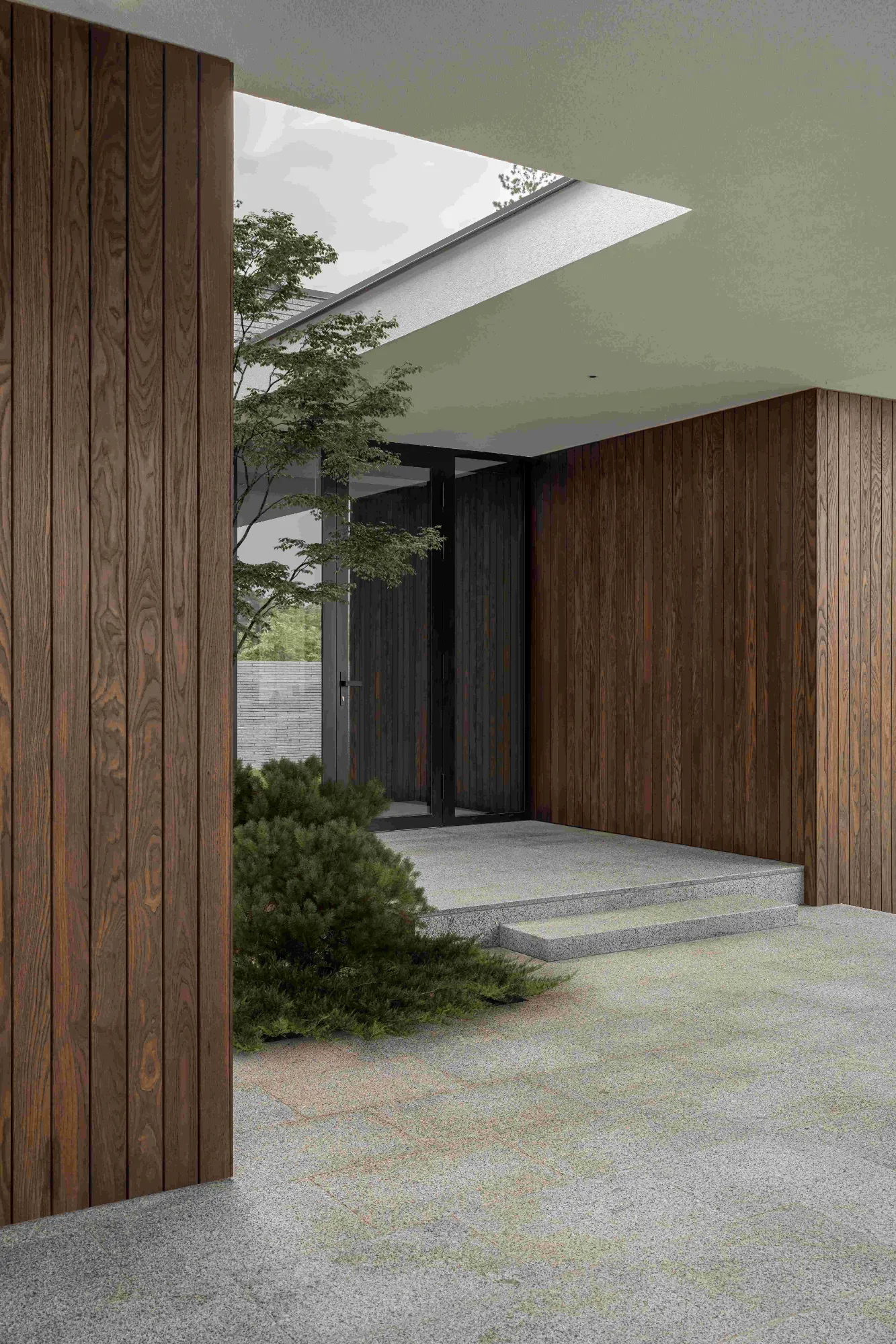 Весь проект будинку можна описати як невеличкий приватний комплекс, що складається з трьох будівель – головного будинку, гостьового та альтанки. При проектуванні, команда Bezmirno, зв’язала всі зони в спільну структуру, в єдиній стилістиці.