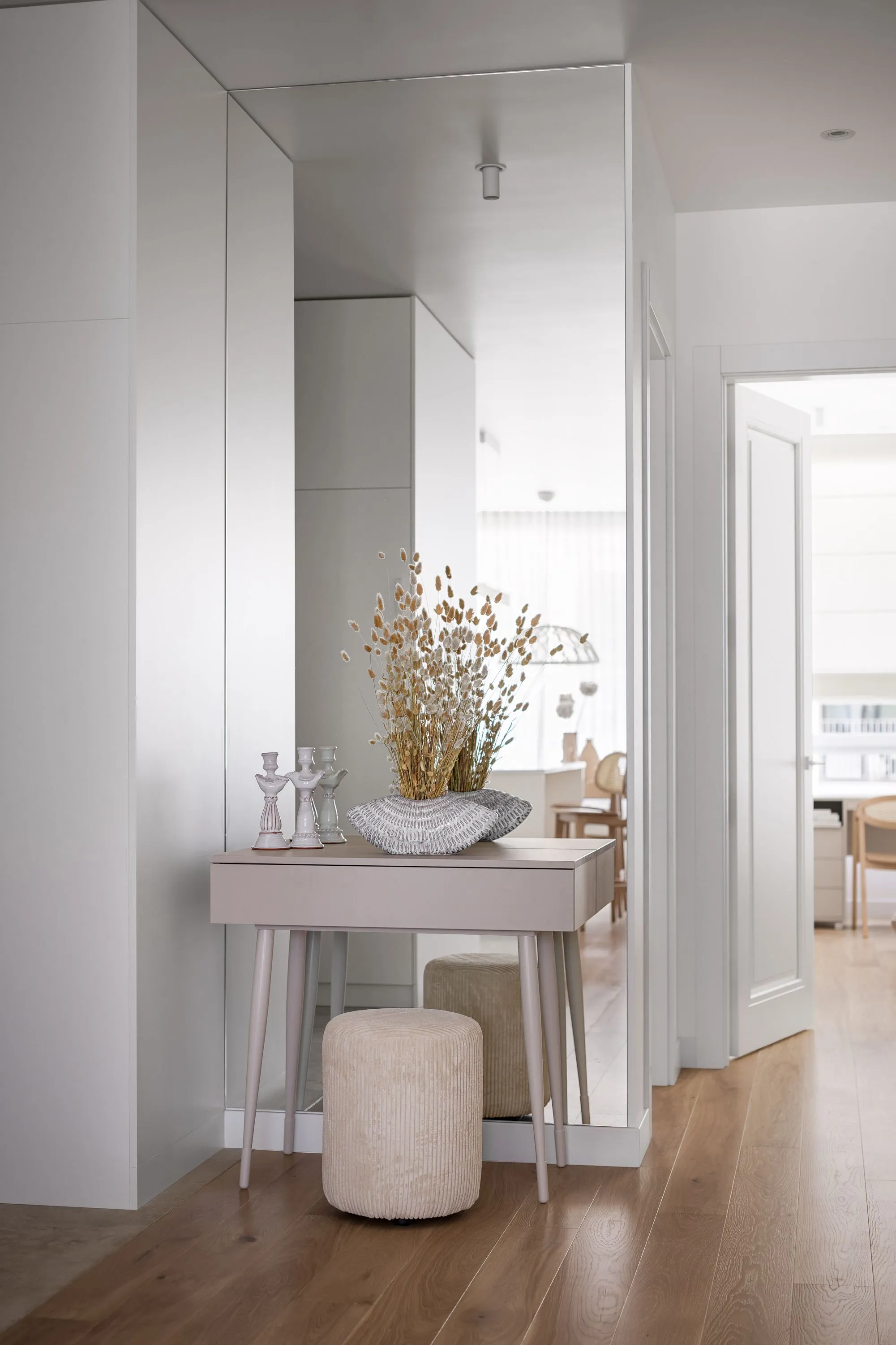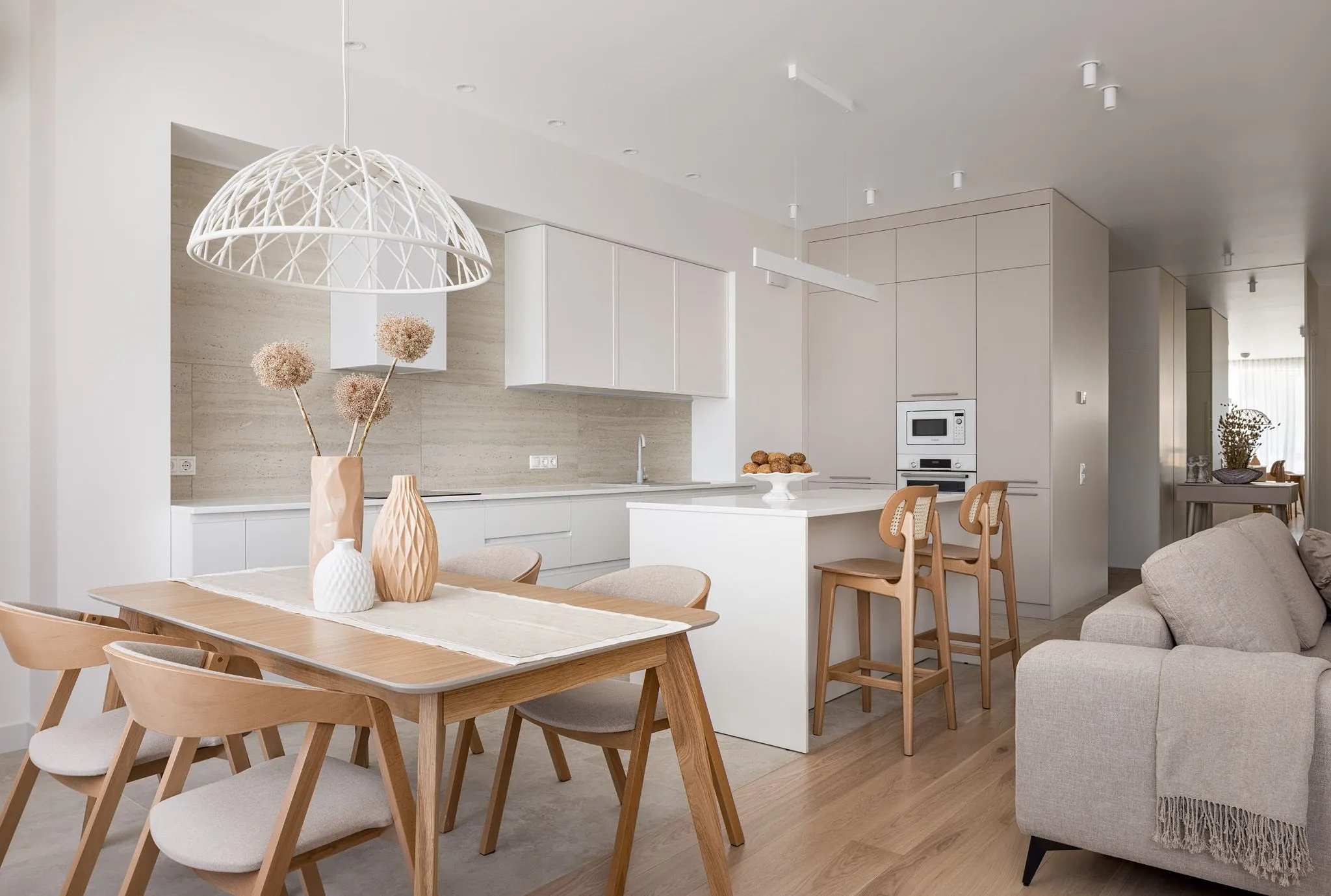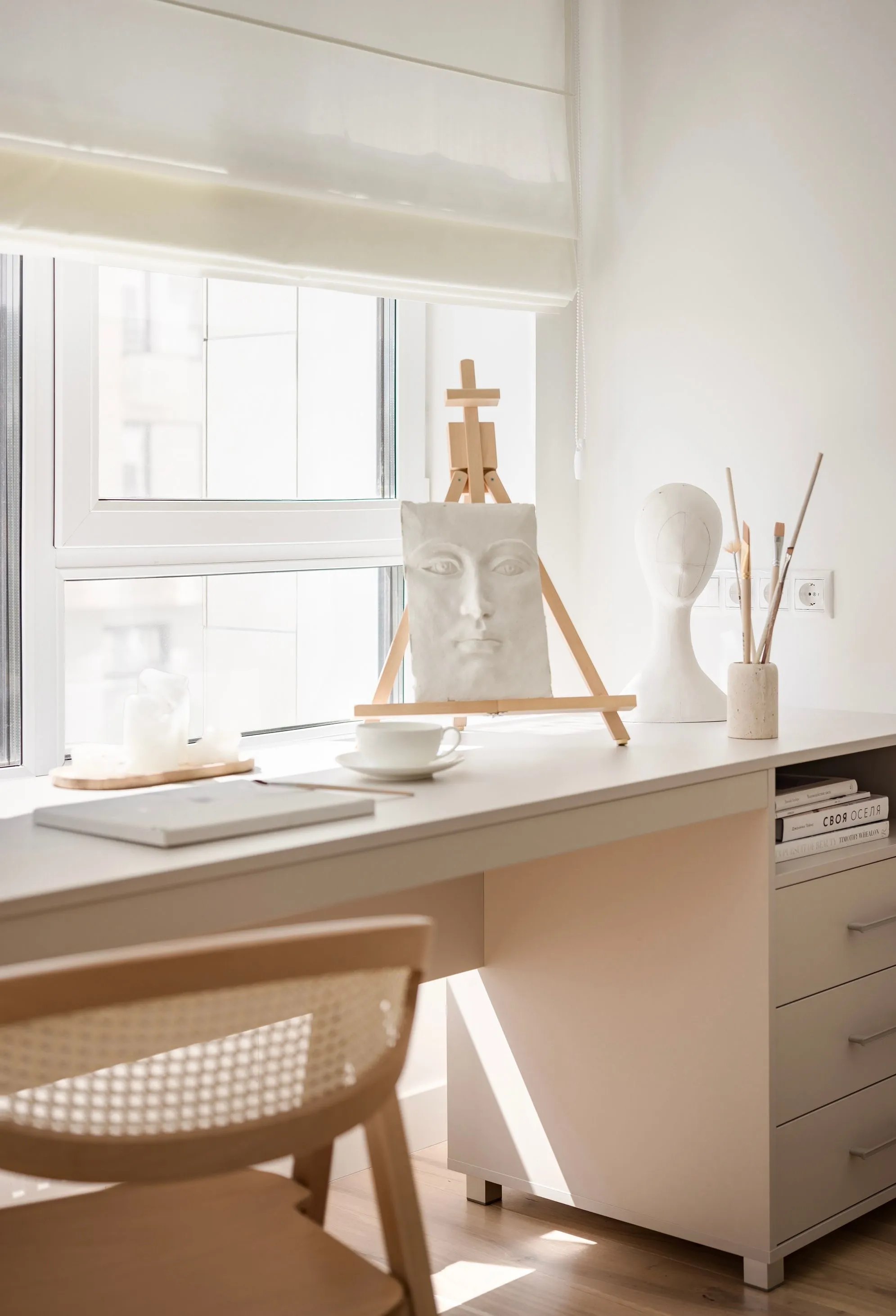 Світла природна палітра, грубі текстури й контрасти матеріалів — прохолода льону й кераміки поруч із теплом дерева, котону — створюють чуттєвий досвід, у якому кожен предмет викликає бажання доторкнутись.