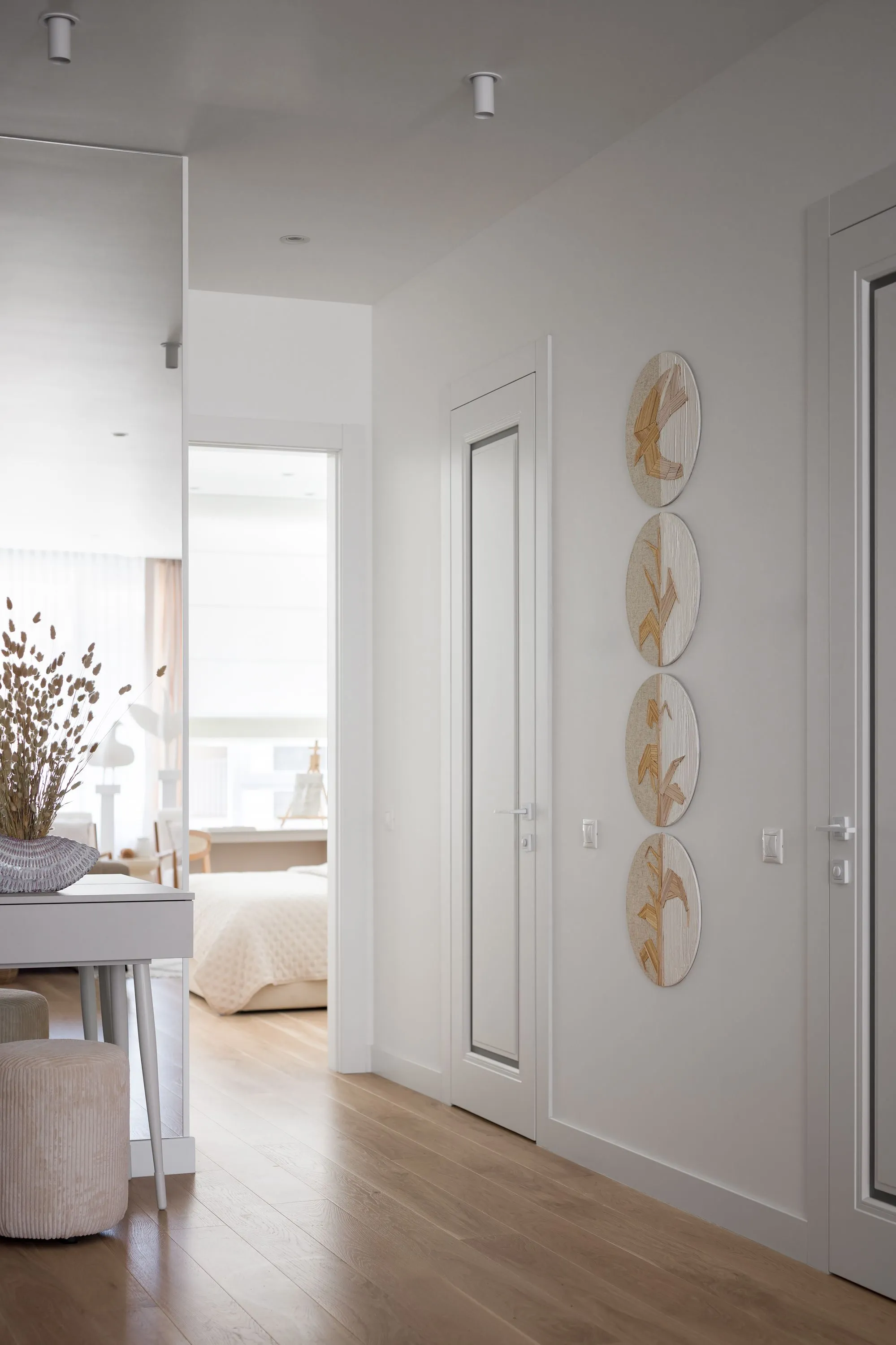 Усі декоративні елементи — панно, артоб’єкти, світильники, кераміка, текстиль — виконані автором проєкту в майстерні Kolyorovi.