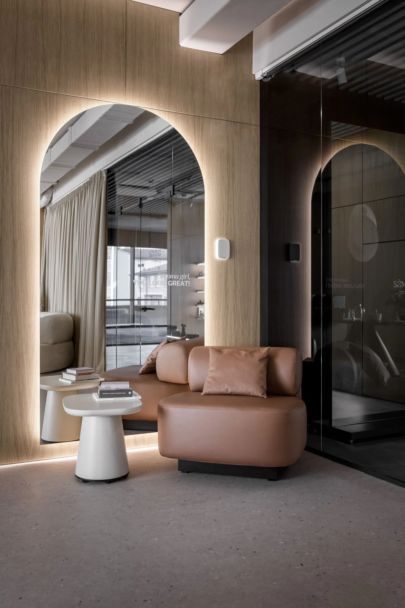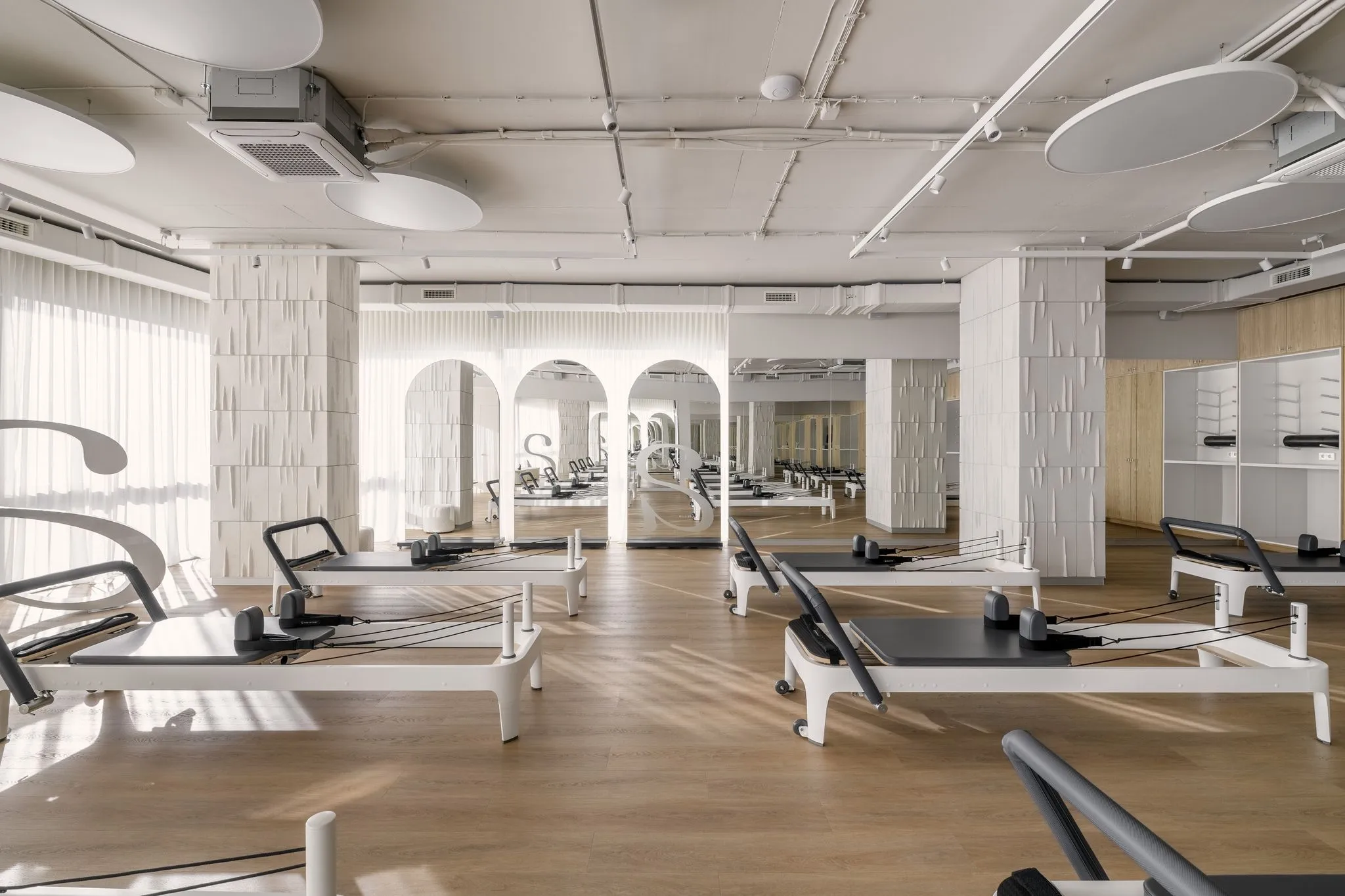 Приміщення студії продумані до дрібниць: зона для перевдягання обладнаназручними шафками та великим дзеркалом, а також душовою для комфортуклієнтів. Легкі штори в зоні залу створюють атмосферу приватності,забезпечуючи відчуття спокою і затишку. Це місце ідеально підходить длягармонійного тренування і відпочинку.