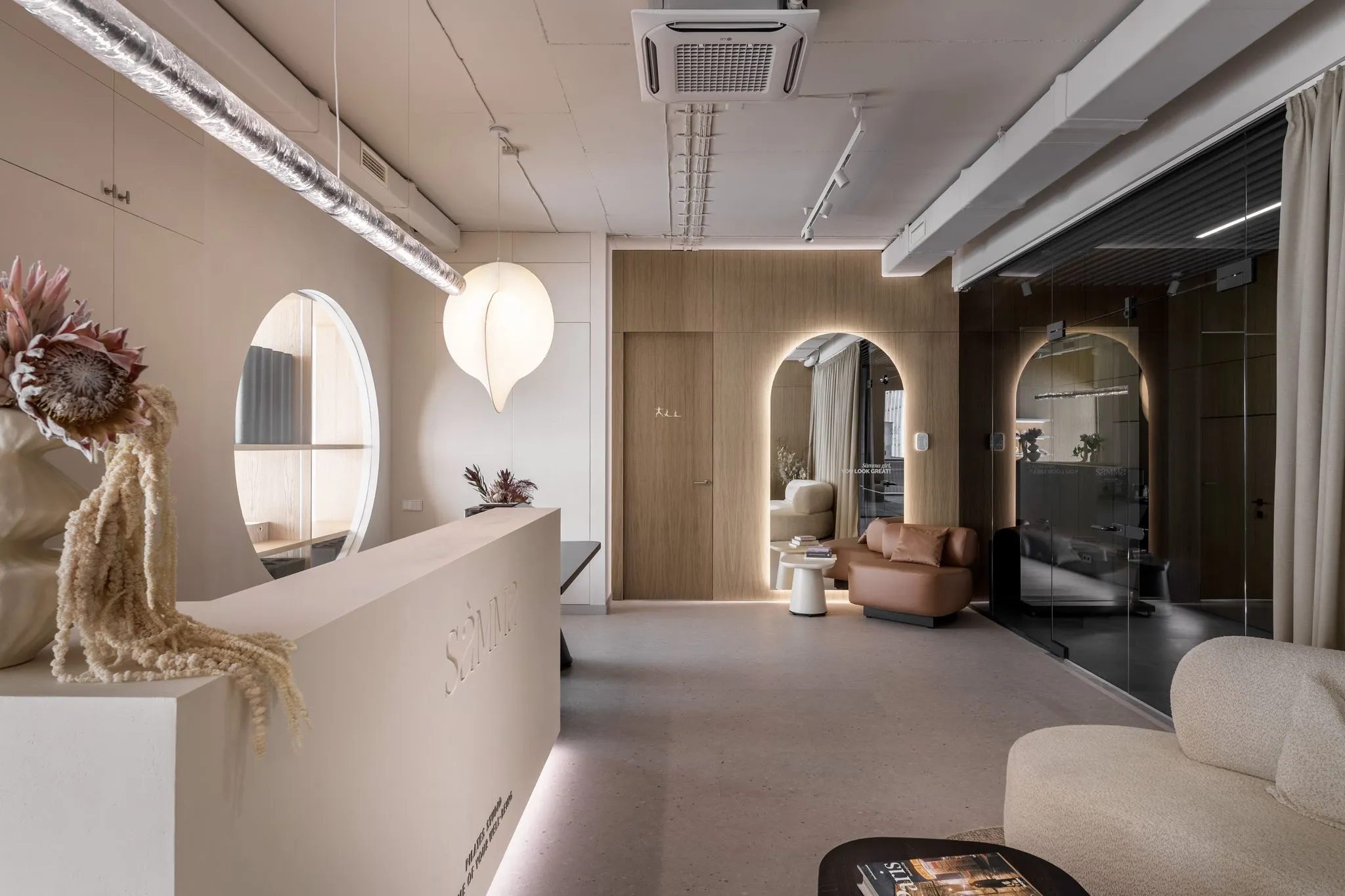 Студія пілатесу «Samma» виражає сучасний та мінімалістичний дизайн,який поєднує естетику з функціональністю. На рецепції встановлені стильнісвітильники індивідуального виготовлення, які створюють затишнуатмосферу.