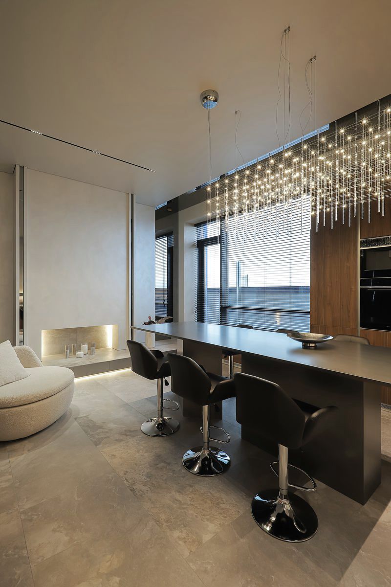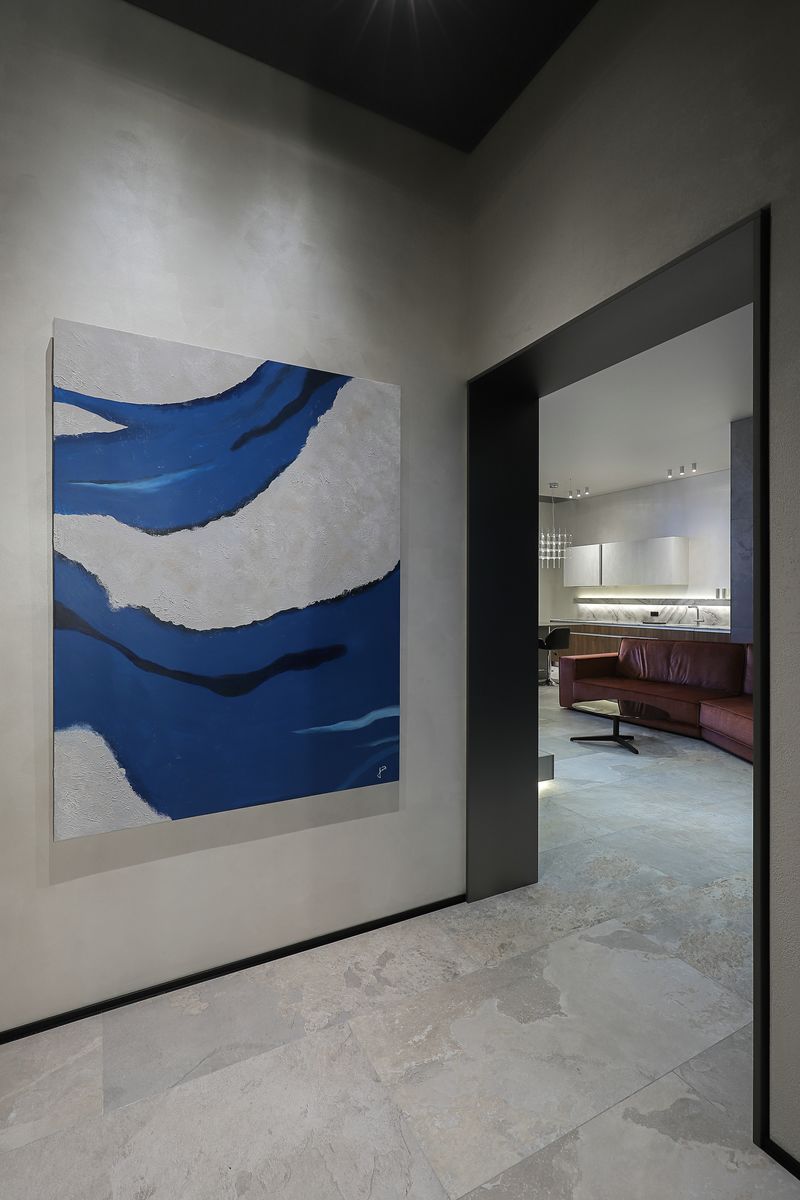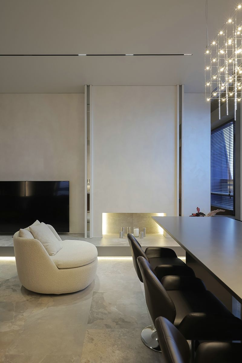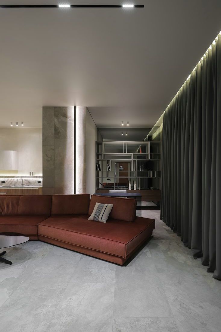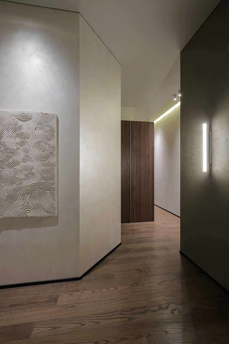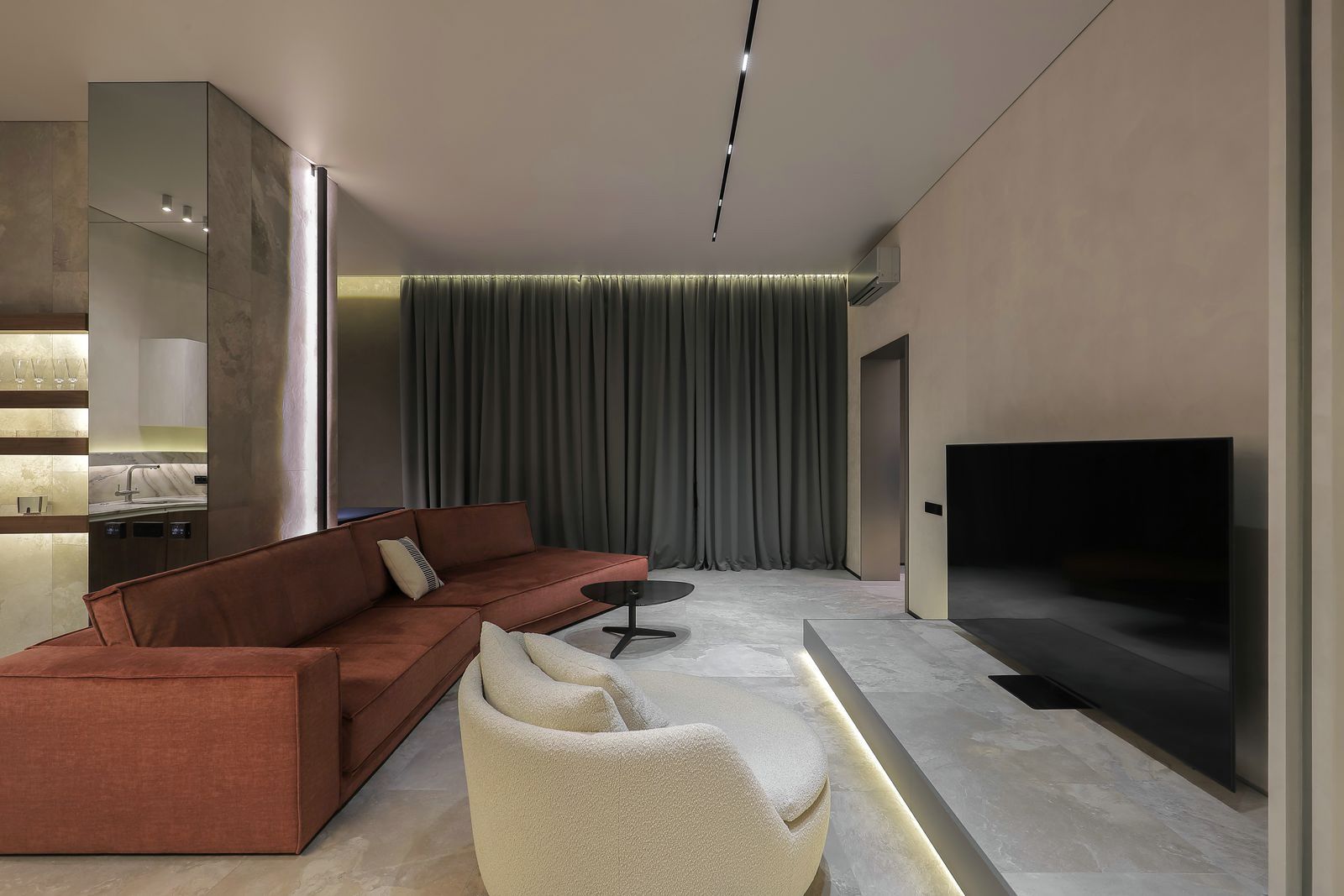 SHELL CORAL - дворівневий пентхаус. На першому рівні велика студія, а на другому приватна зона з двома кімнатами. Інтер'єр виконаний в перлинно-сірих відтінках з додаванням коралових акцентів. Індивідуальності інтер'єру додають декоративні елементи з полірованого металу, скла та натурального каменю.