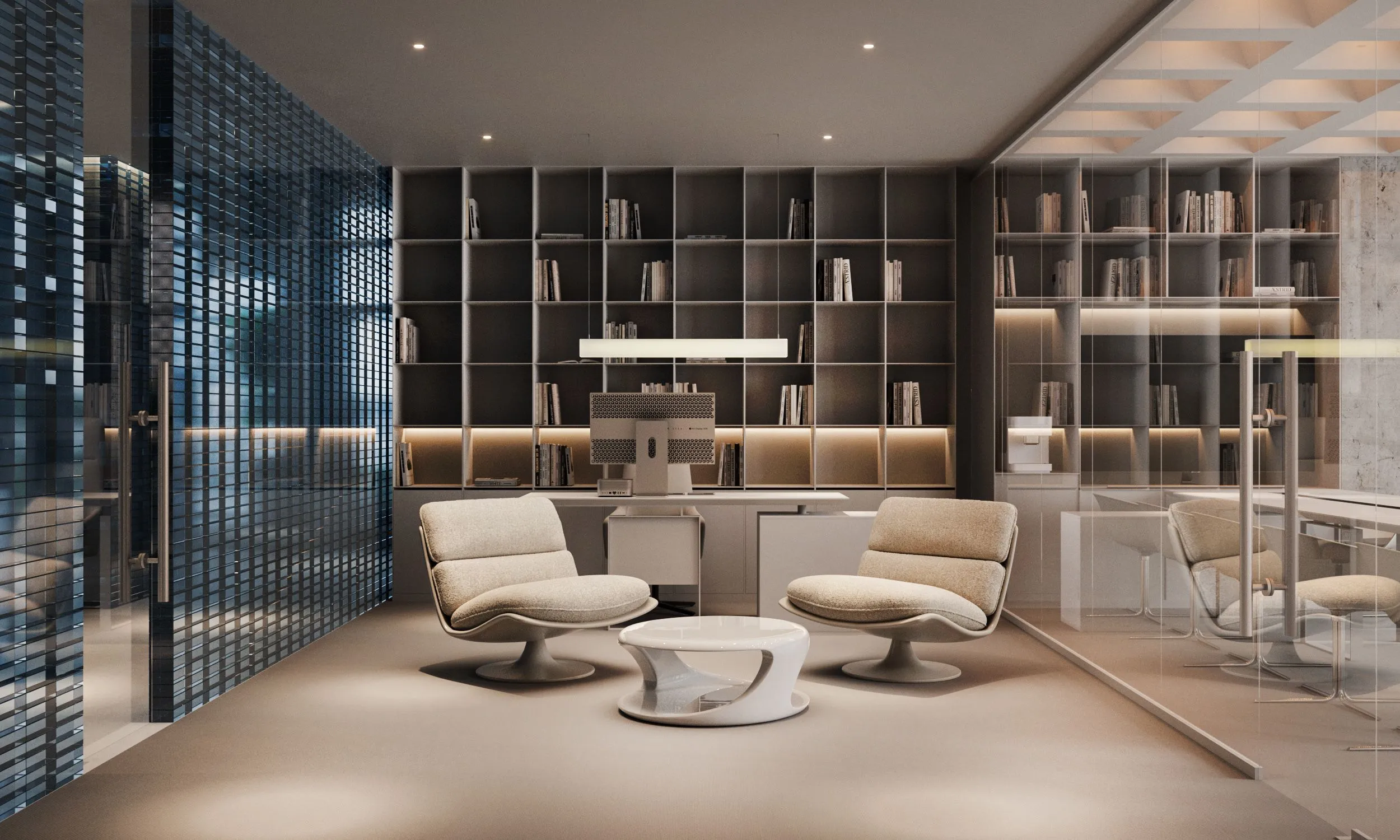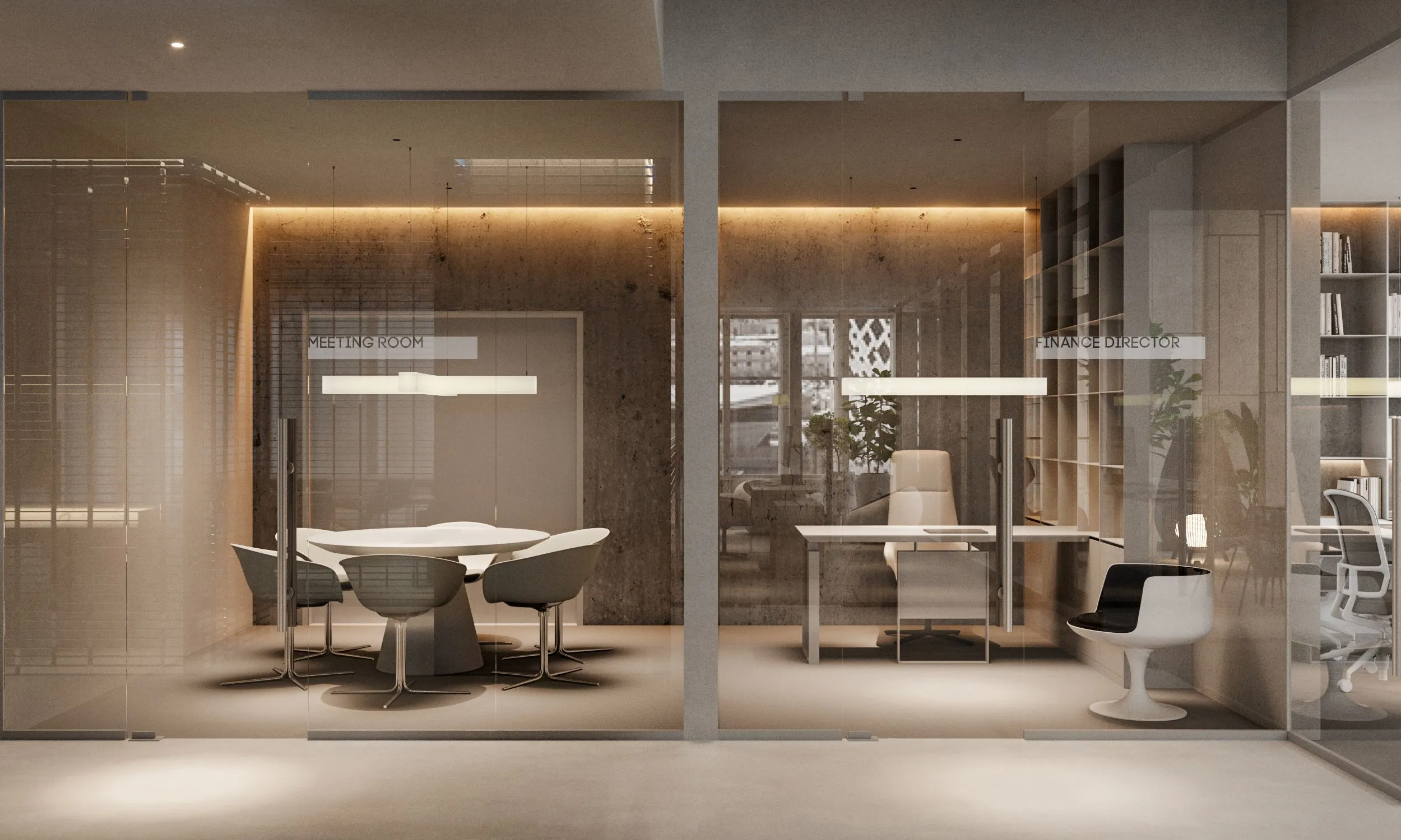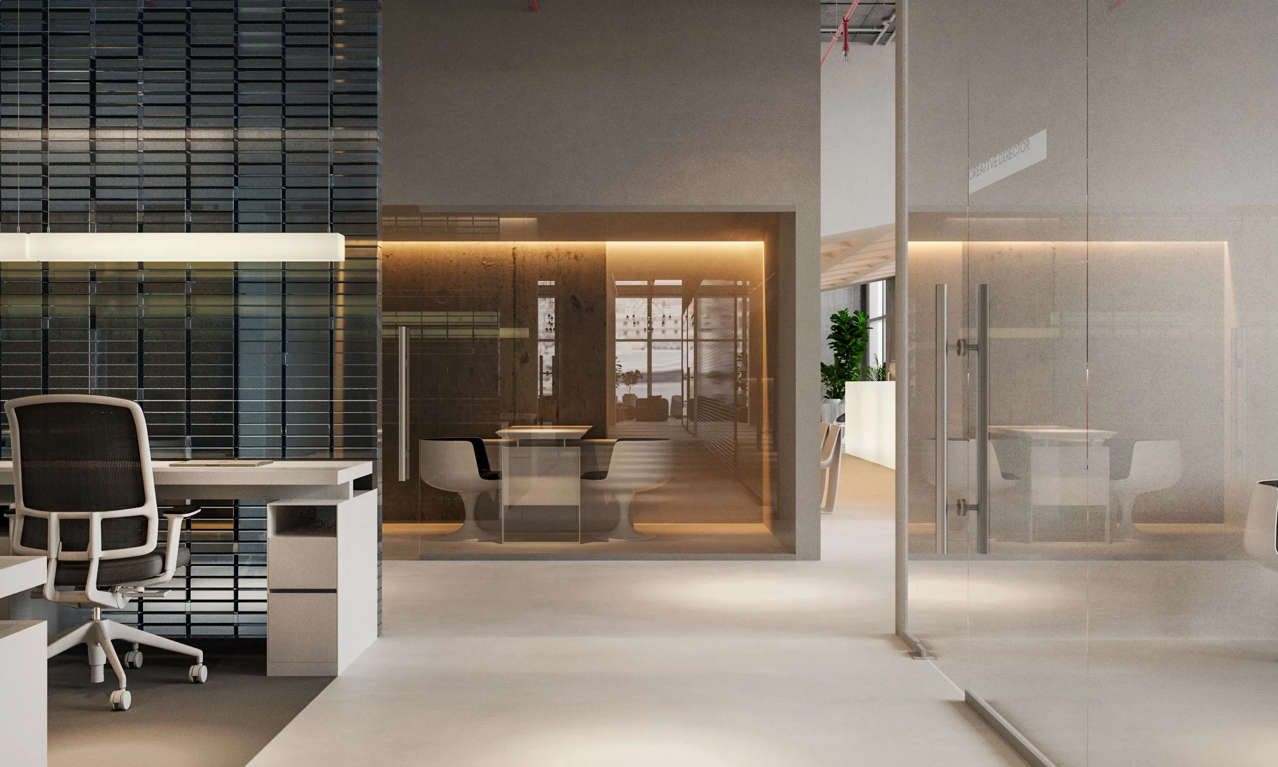 В основі проєкту лежить продумана стратегія зонування. Прозорі скляні перегородки з унікальною текстурованою обробкою м’яко поділяють простір, формуючи делікатні межі без втрати світла чи візуальної цілісності. Такий підхід створює атмосферу співпраці, водночас забезпечуючи умови для зосередженої роботи.