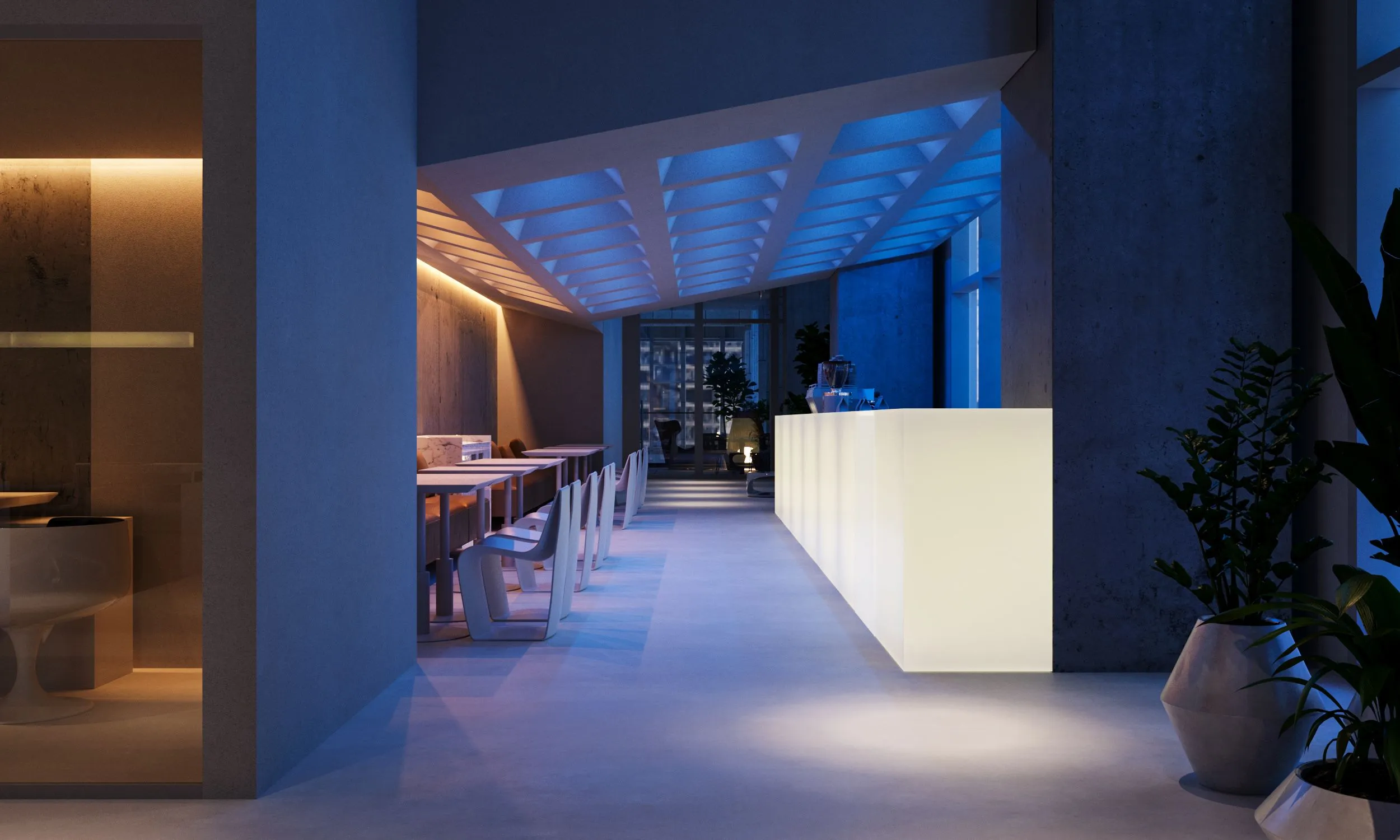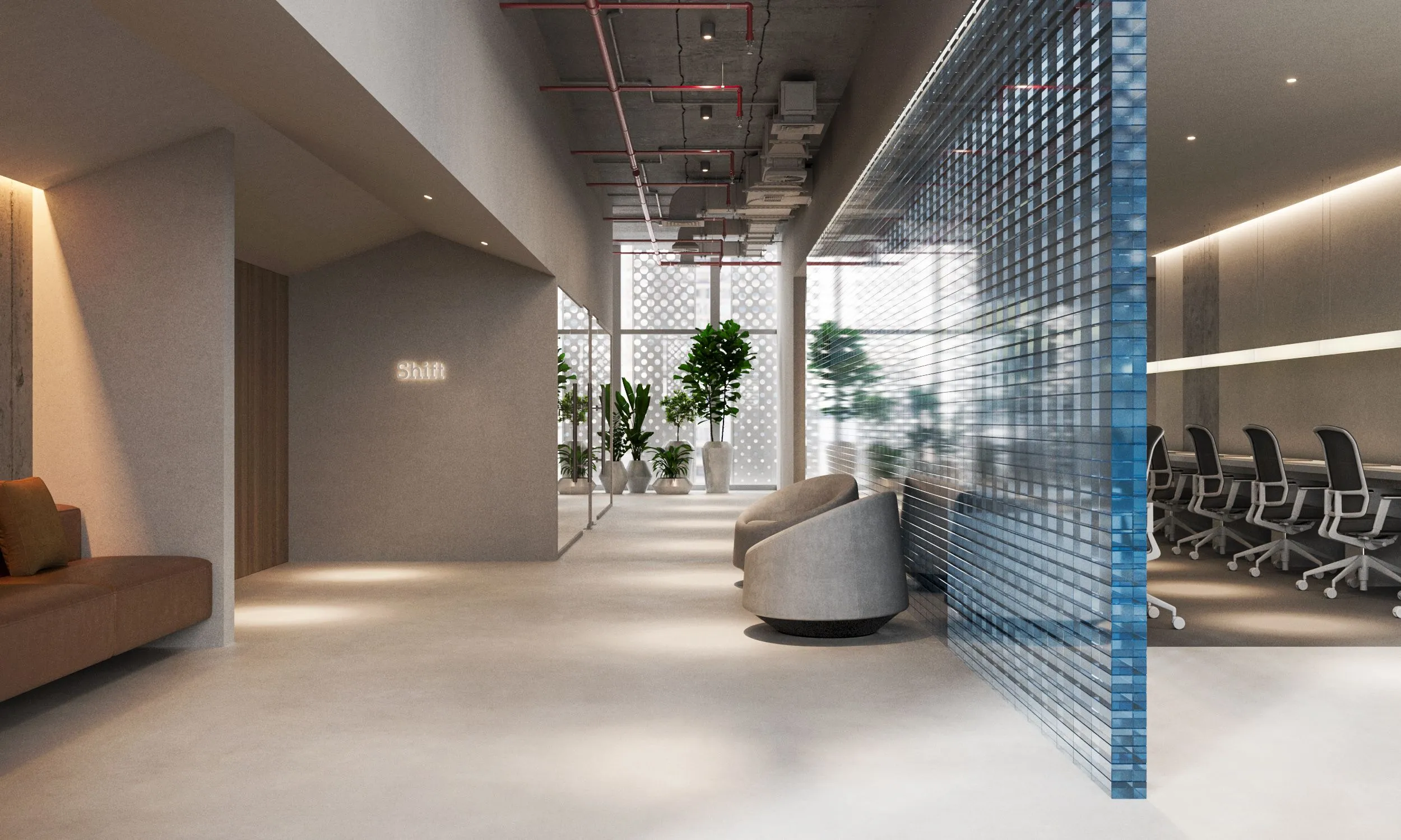 Shift Office переосмислює концепцію сучасного офісу, поєднуючи відкритість, функціональність та вишукану естетику. Простір наповнений природним світлом завдяки панорамним вікнам від підлоги до стелі. Вони не лише освітлюють інтер’єр, а й створюють динамічний зв’язок із міським пейзажем, посилюючи відчуття масштабу й енергії всередині.