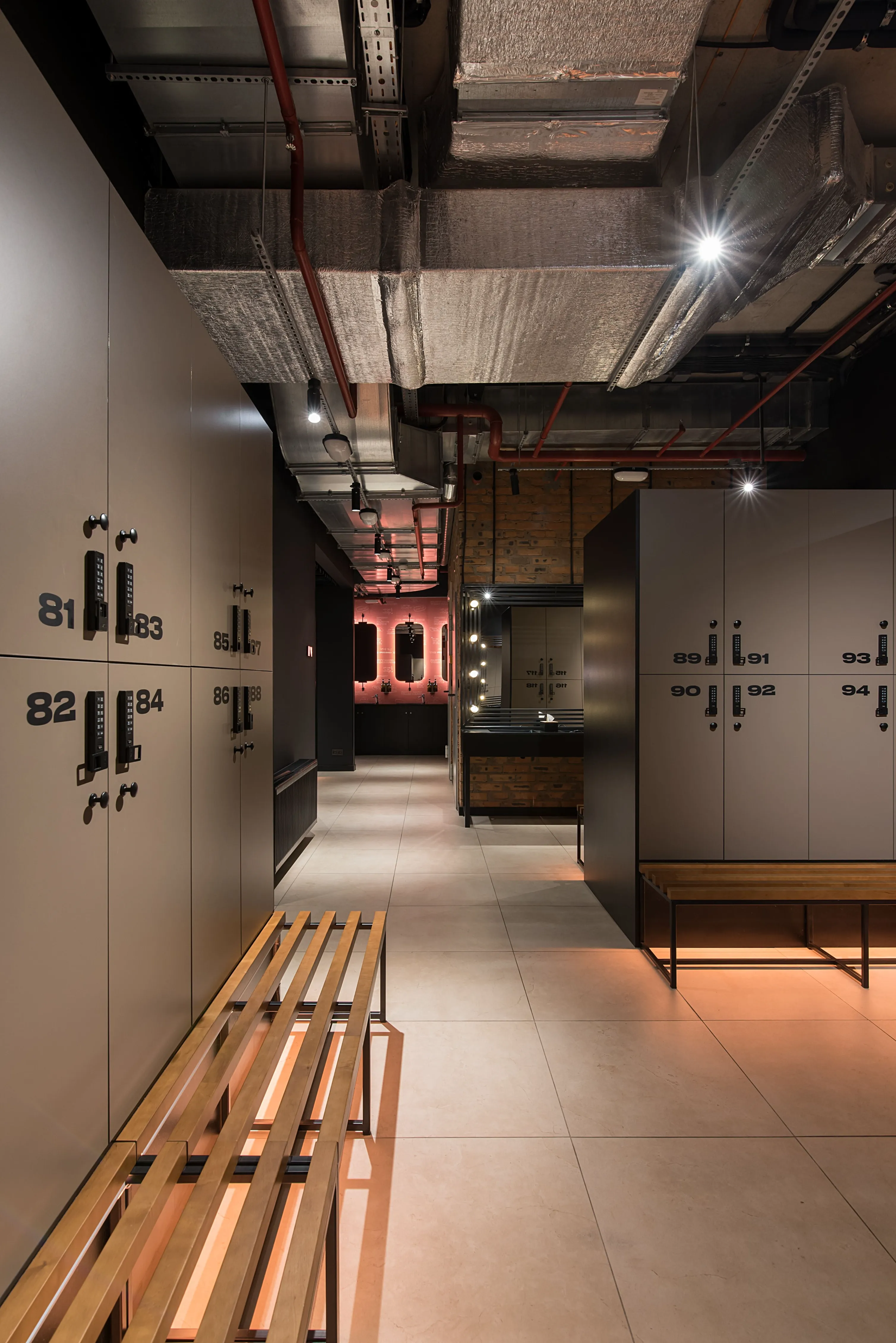 Цю зону з роздягалками, Gym та Soul, поєднує наливна сіра підлога зі стильною навігацією у вигляді білих ліній. Окрім неї, по ходу руху людей, розташовані лайтбокси з додатковою навігацією. Вони також є додатковим джерелом теплого світла, яке благотворно впливає на сприйняття людьми простору.