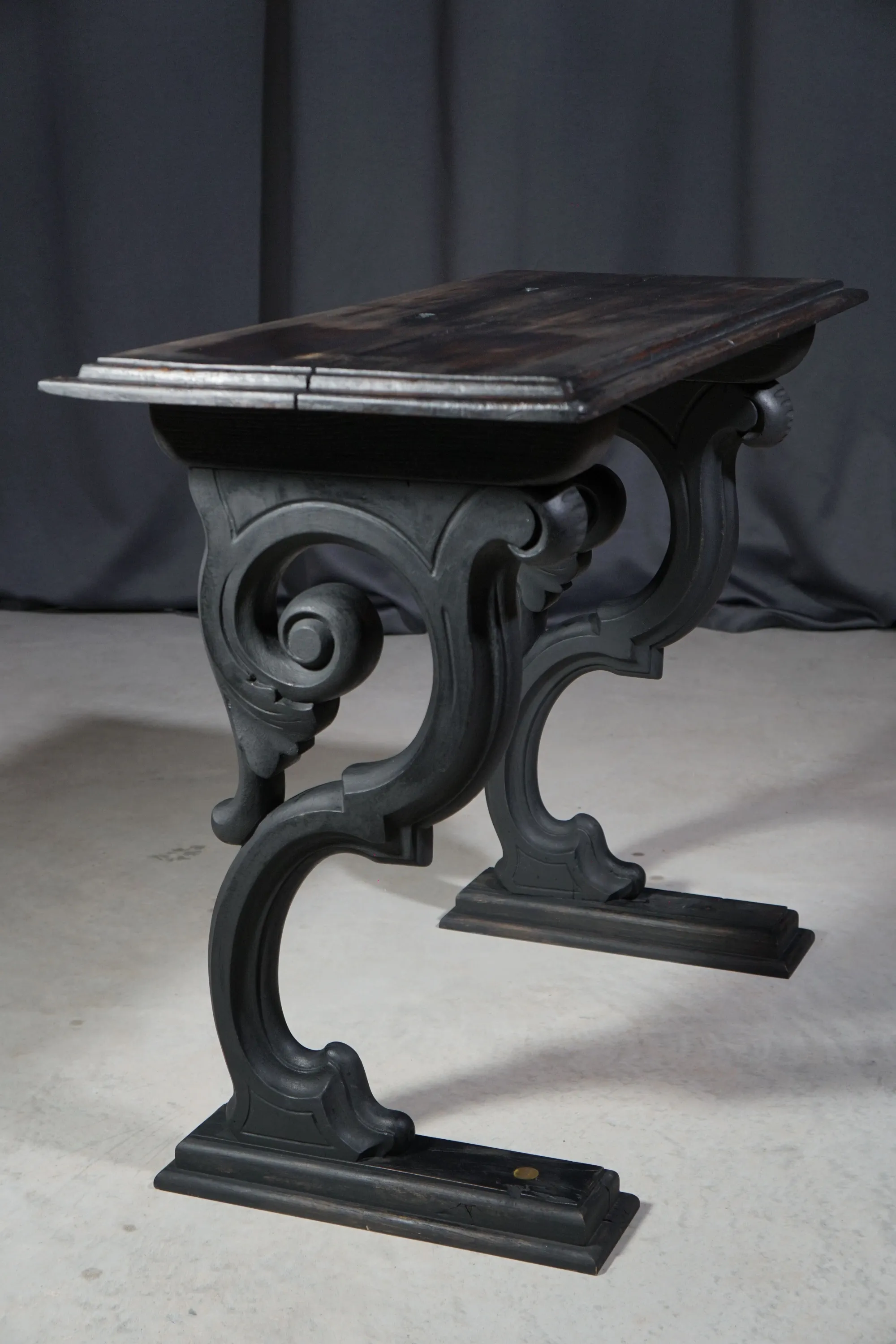 Стільниця - від швейної машинки, ніжки - від роялю.