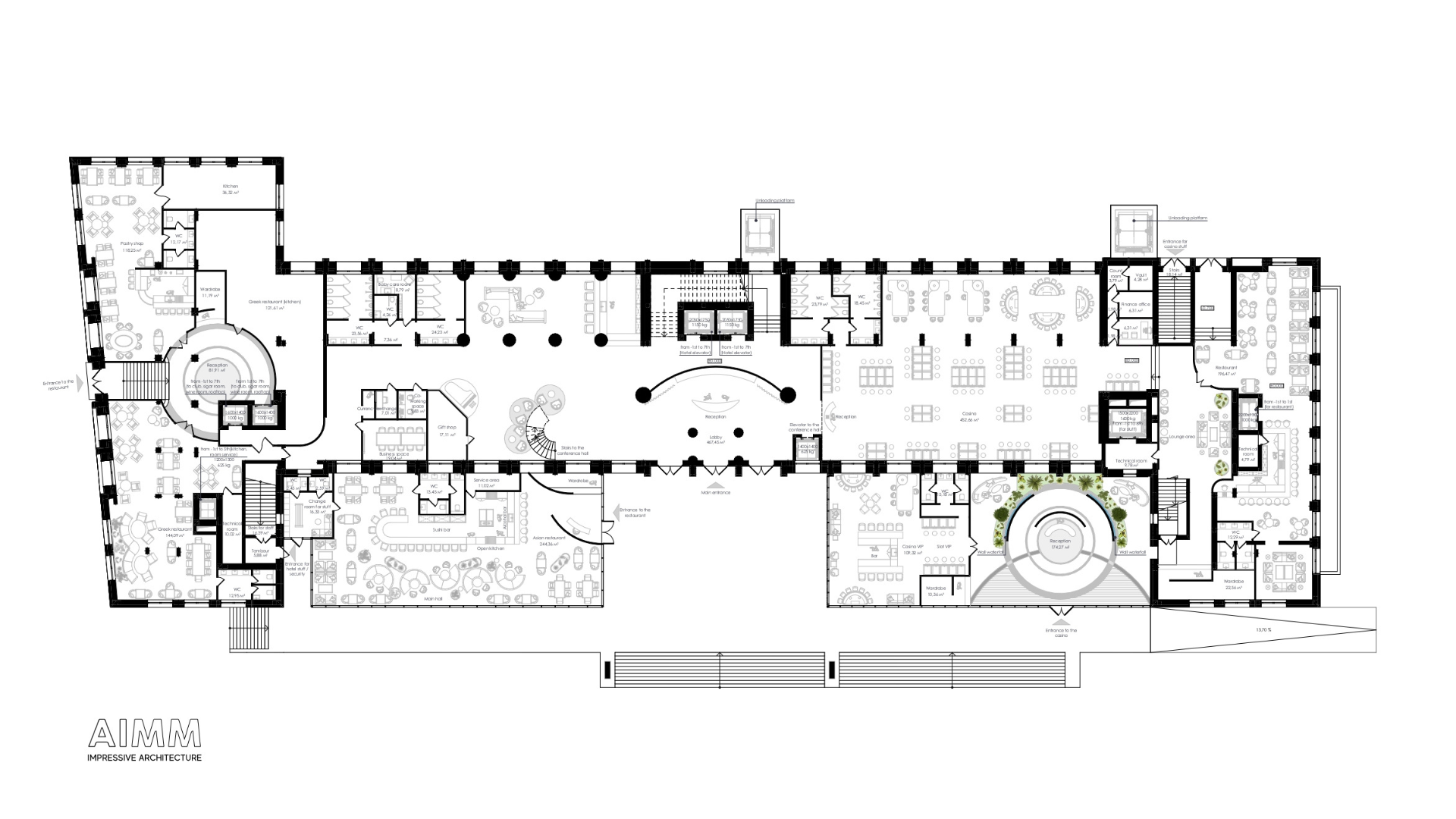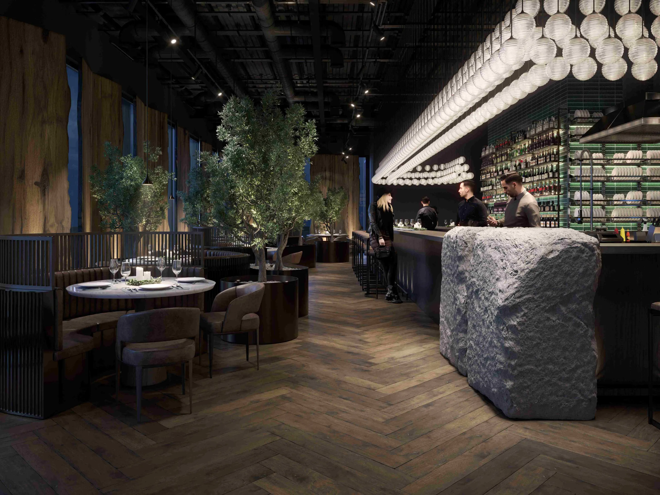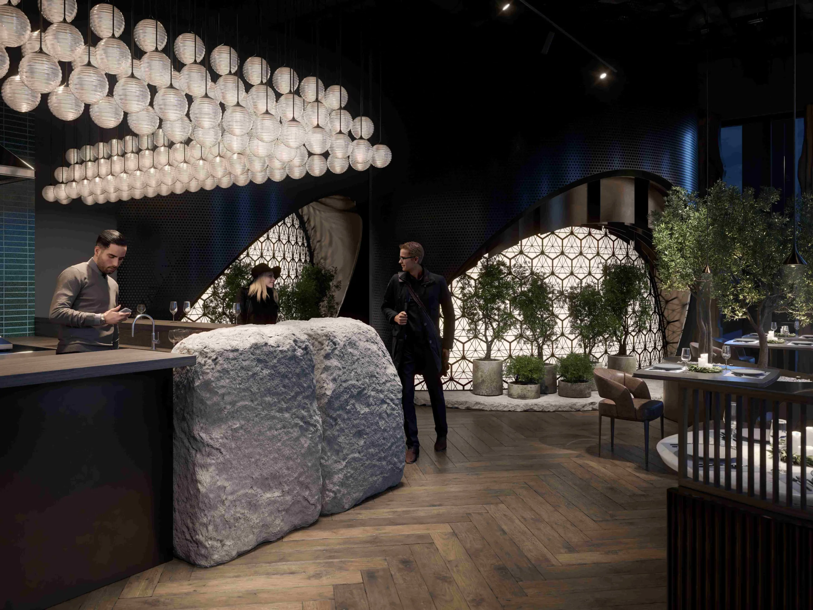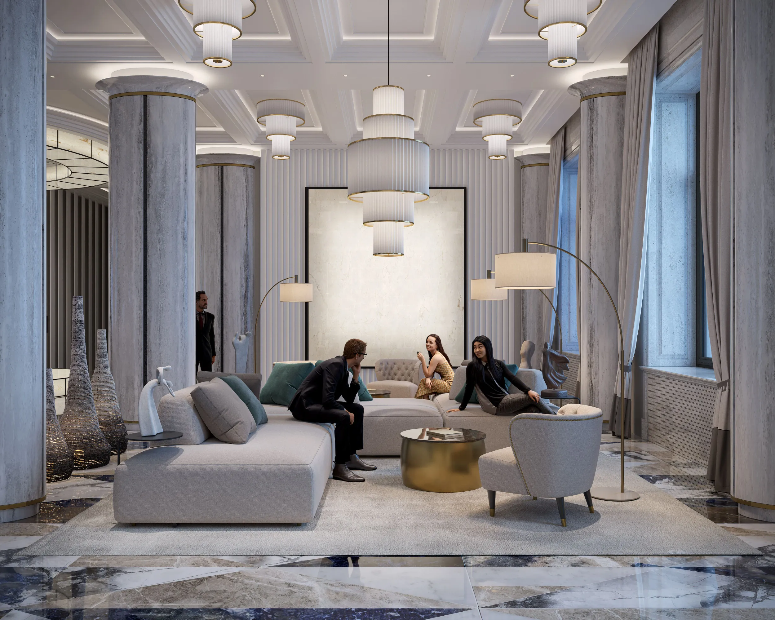 Sophia Hotel вражає гармонійним поєднанням розкоші та сучасного стилю. Лобі оформлене у світлих тонах із використанням мармуру, латуні та м’яких текстур. Центральною композицією зали є гвинтоподібні сходи з темним обрамленням і прозорими поручнями, які додають простору динаміки та елегантності. Поруч розташована зона відпочинку з м’якими кріслами з високими спинками, що створюють атмосферу приватності. Казино зустрічає рецепцією з каменю природної форми, над якою нависає світлова інсталяція у вигляді золотого вихору. Дерево, метал, мармур і тропічні рослини гармонійно переплітаються. Ресторан поєднує індустріальний стиль зі справжньою природністю. Жива зелень, дерев’яні панелі, бірюзова плитка й м’які меблі створюють атмосферу затишку, яка надихає та запрошує до неспішного відпочинку.