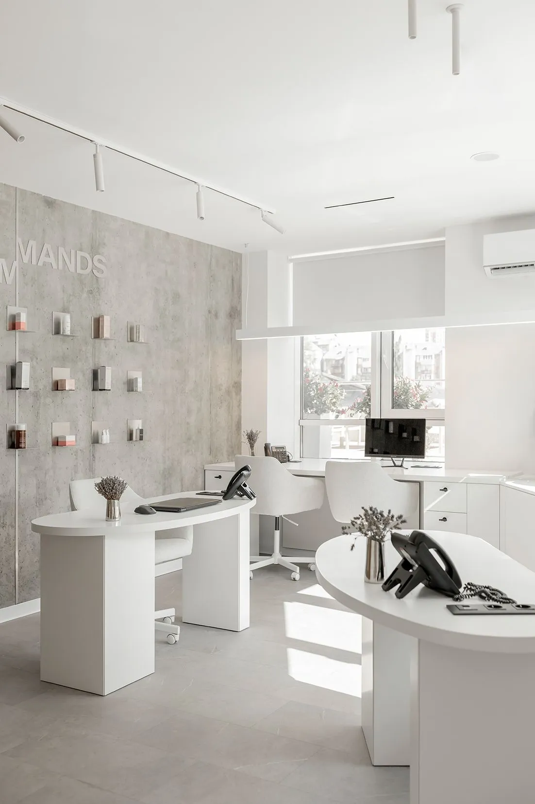 «Ми хотіли, щоб простір мав ті ж ознаки, що й інʼєкції — округлість, плавність, делікатне перетікання форм. Там, де ми не могли фізично зробити округлі стіни, ми створювали їх за допомогою текстилю — криволінійні карнизи, м’які штори. Простір ніби «обтікає» відвідувача», — коментує засновниця та головна архітекторка IK-architects Катерина Ярова.