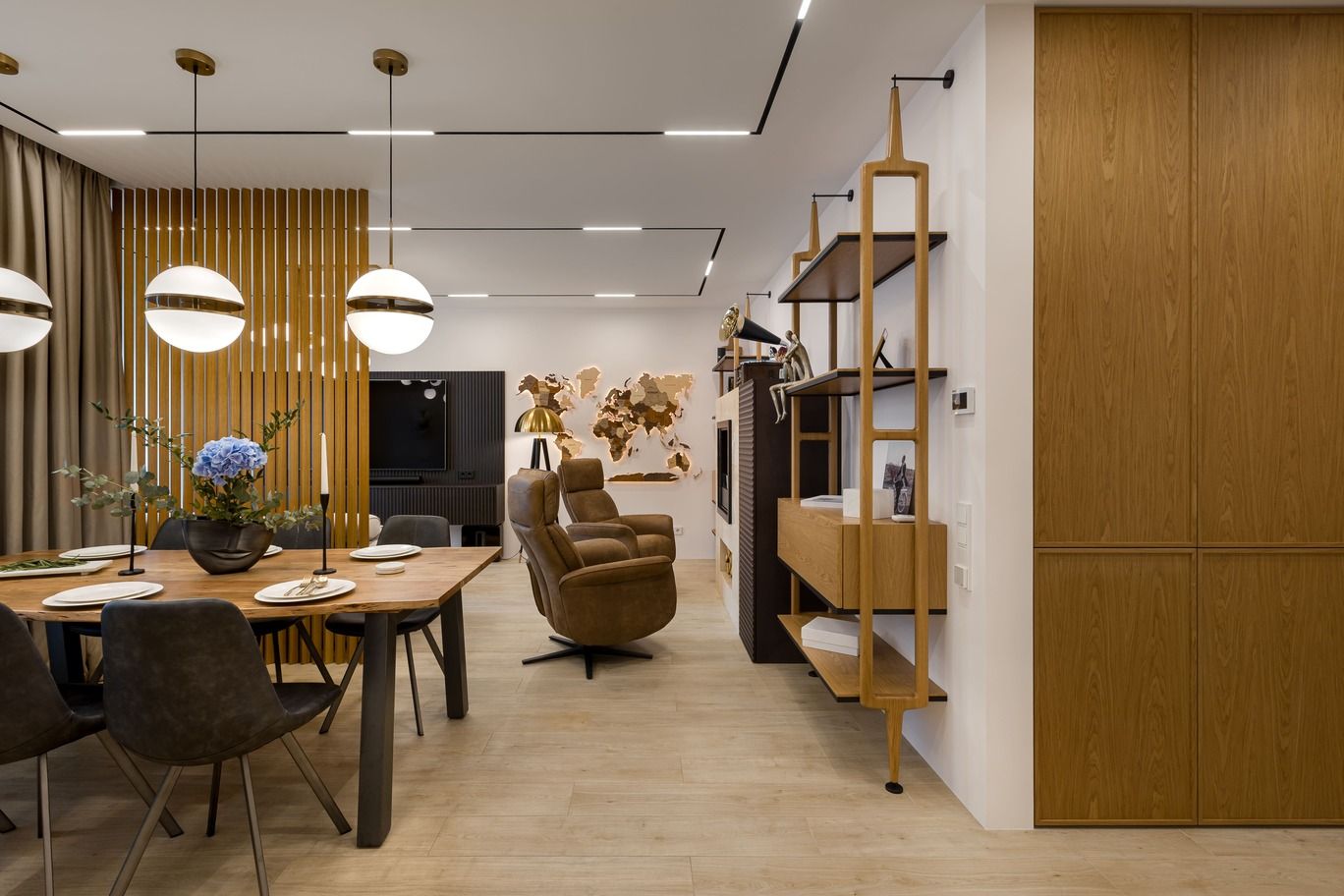 Простір створено для молодої сім’ї, яка тонко відчуває красу в деталях, цінує спокій, естетику, домашній затишок та сенси. Улюблений грамофон став не лише декоративним акцентом, а й відправною точкою для формування всієї концепції — інтер’єру з характером. Біокамін, натуральні матеріали, продумане перепланування і функціональність — усе працює на створення глибоко особистої, затишної та водночас елегантної атмосфери.
