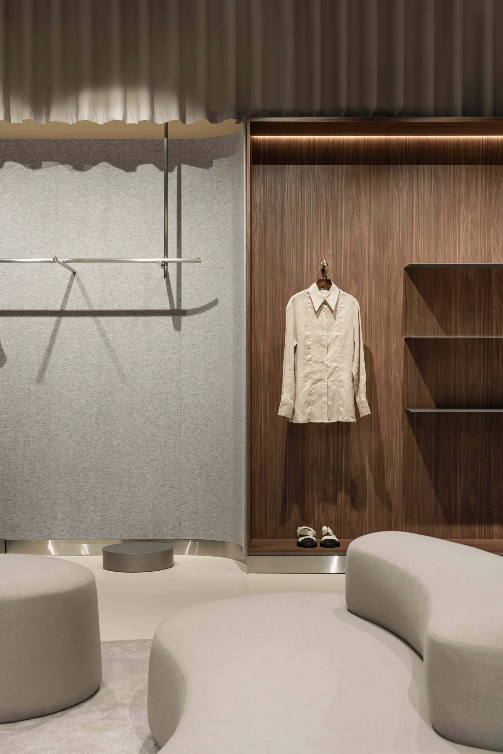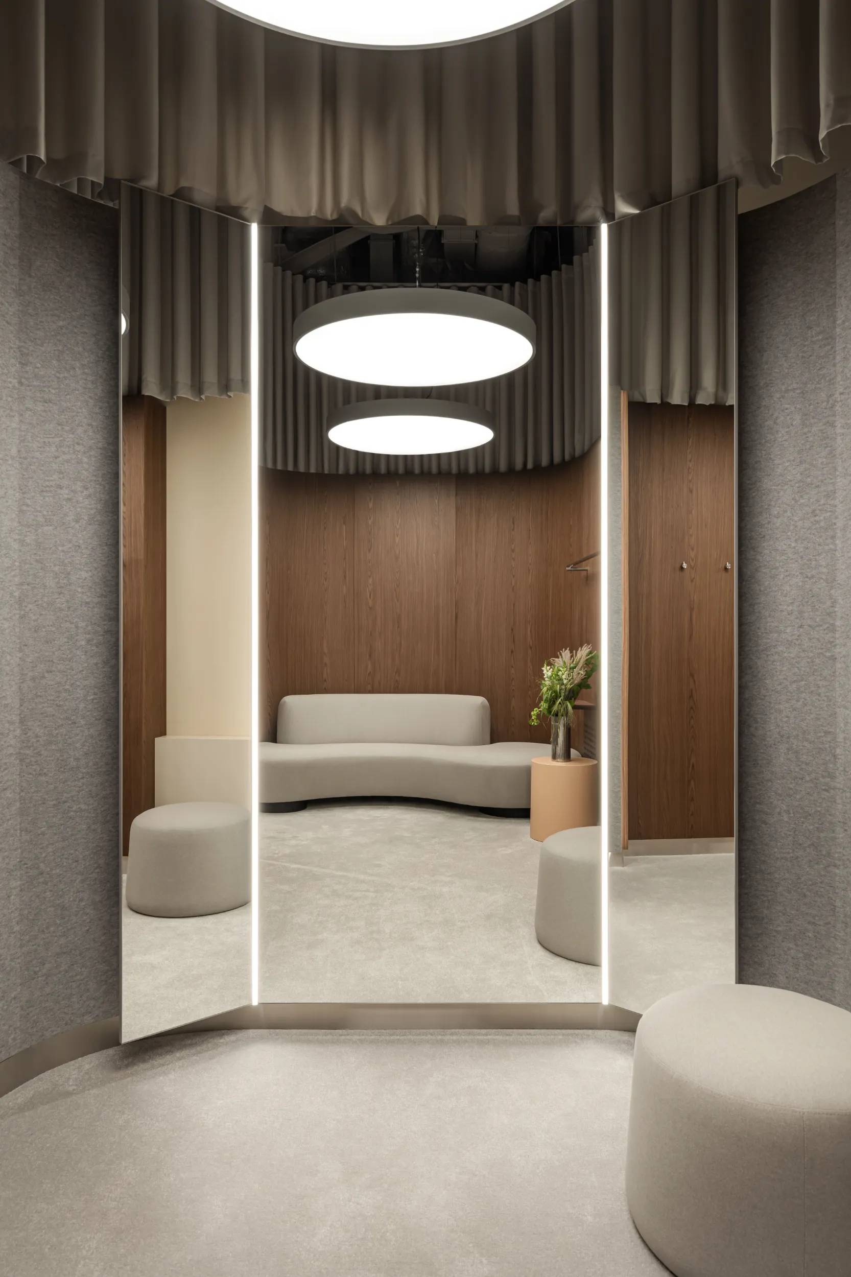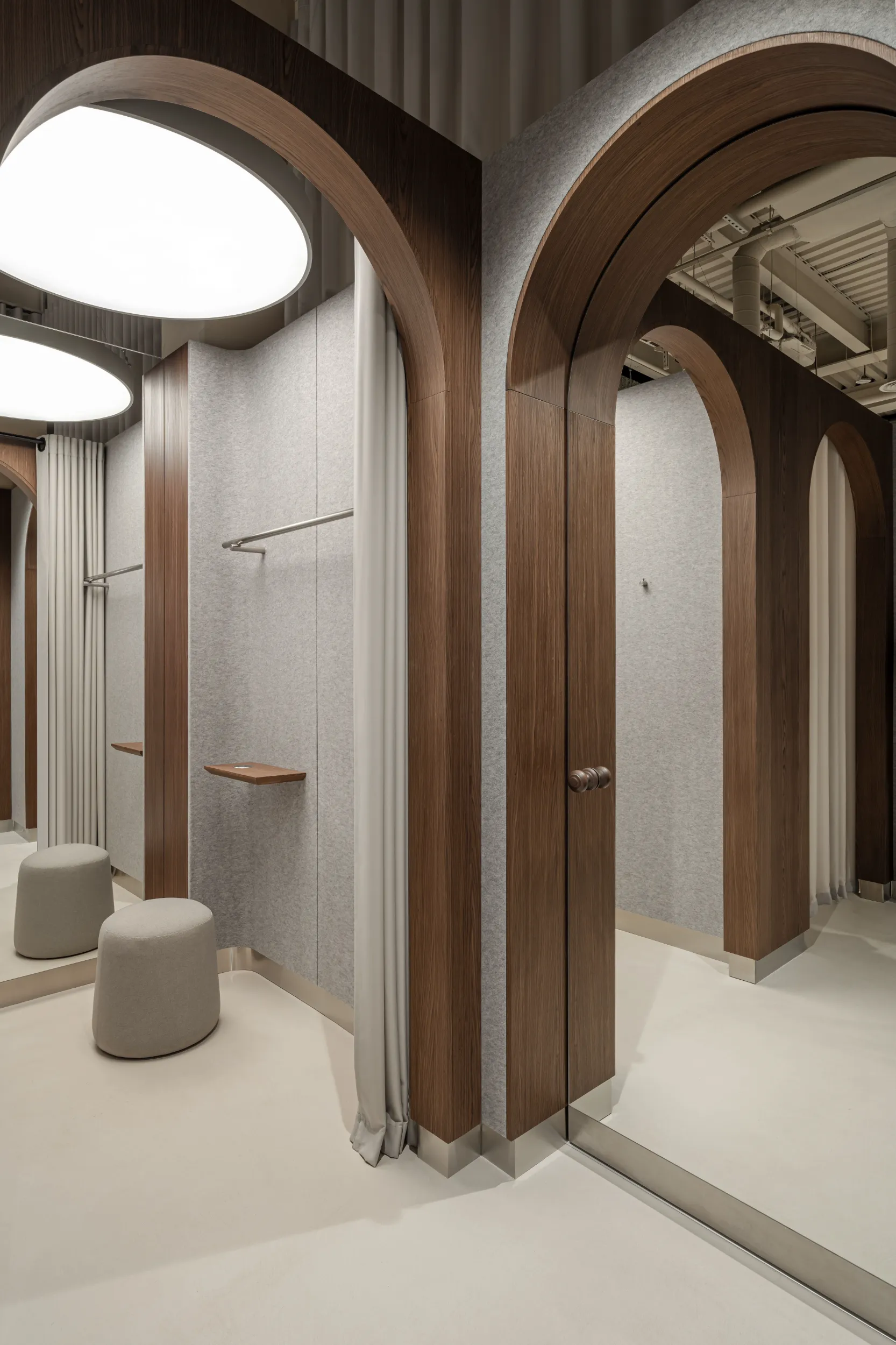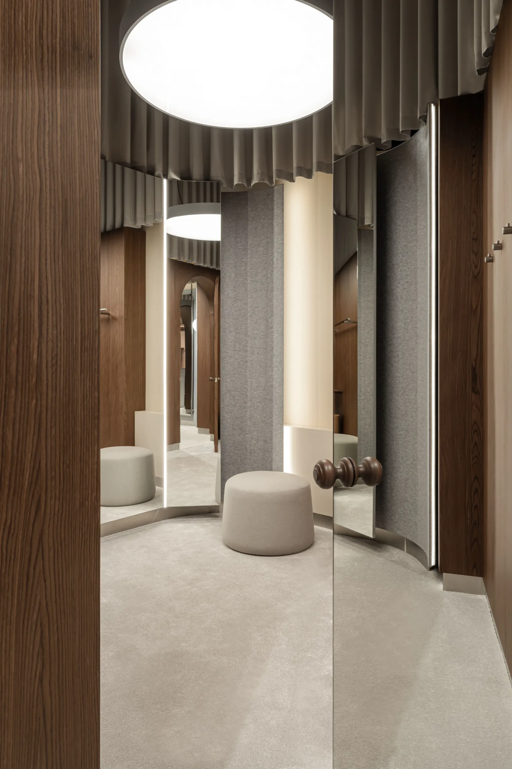 Особлива VIP-примірочна за дзеркальними дверима надає клієнтам можливість створювати ідеальні образи, використовуючи планшет для перегляду комбінованих луків. Це місце, де можна не лише приміряти одяг, але й перепочити від шопінгу, насолоджуючись комфортом і приватністю.