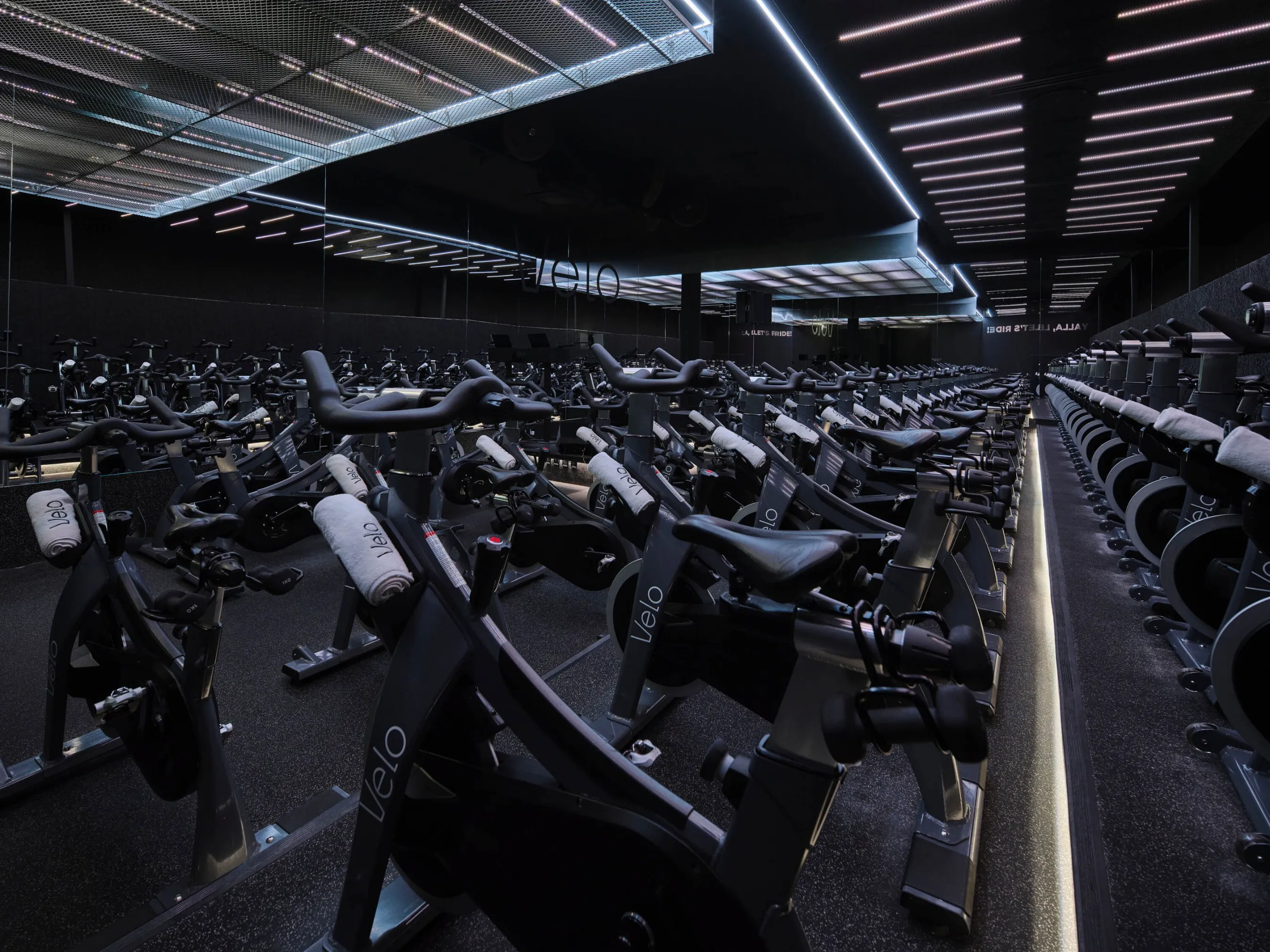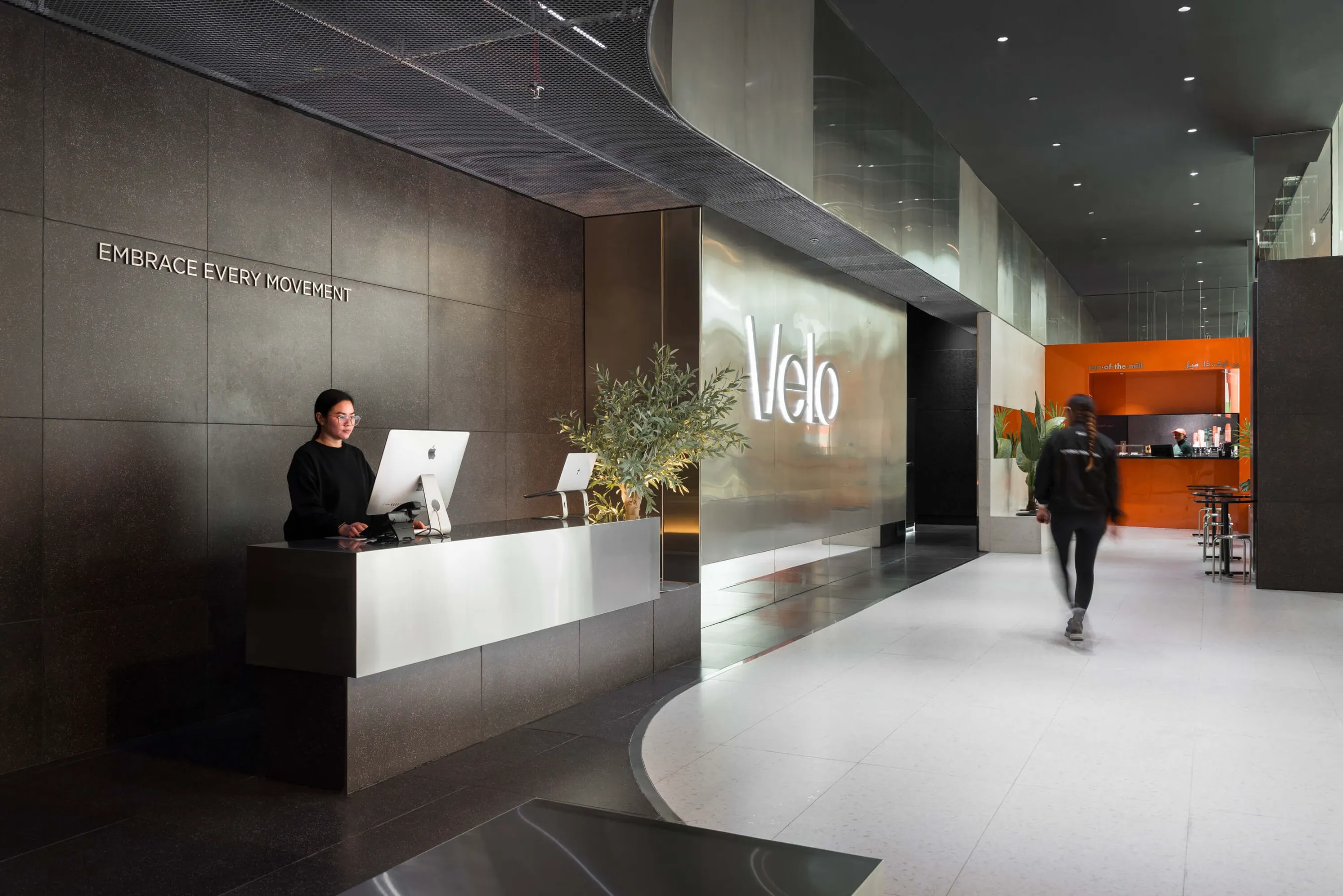 VELO розташований на першому поверсі Lagoona Mall (66 West Bay Lagoon Street, Doha, Катар) і займає об’єднаний простір колишнього меблевого шоуруму та попередньої невеликої студії бренду. Початково простір складався лише з одного залу сайклінгу, але з часом виникла потреба у масштабуванні: до програми додали функціональні тренування (RACK), стретчінг (FORM), зони рецепції, мерчу, заклад run of the mill та технічні приміщення.