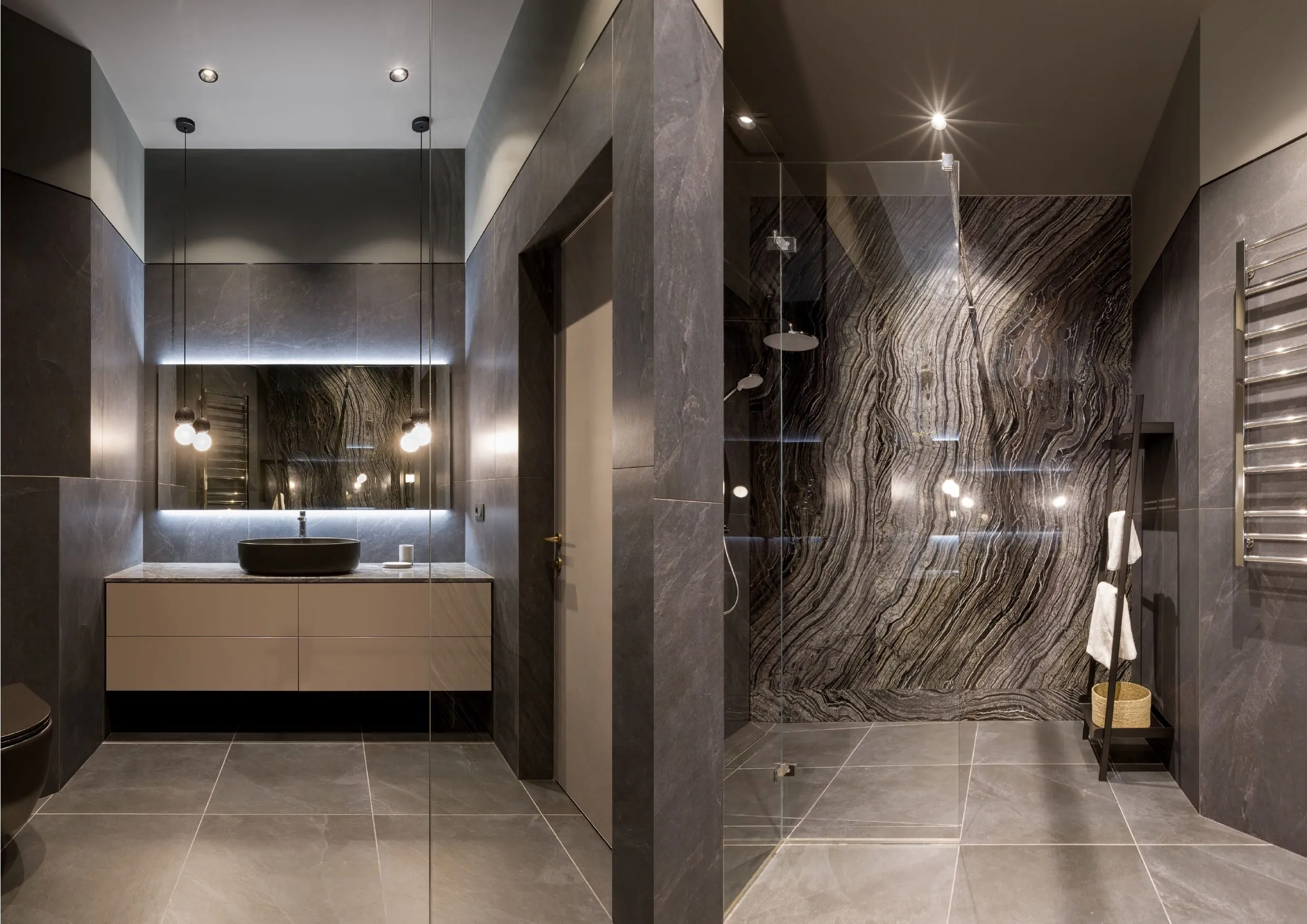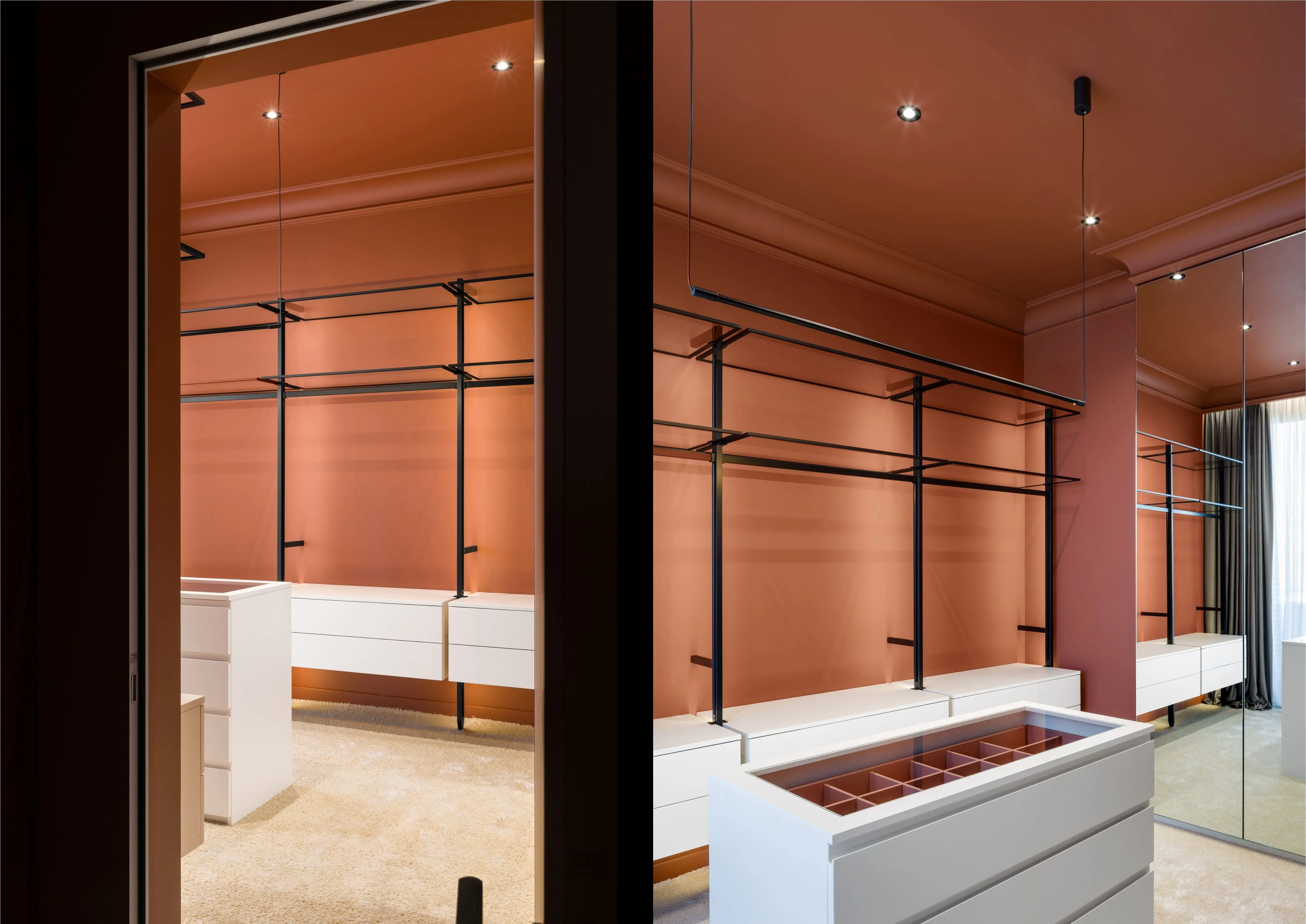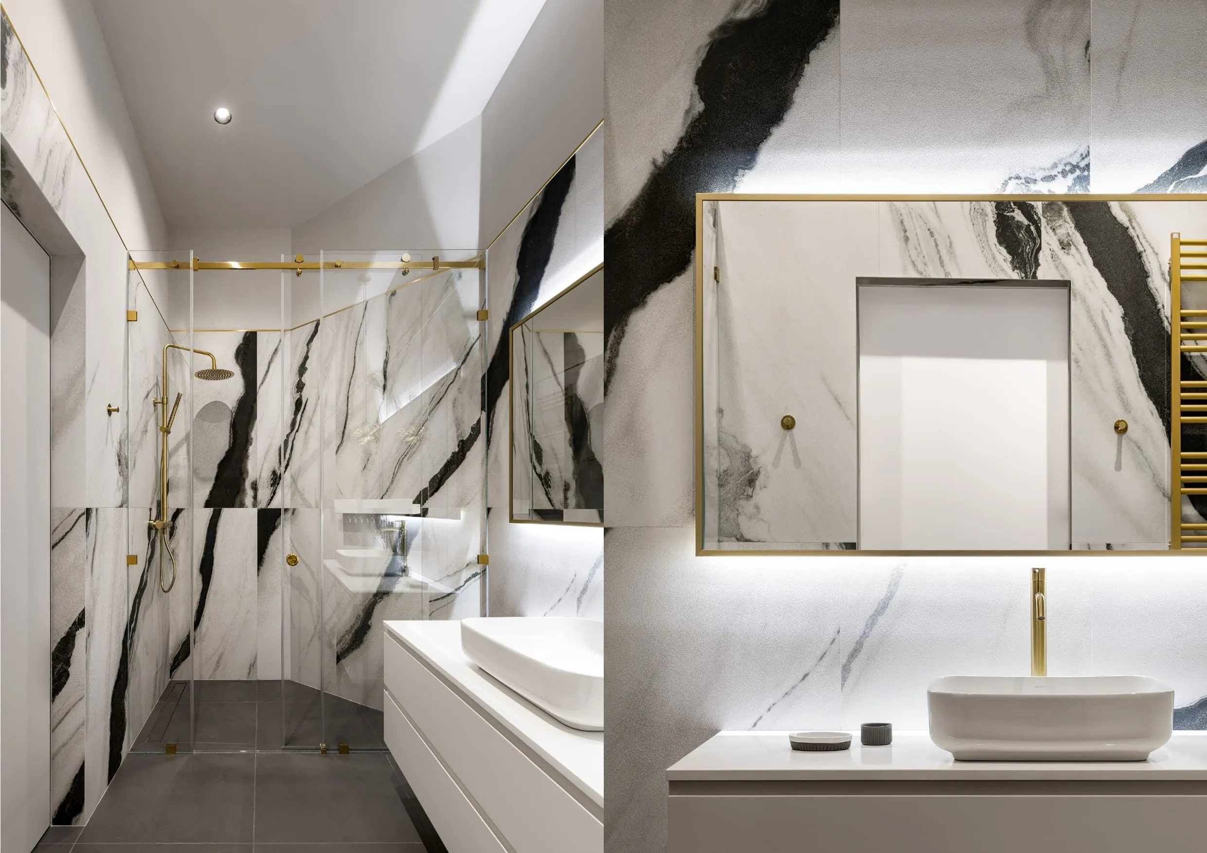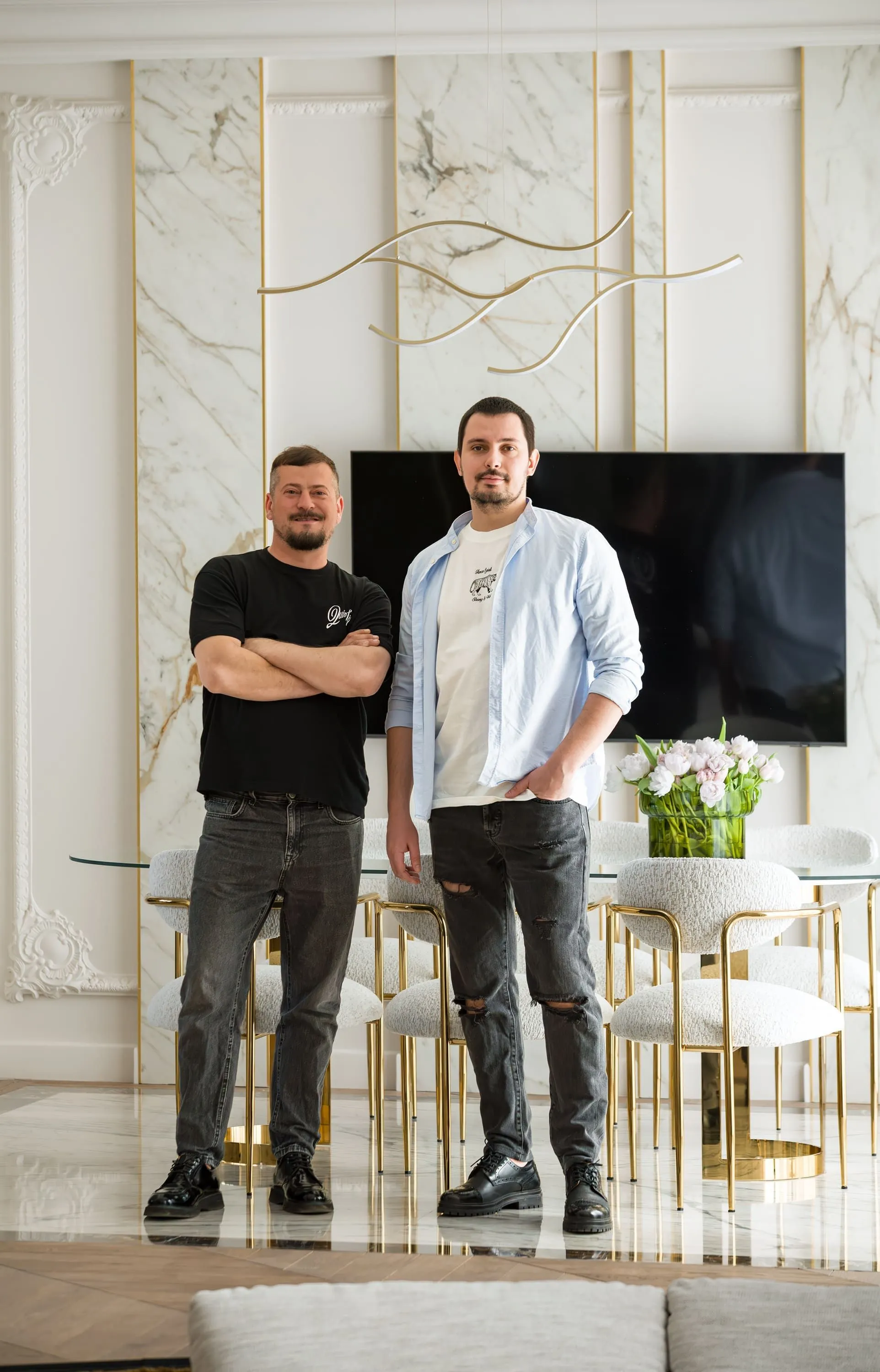 Інтер’єр виконаний у сучасному стилі з елементами мінімалізму та класичної елегантності. Базова палітра — теплі натуральні тони: білий, бежевий, сірий, глибокі деревні відтінки, акценти каменю та скла. У матеріалах — шпон, камінь, матові та глянцеві метали, натуральне дерево. Вбудовані меблі — індивідуального виробництва, окремо розташовані меблі від преміальних брендів, що підкреслюють стиль та простір. Високоякісний текстиль, підібраний з урахуванням відтінків, фактур та структур. Освітлення багаторівневе, з інтегрованими системами та декоративними світильниками, що формують характер кожної зони. Усі деталі, від дверних ручок до швів на оббивці, ретельно продумані та інтегровані в загальний простір.fdnjhb